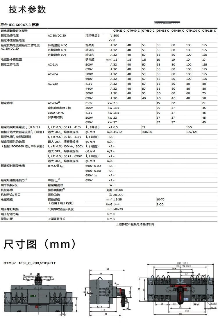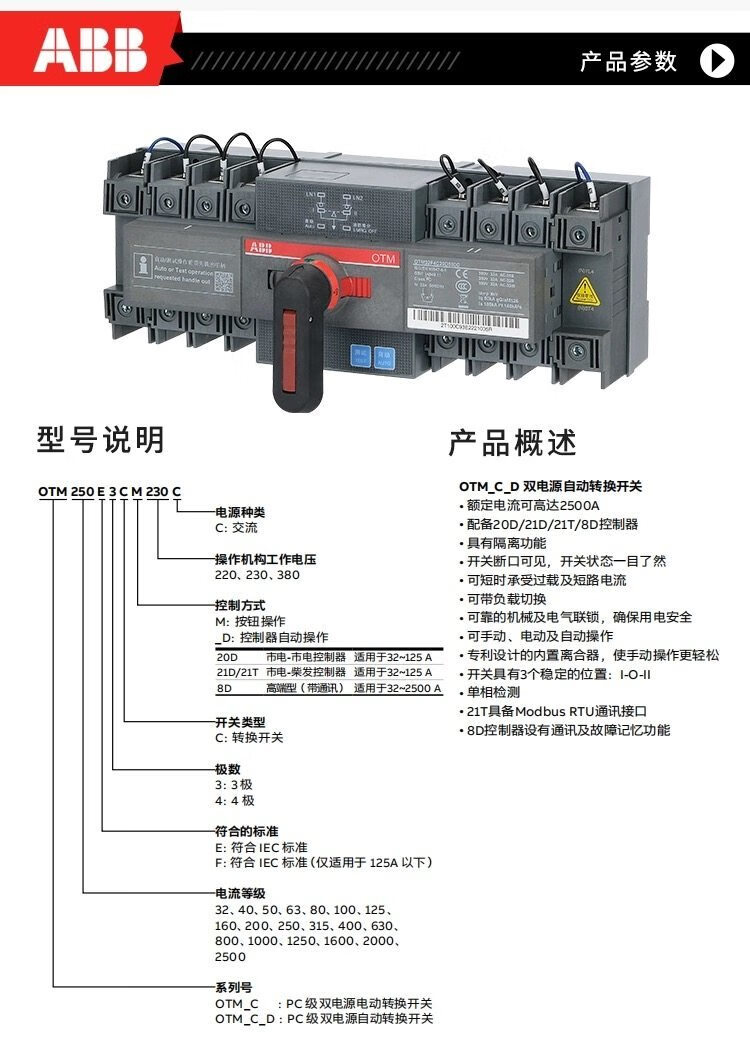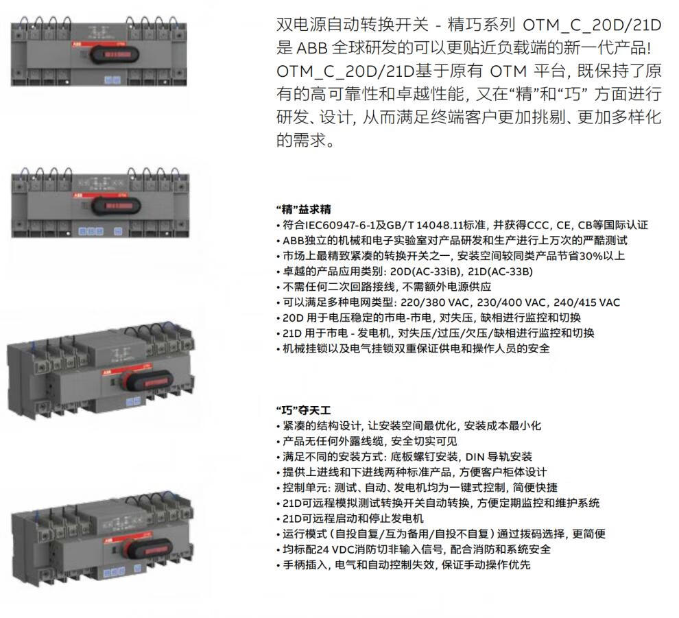 ABB dual power switch series compact series automatic transfer switch OTM32F4C20D380C