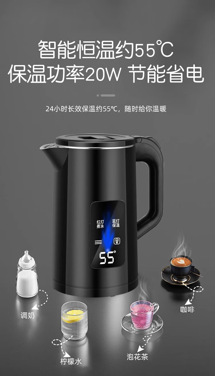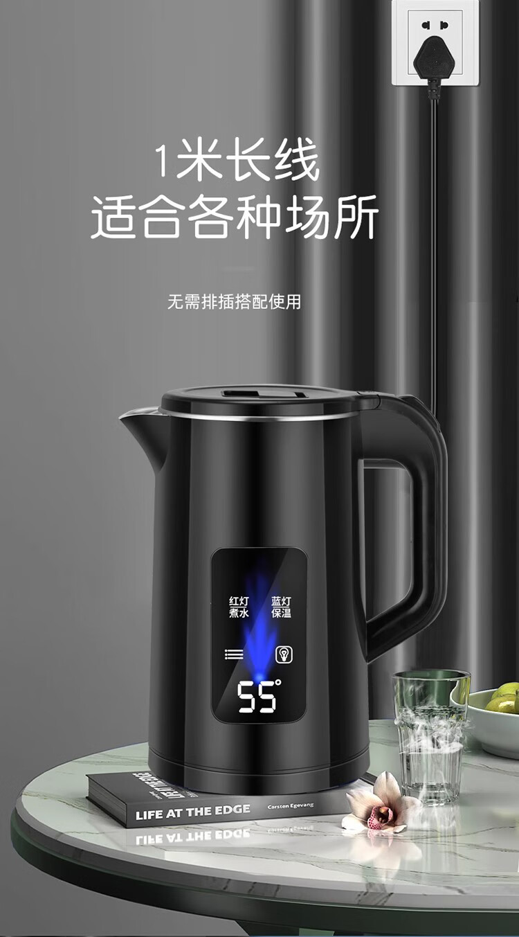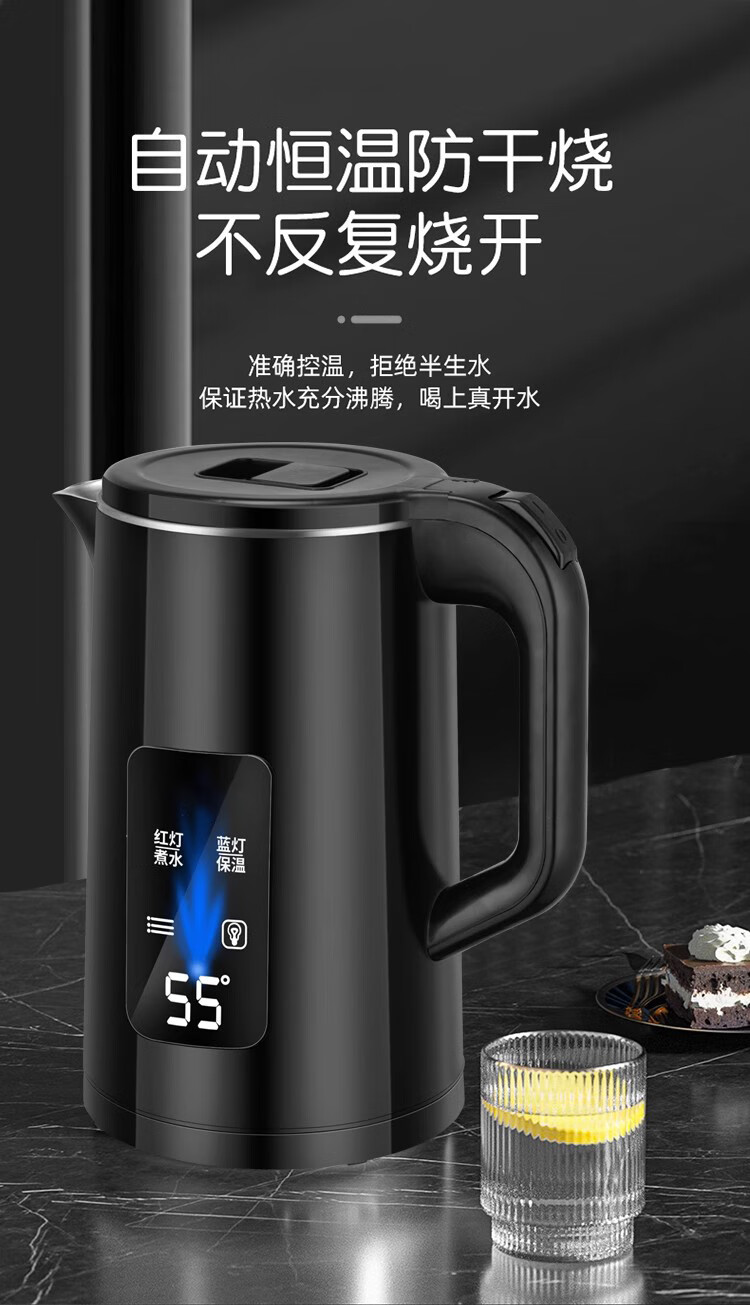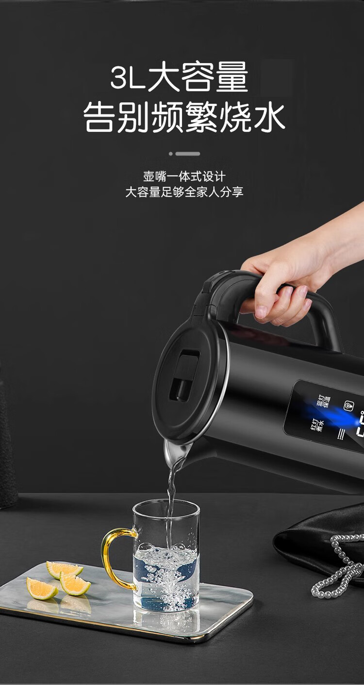 Electric kettle household stainless steel electric heating and insulation all-in-one kettle automatic power off large capacity kettle 3L classic black intelligent insulation