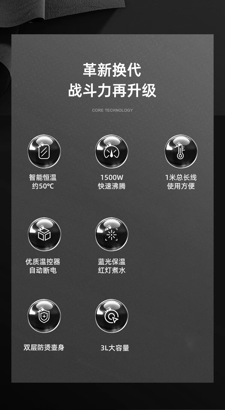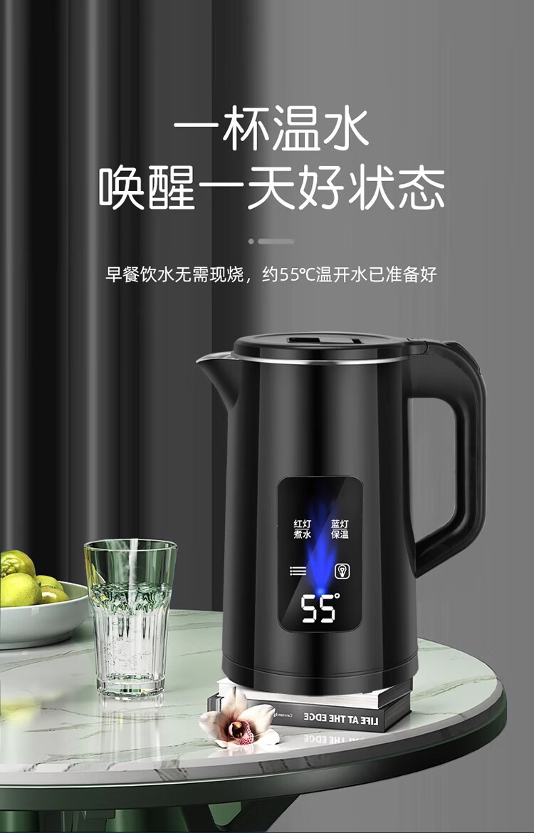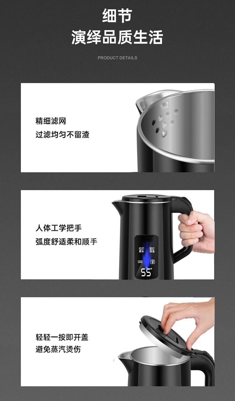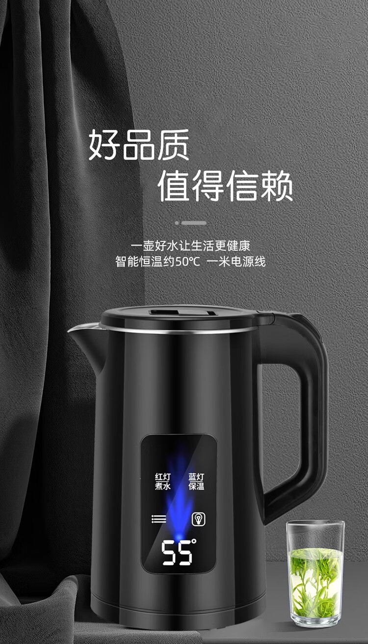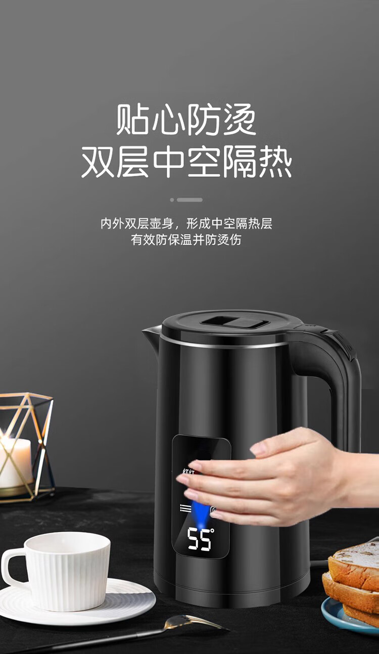 Electric kettle household stainless steel electric heating and insulation all-in-one kettle automatic power off large capacity kettle 3L classic black intelligent insulation