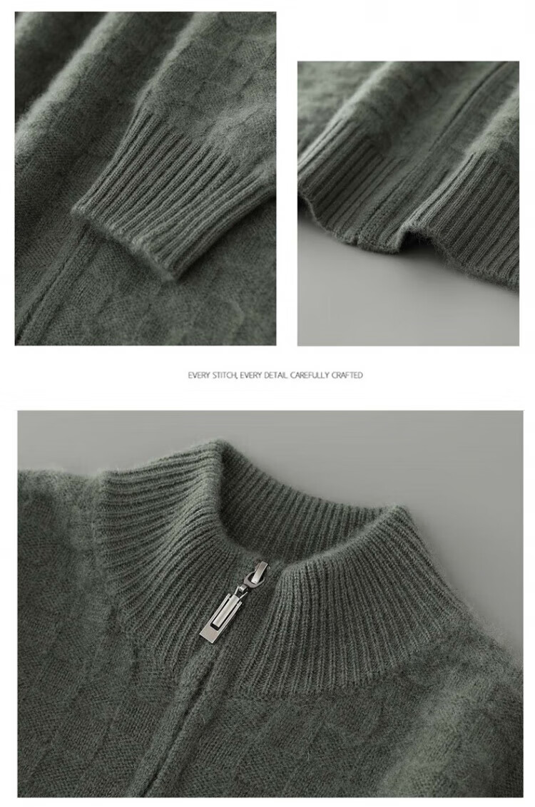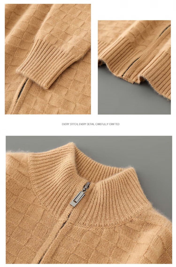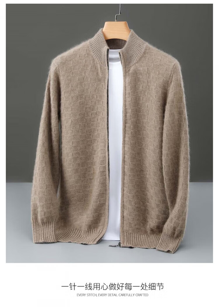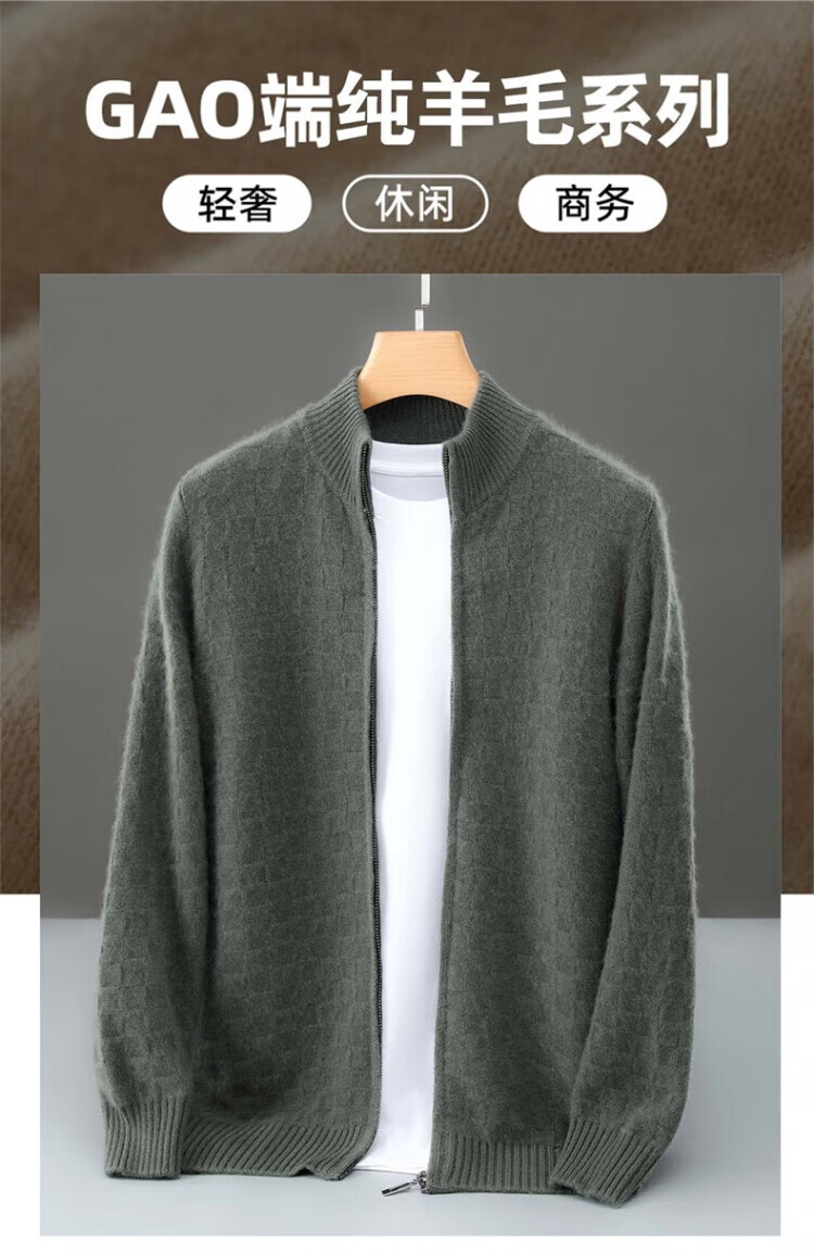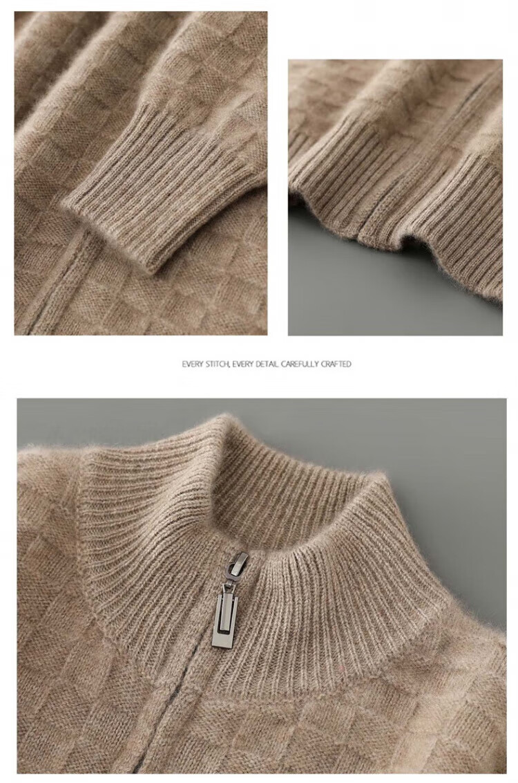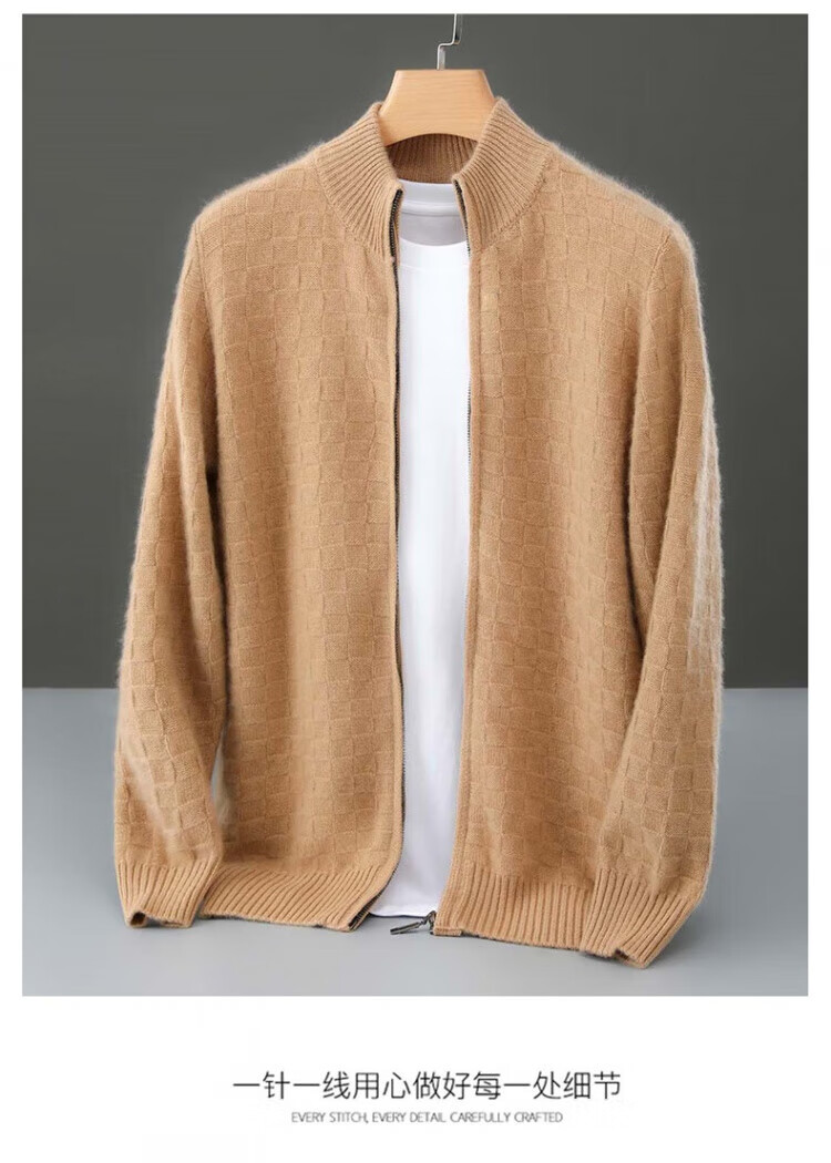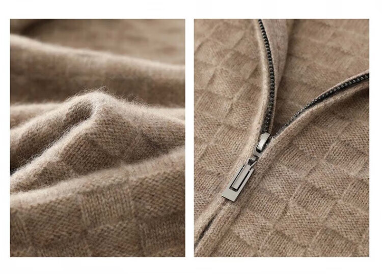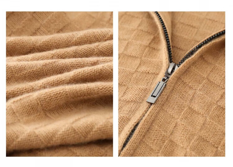 Hengyuanxiang осенне-зимний мужской полуводолазка с застежкой-молнией, однотонный жаккардовый кардиган из 100% чистой шерсти, свободная утолщенная вязаная куртка желтого верблюжьего цвета, рекомендуется 120-140