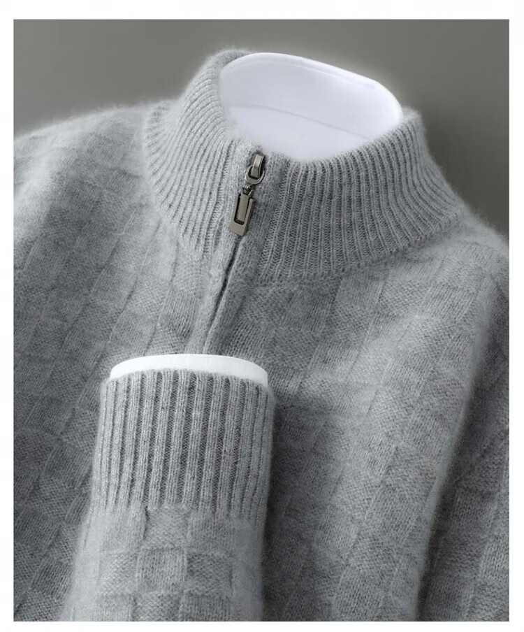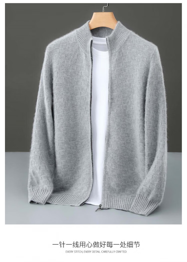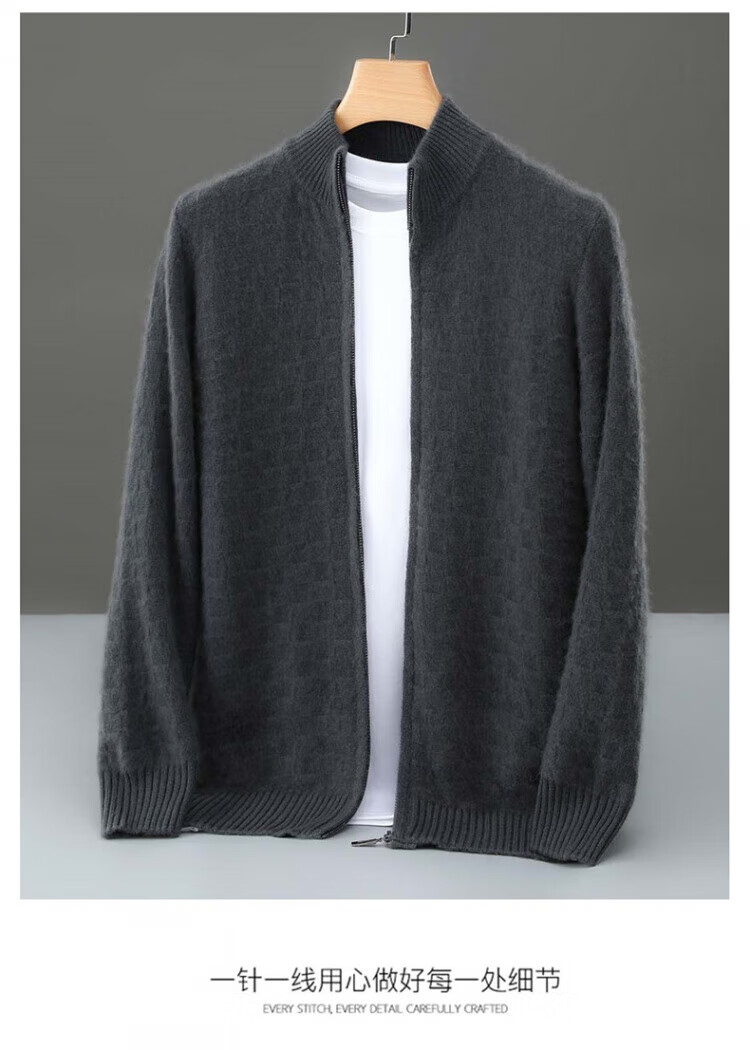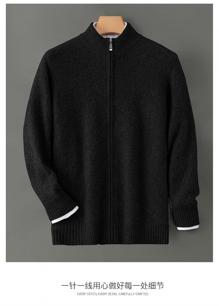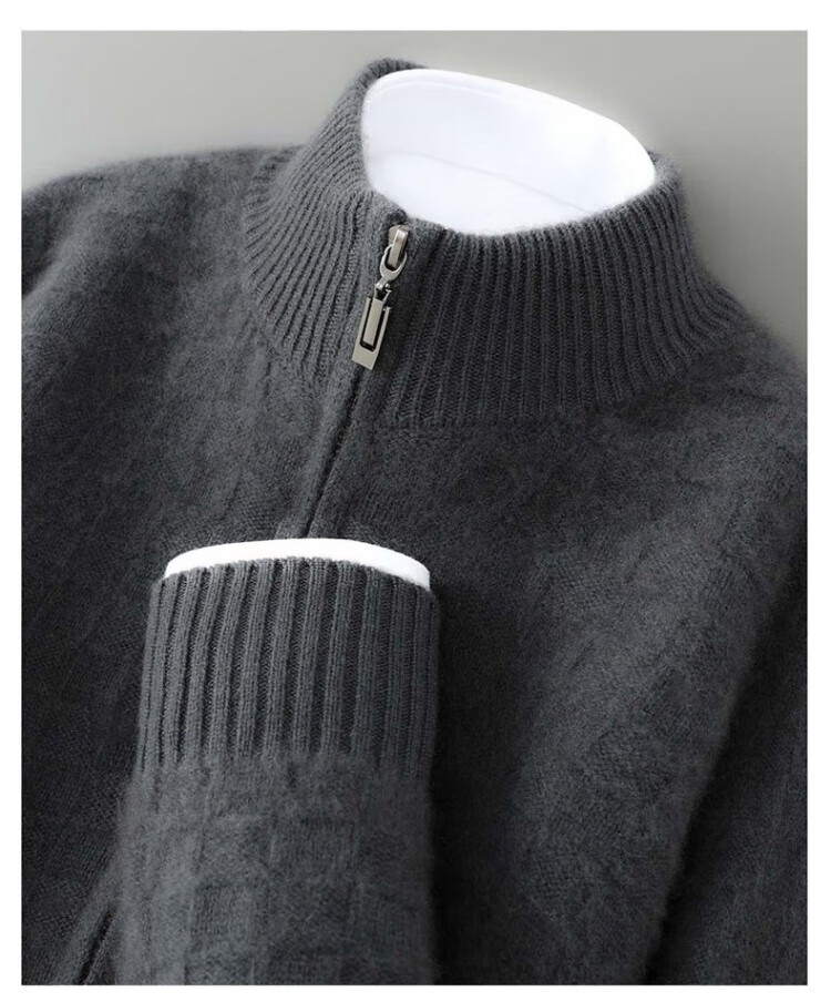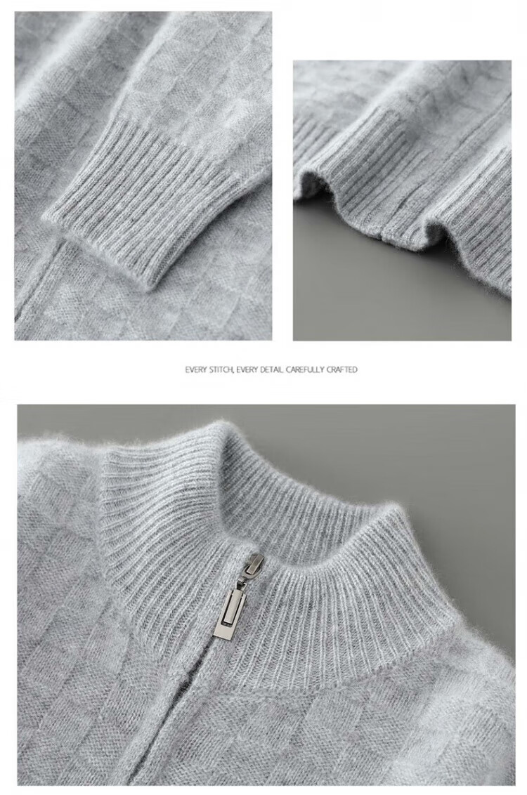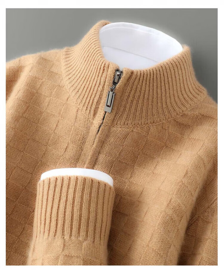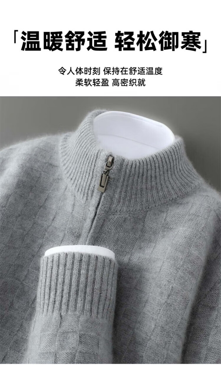 Hengyuanxiang осенне-зимний мужской полуводолазка с застежкой-молнией, однотонный жаккардовый кардиган из 100% чистой шерсти, свободная утолщенная вязаная куртка желтого верблюжьего цвета, рекомендуется 120-140