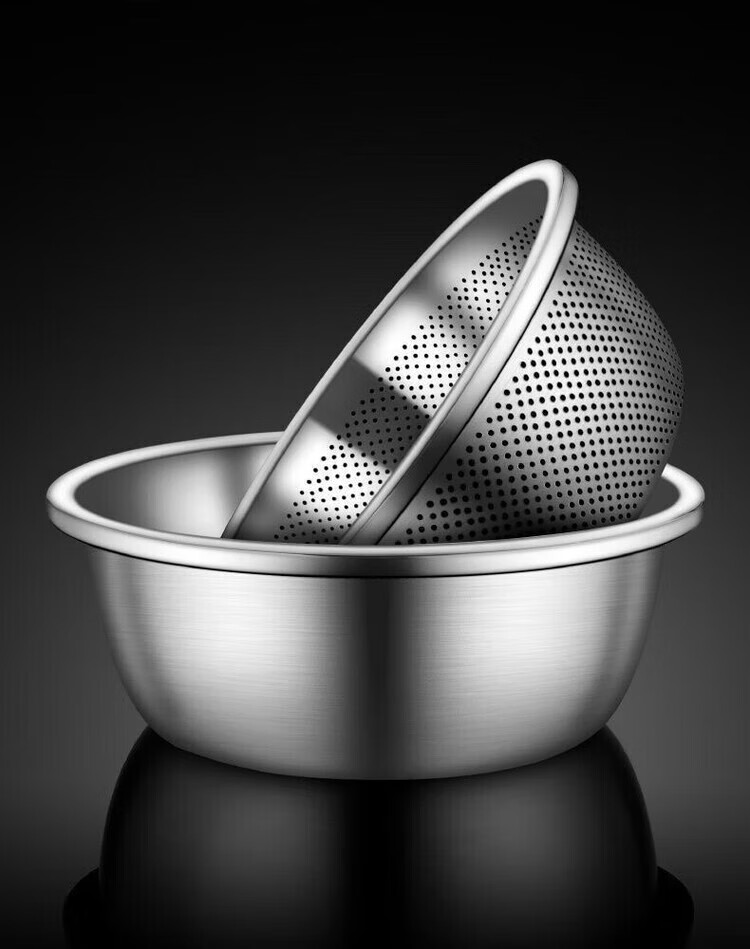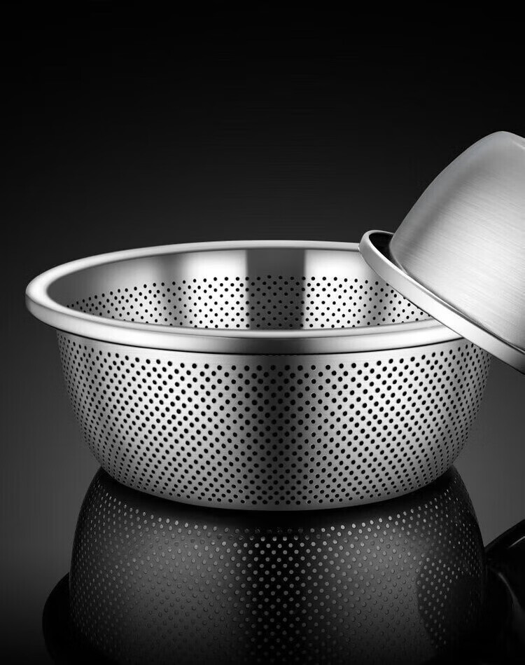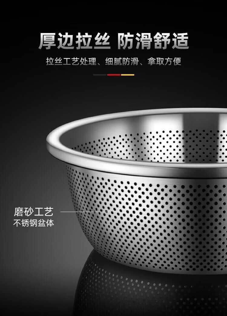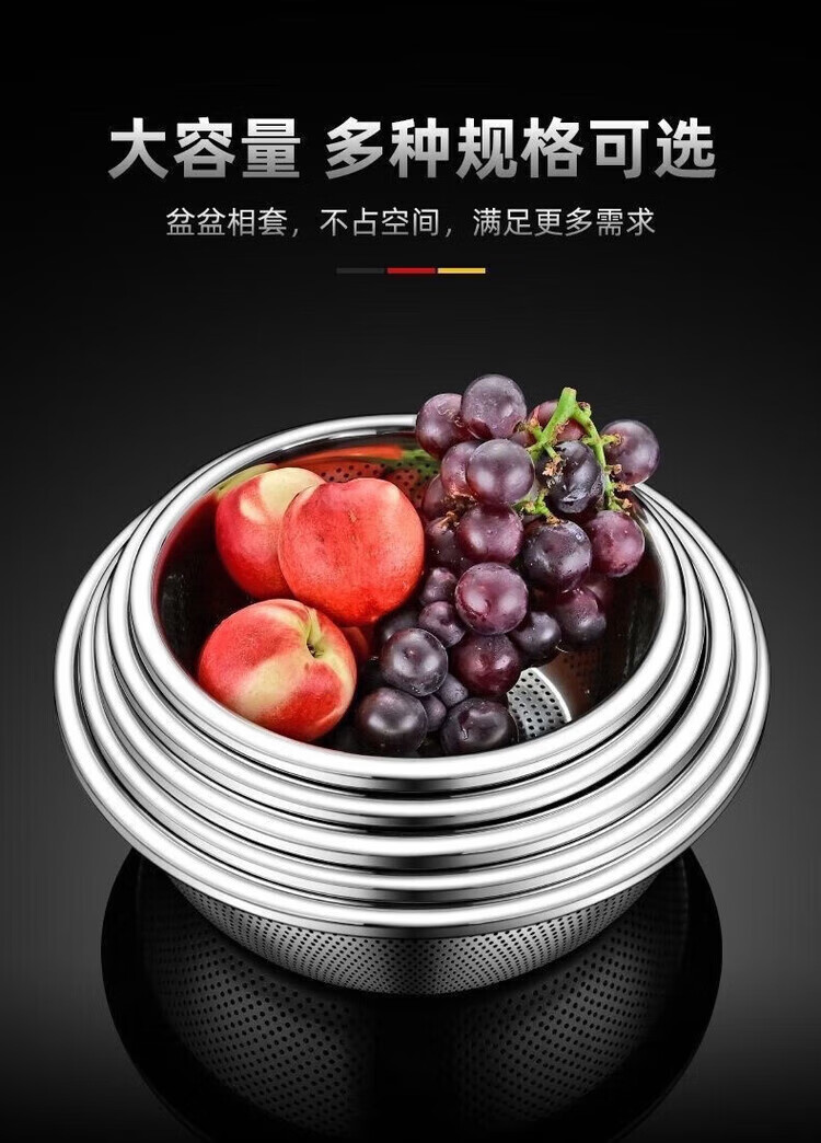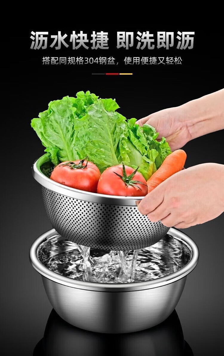 SMVP304 stainless steel vegetable sink drain basket rice washing sieve rice basin kitchen artifact fruit basket household drain food grade 30CM drain basin + solid basin