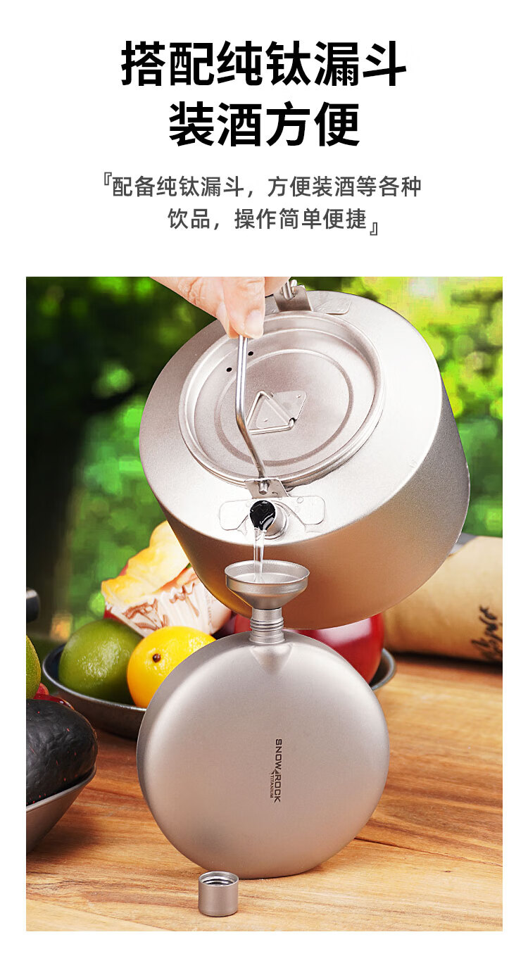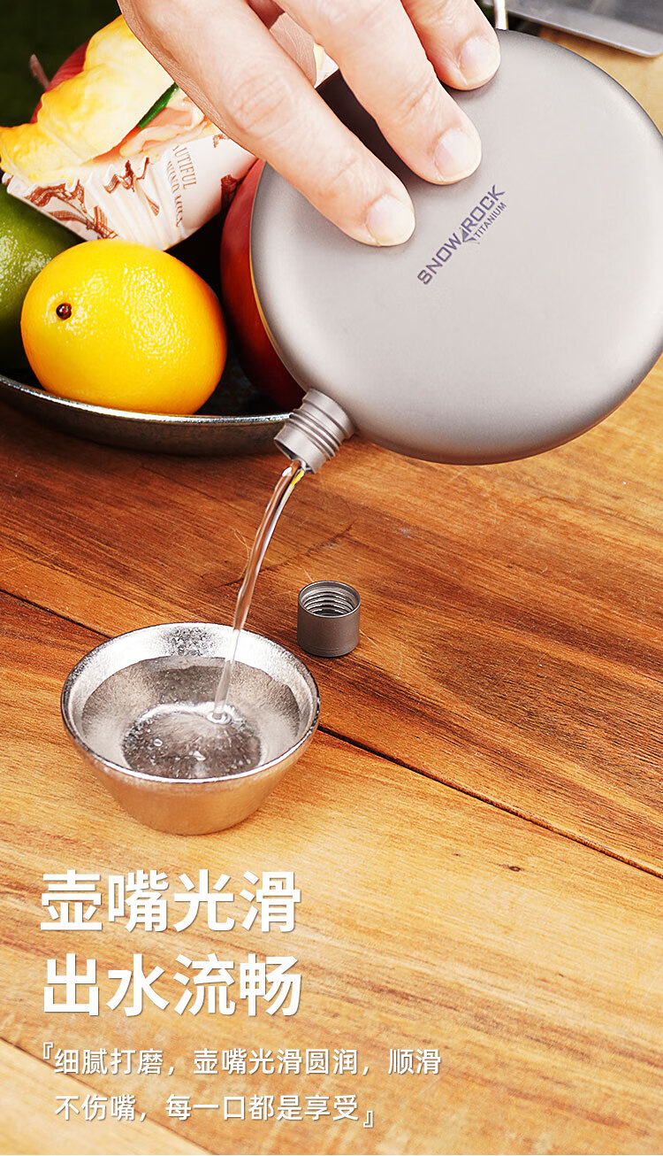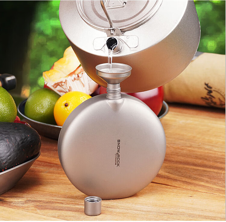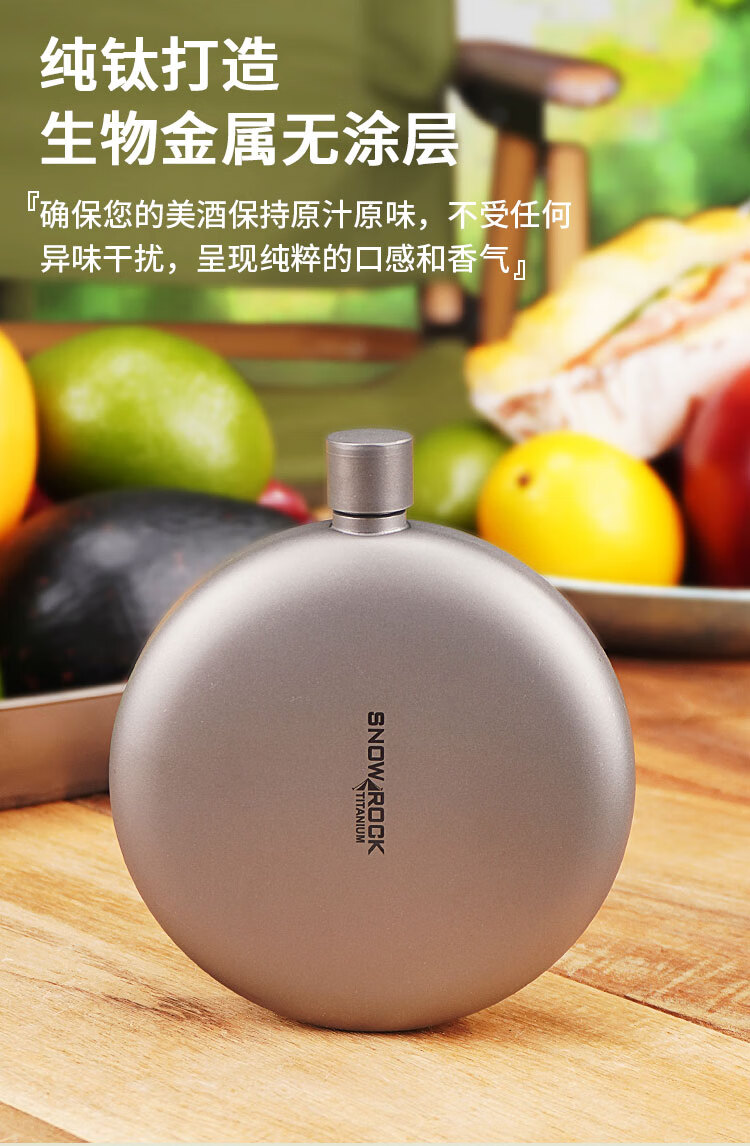 SNOW ROCK Pure Titanium Wine Bottle Frosted Portable Wine Bottle Fresh-keeping Wine Bottle Antibacterial Kettle Outdoor Titanium Kettle Travel Wine Bottle 180ml Double-sided Convex Wine Bottle_Free Funnel-Sandblasting