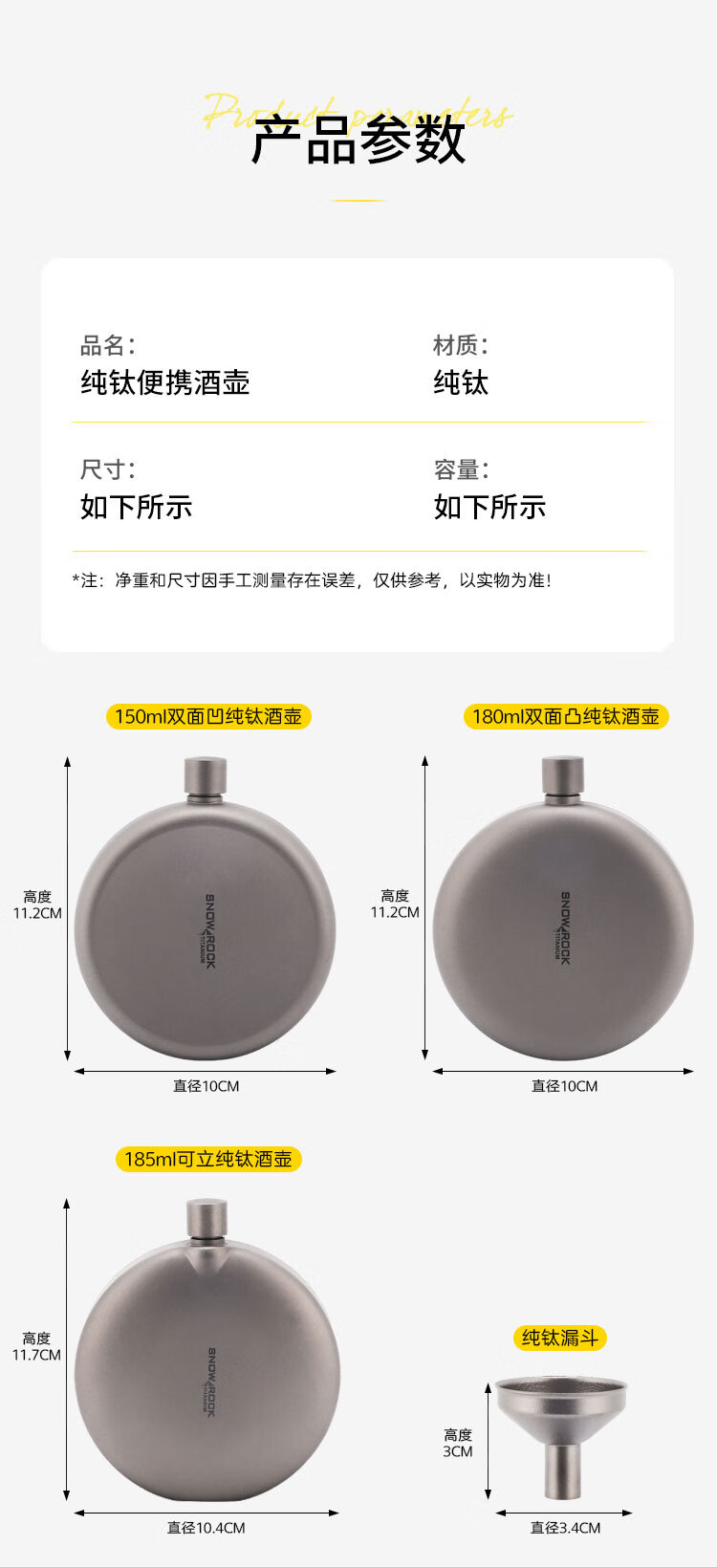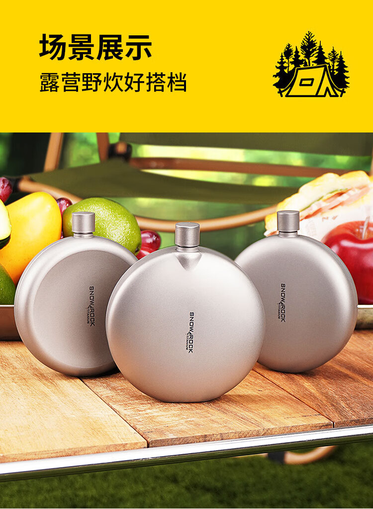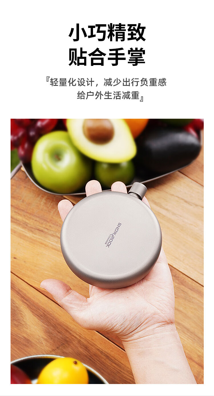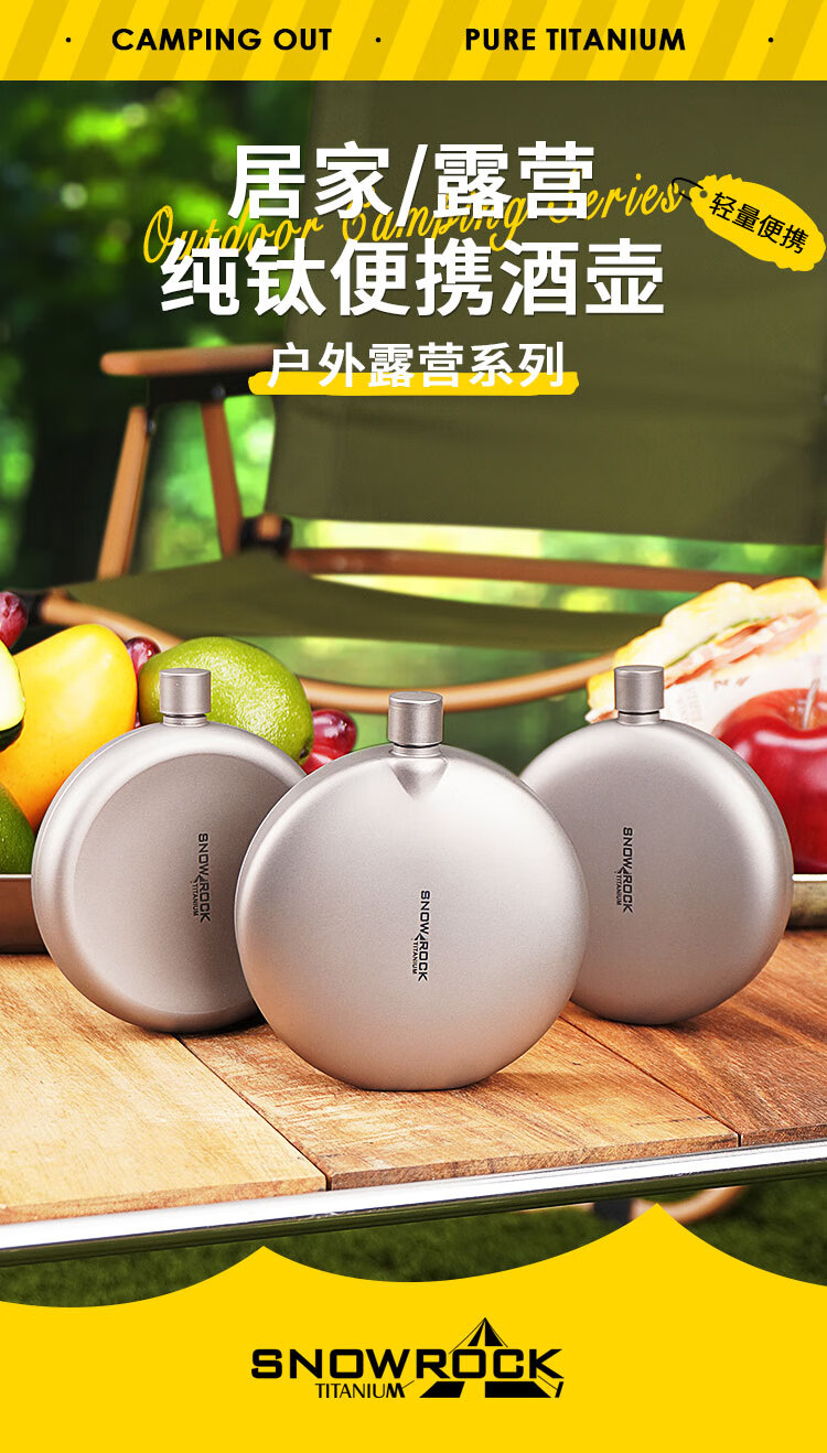 SNOW ROCK Pure Titanium Wine Bottle Frosted Portable Wine Bottle Fresh-keeping Wine Bottle Antibacterial Kettle Outdoor Titanium Kettle Travel Wine Bottle 180ml Double-sided Convex Wine Bottle_Free Funnel-Sandblasting