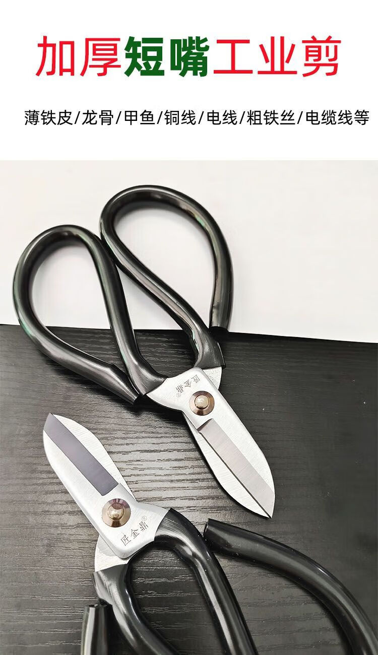 Vinoa short-beak thickened electrician's scissors high hardness sharp cable wire copper wire iron sheet shear turtle household scissors thickened rust-proof short-beak electrician's scissors/1 pair