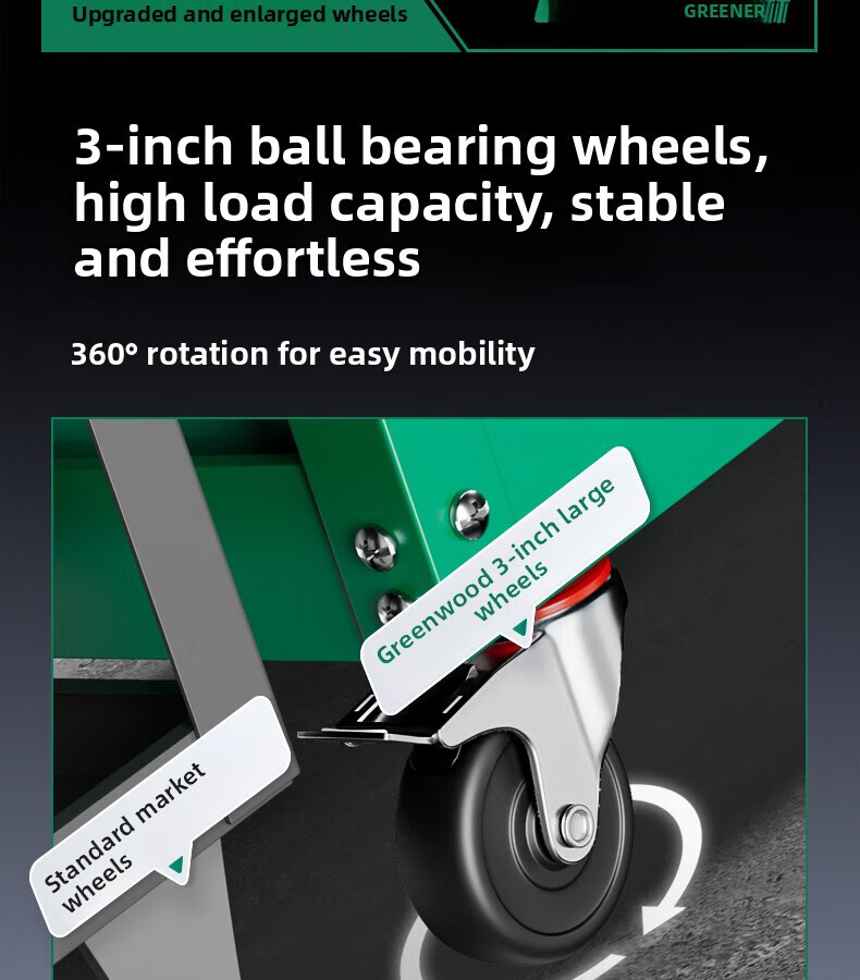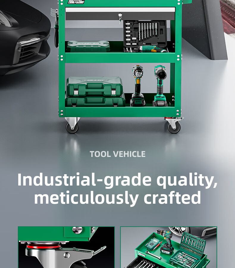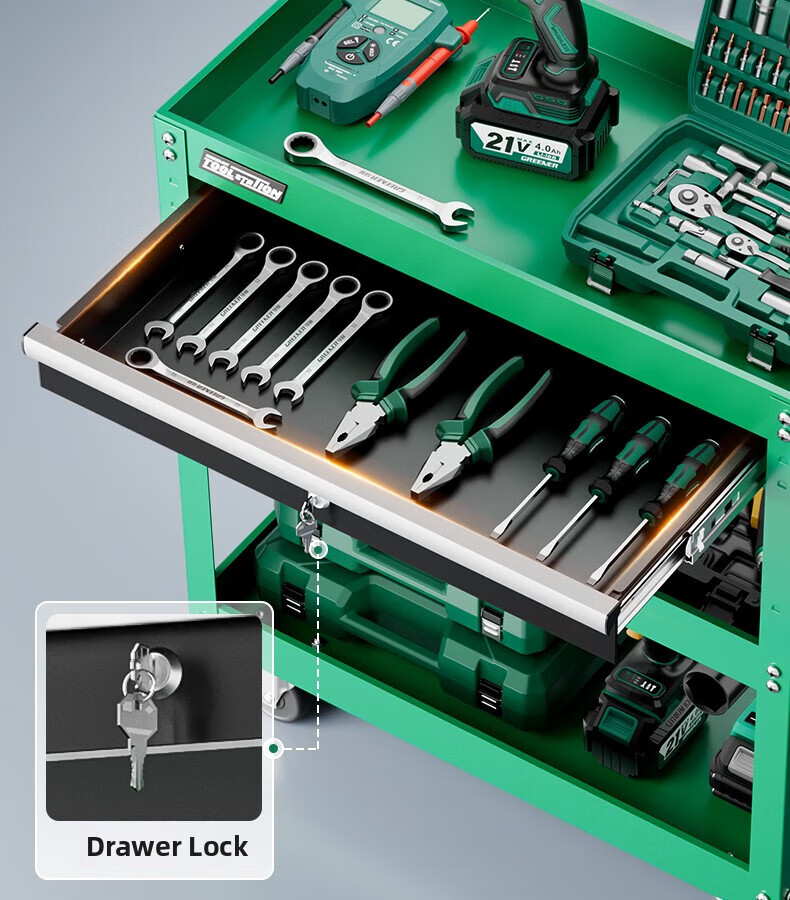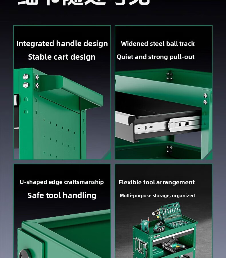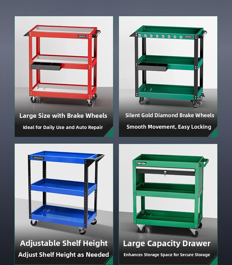 GREENER Tool Cart Auto Repair Drawer Type Maintenance Small Trolley Box Mobile Three-Layer Cabinet Parts Cart Shelves Storage Same as the Main Picture - Capacity Upgraded Drawer Type Green Delivery Hook