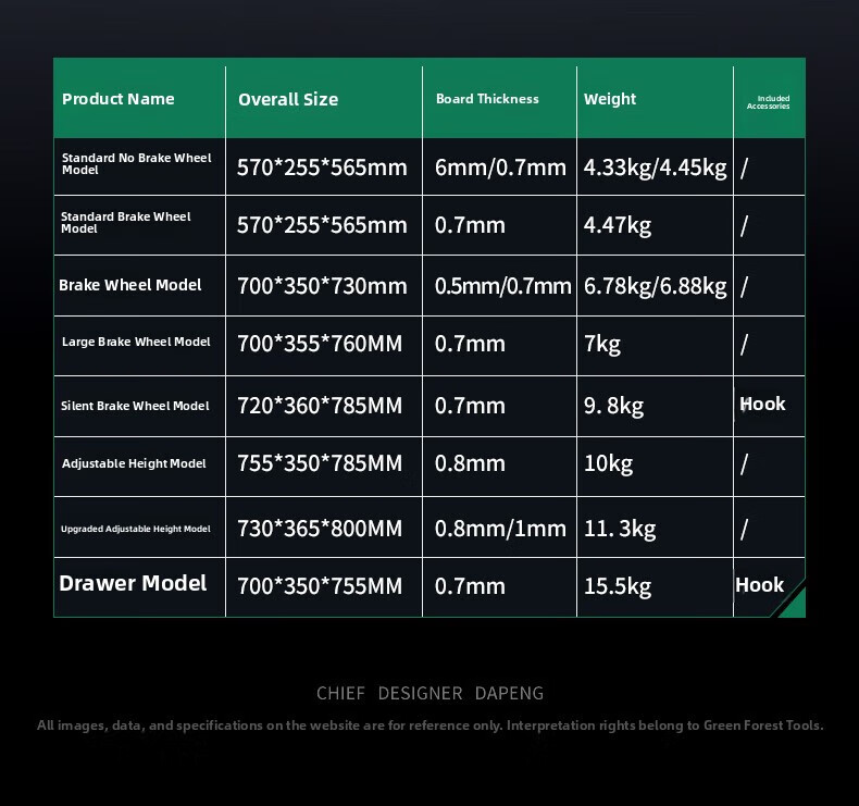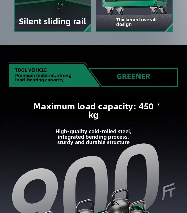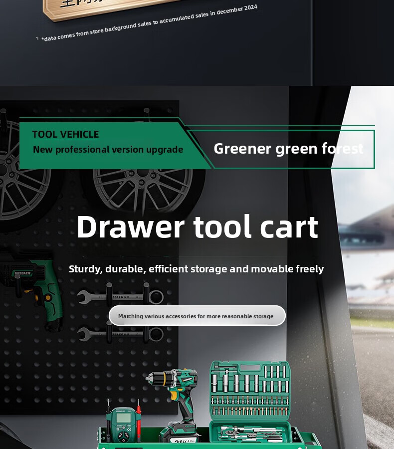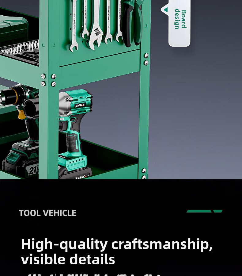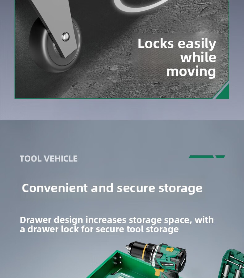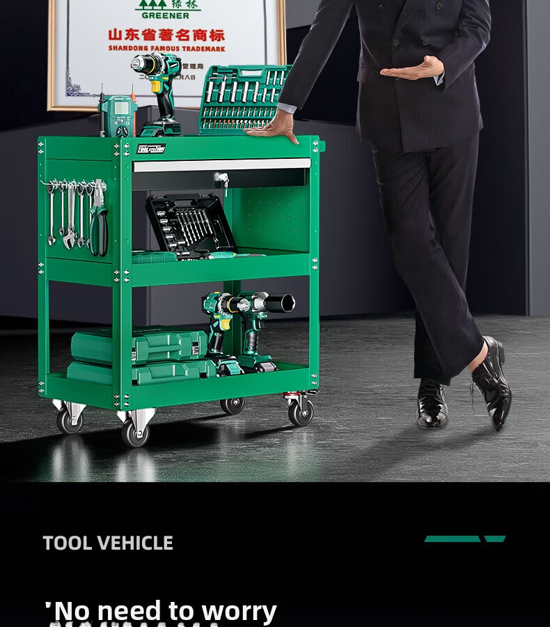 GREENER Tool Cart Auto Repair Drawer Type Maintenance Small Trolley Box Mobile Three-Layer Cabinet Parts Cart Shelves Storage Same as the Main Picture - Capacity Upgraded Drawer Type Green Delivery Hook