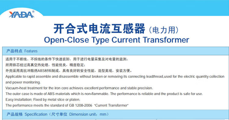 Yada Electronic Transformer Opening Power Round Hole Transformer Current Square Hole Transformer