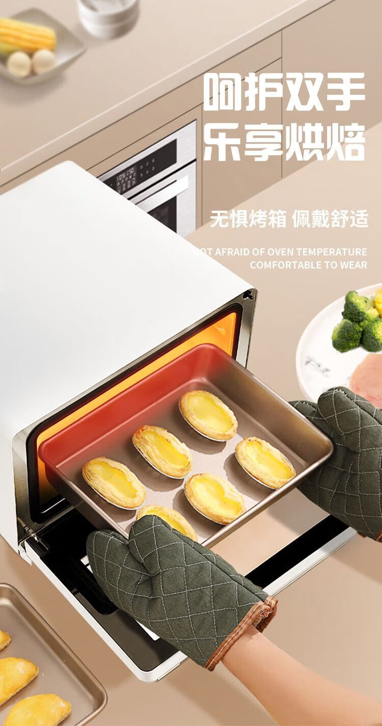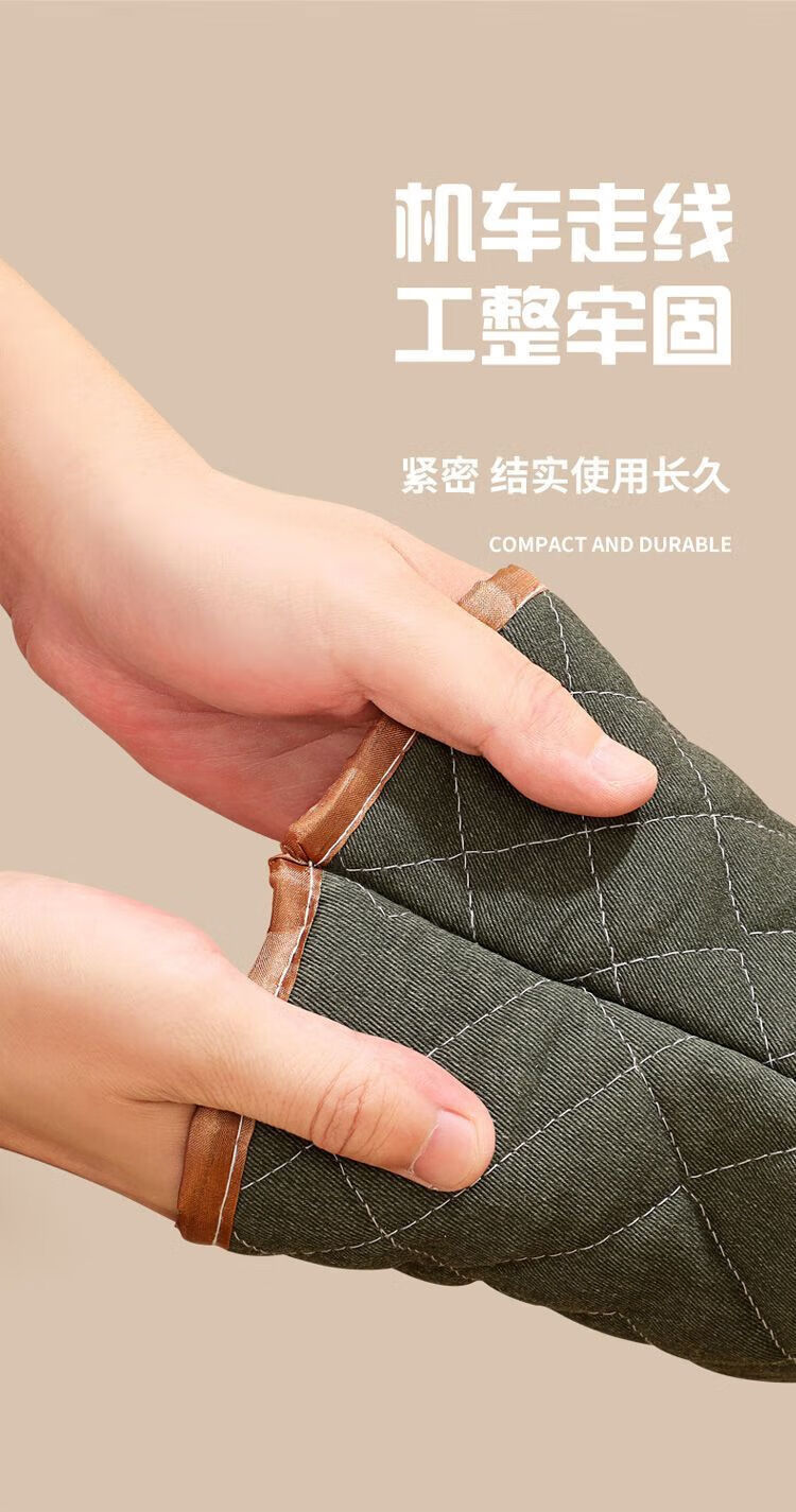 Vinoa anti-scalding gloves, oven-specific thickened heat-insulating gloves, household high-temperature-resistant steamer oven gloves, microwave oven gloves, military green/large, resistant to 270 degrees, 1 piece, regardless of left and right, can also be operated with one hand
