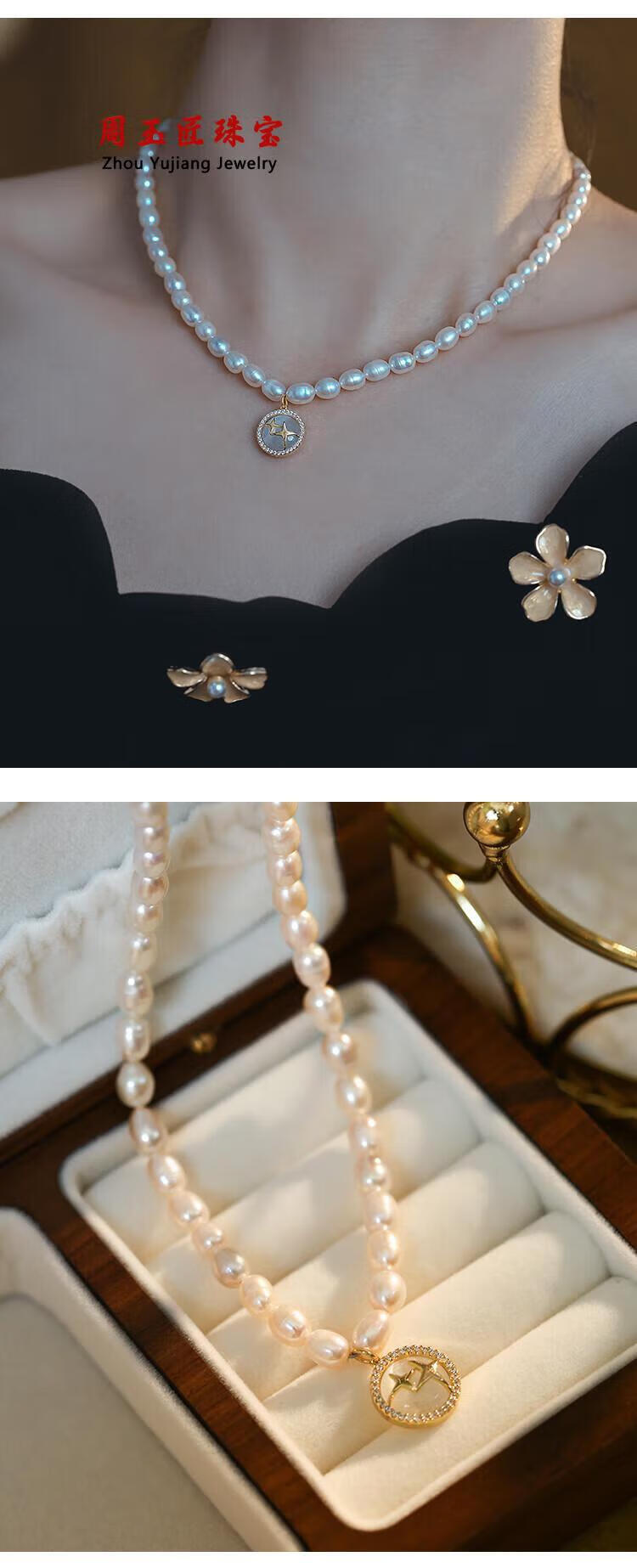 Baroque pearl pendant natural necklace women's cat's eye stone starburst design French elegant twin star cat cat chain plated