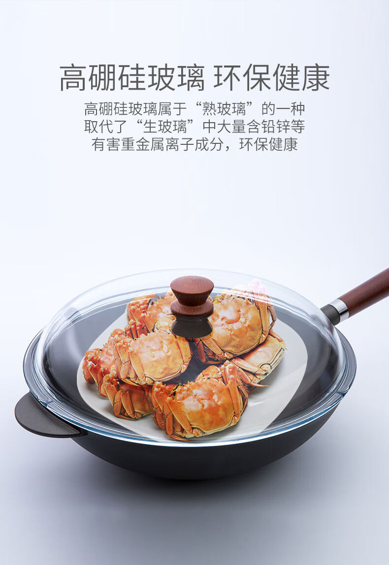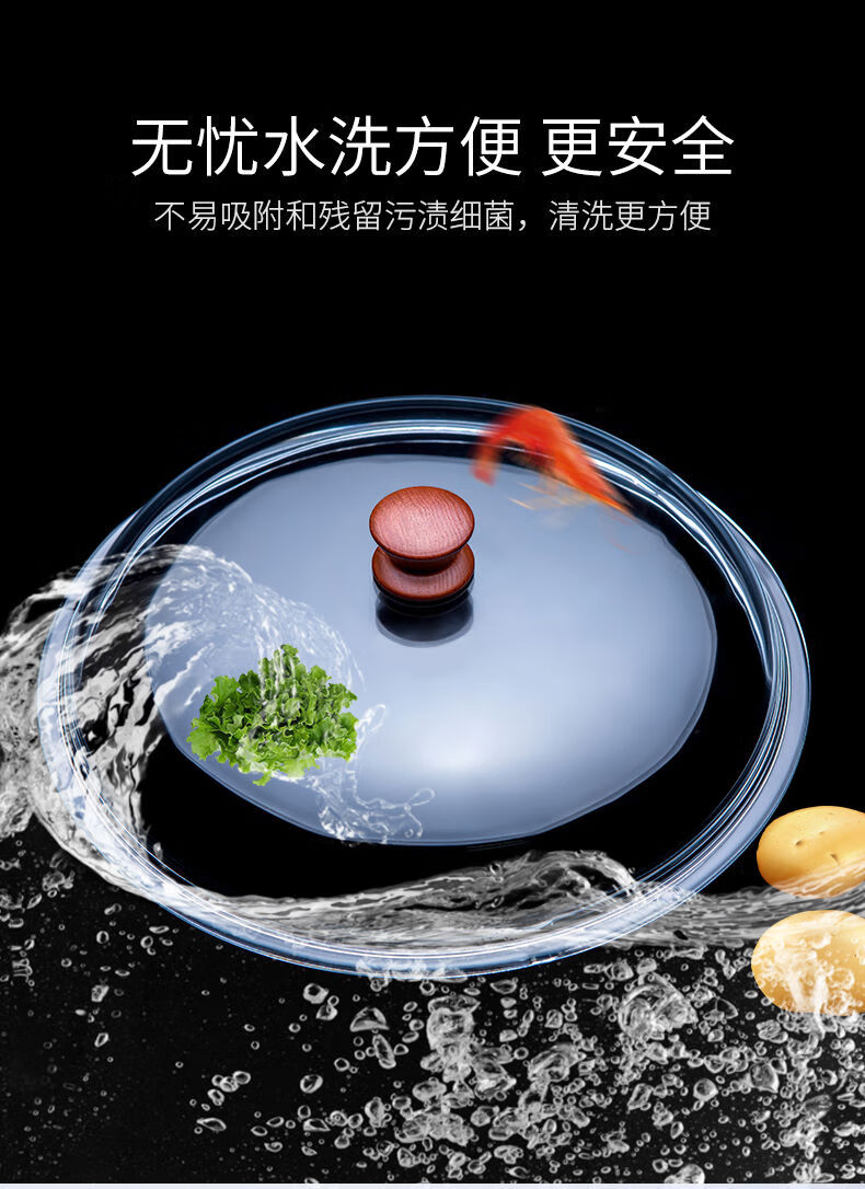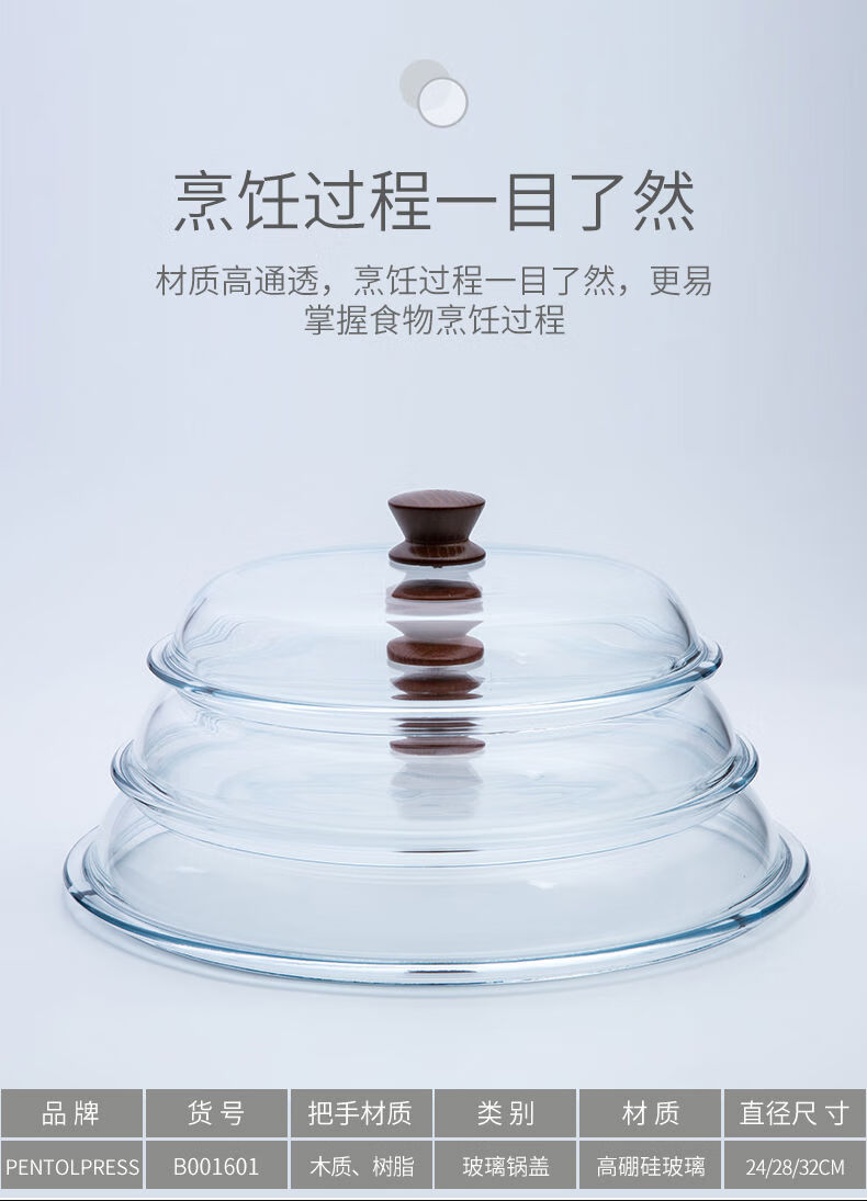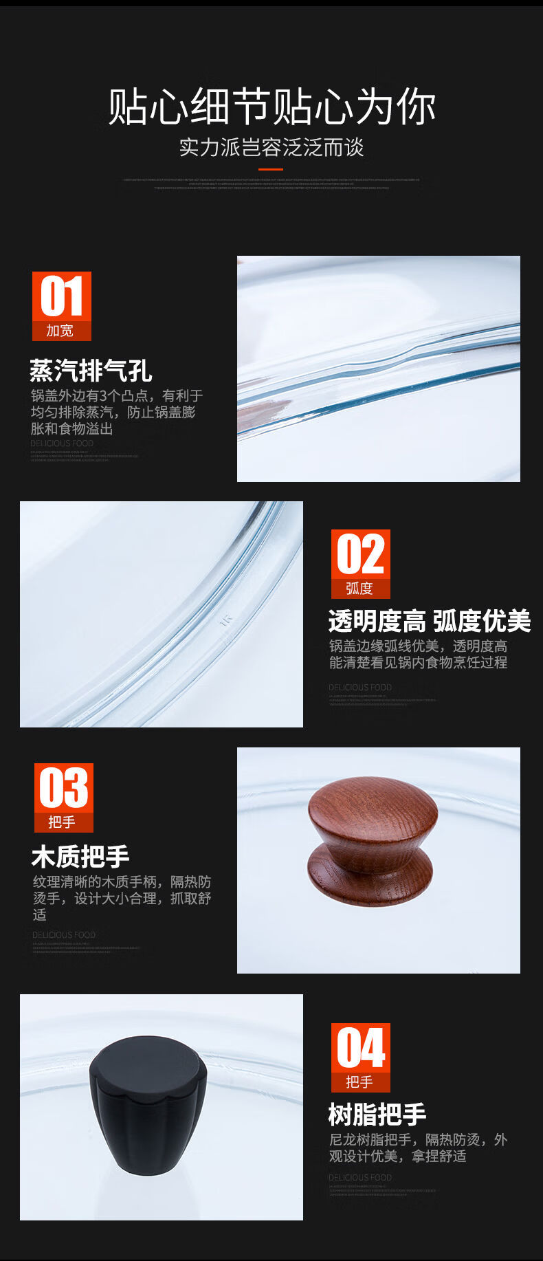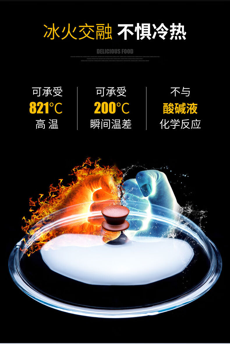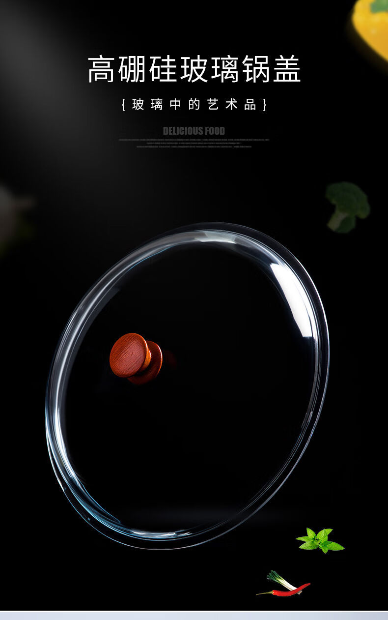 High borosilicate glass wok steamer tempered transparent glass pot lid household 242832cm black resin handle 24cm