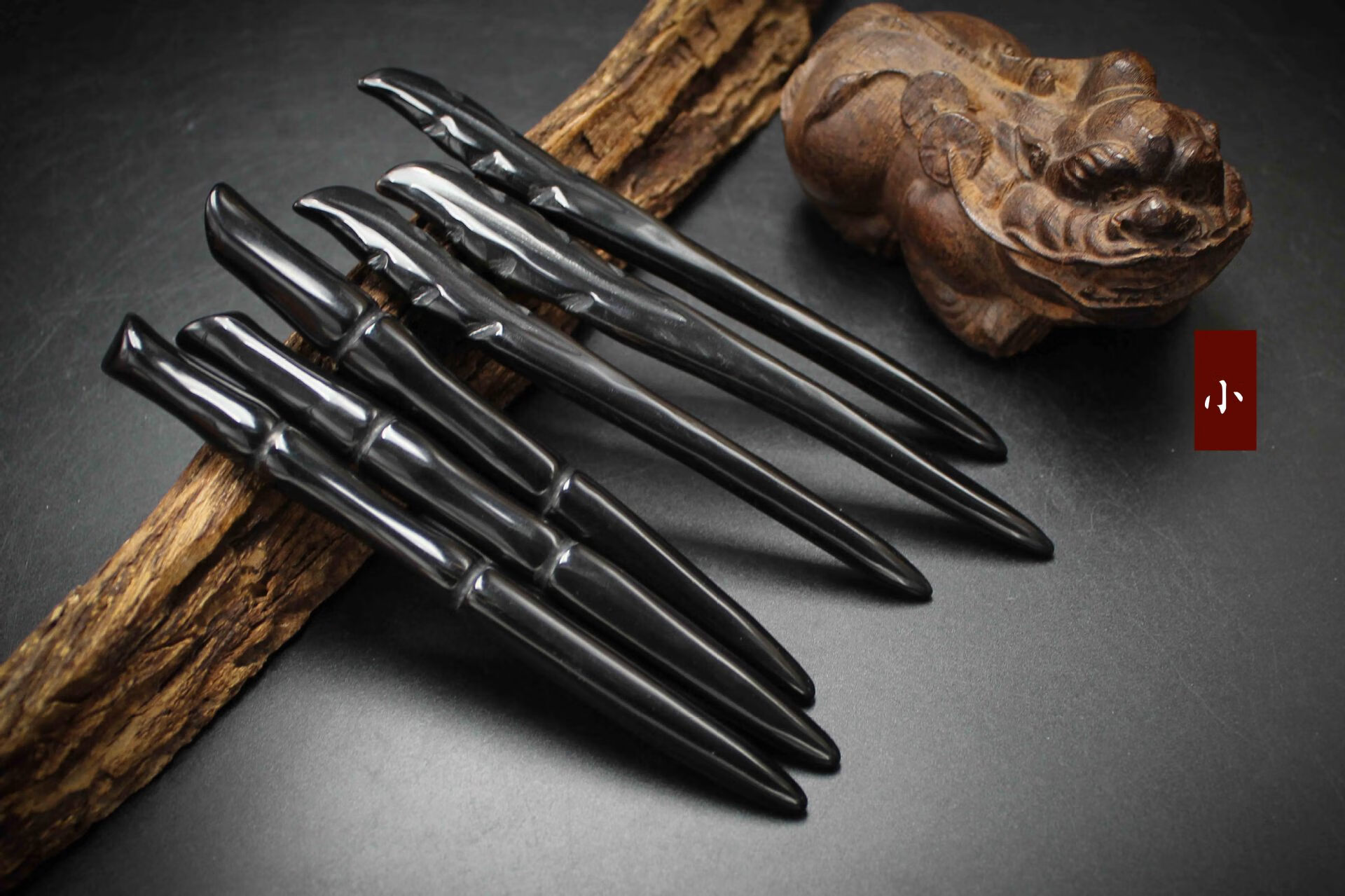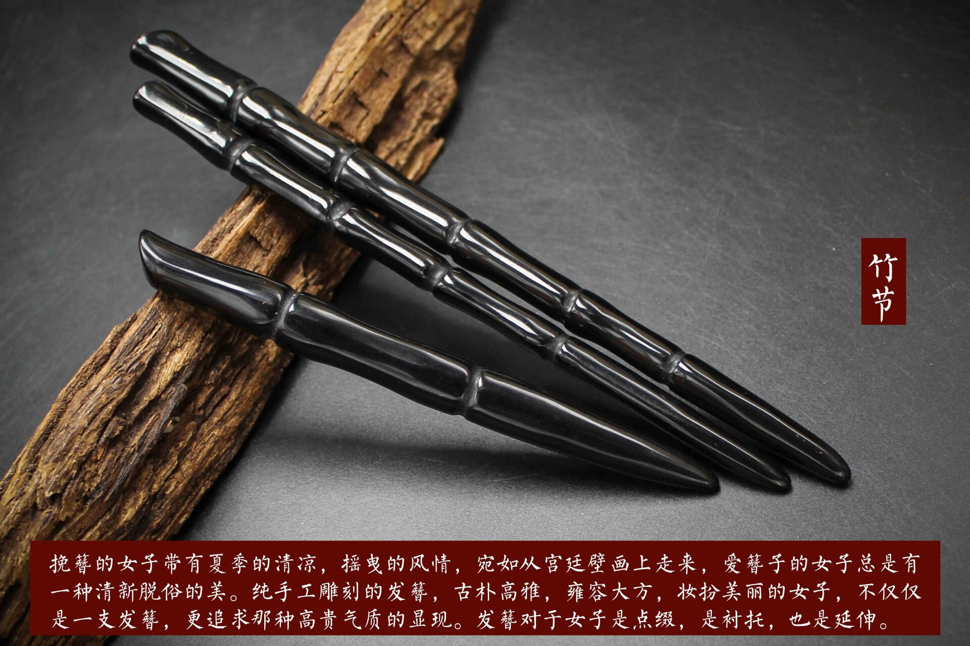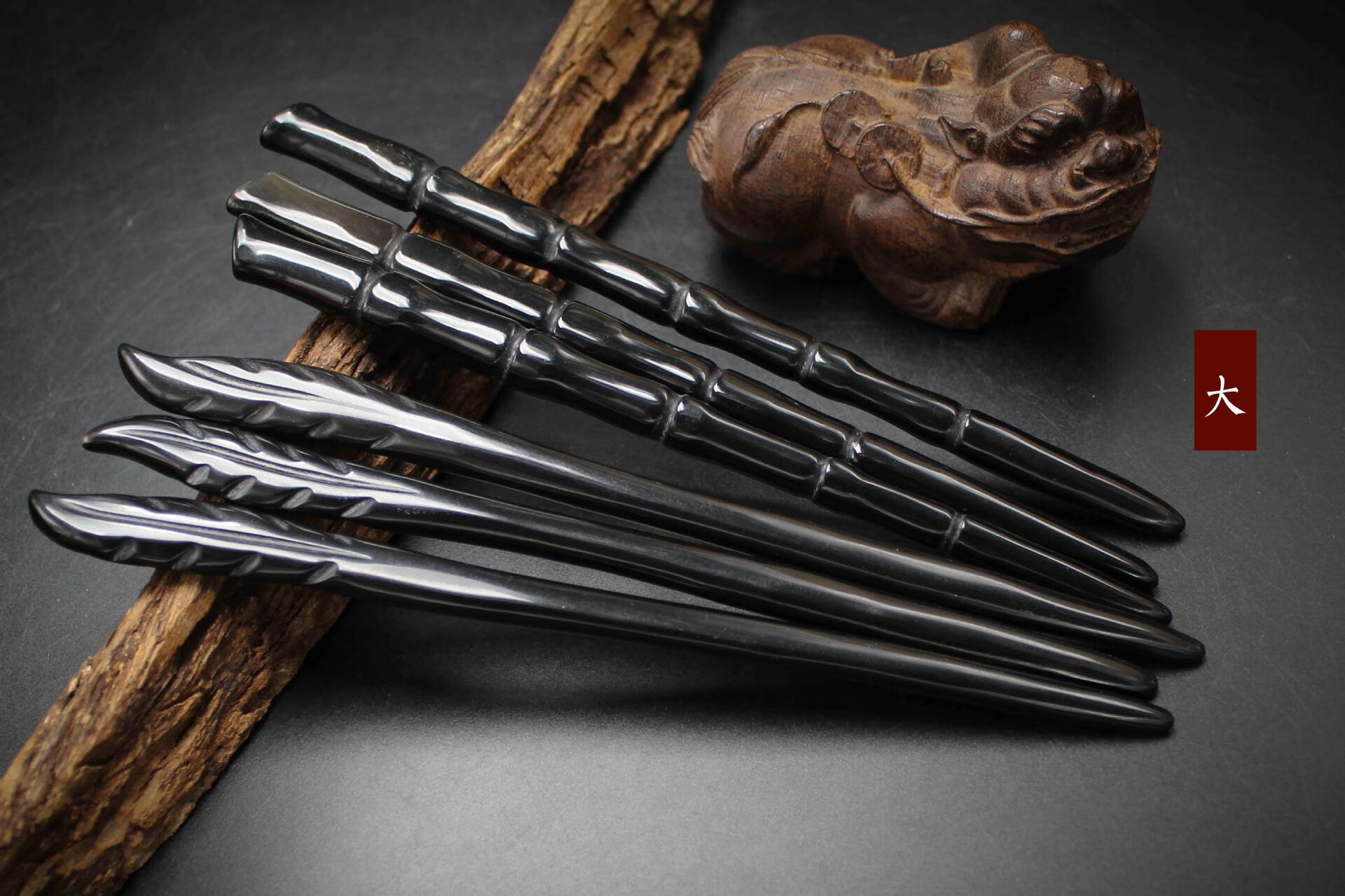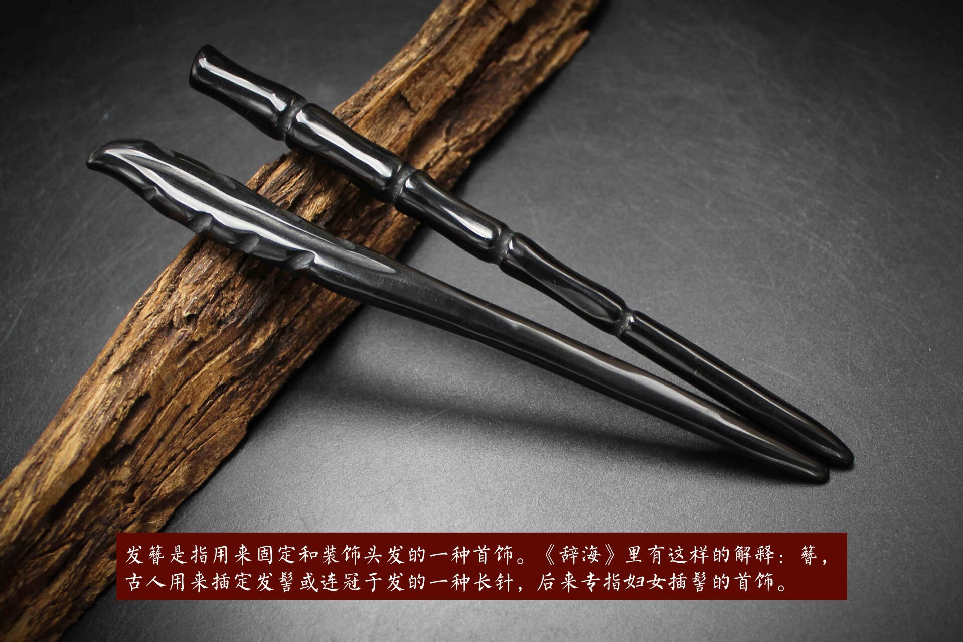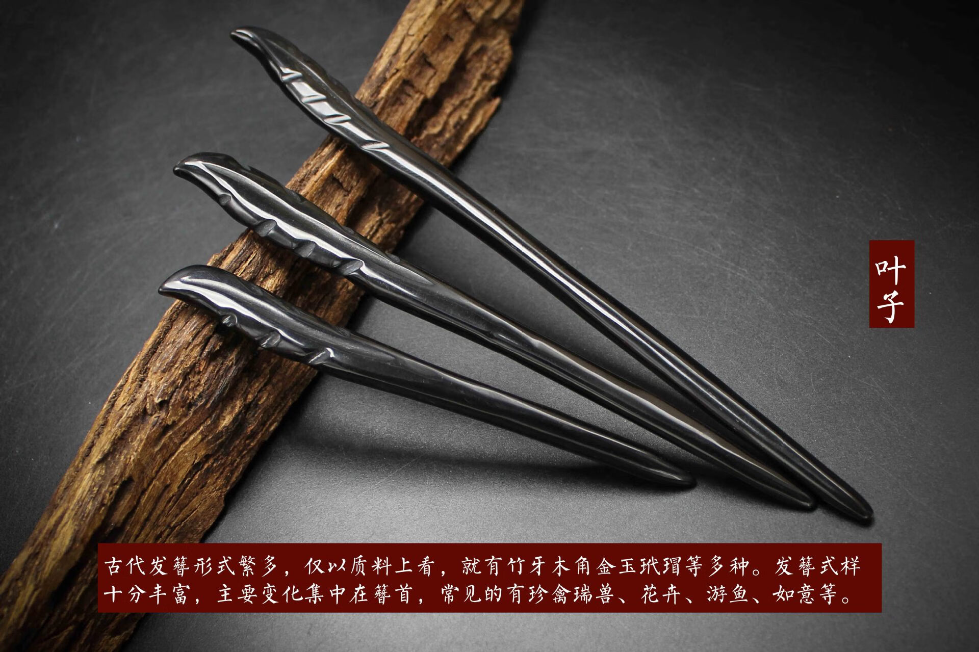 He Jiagong black horn hairpin new Chinese style hairpin for women ancient style high-end handmade daily hairpin simple 12CM leaves
