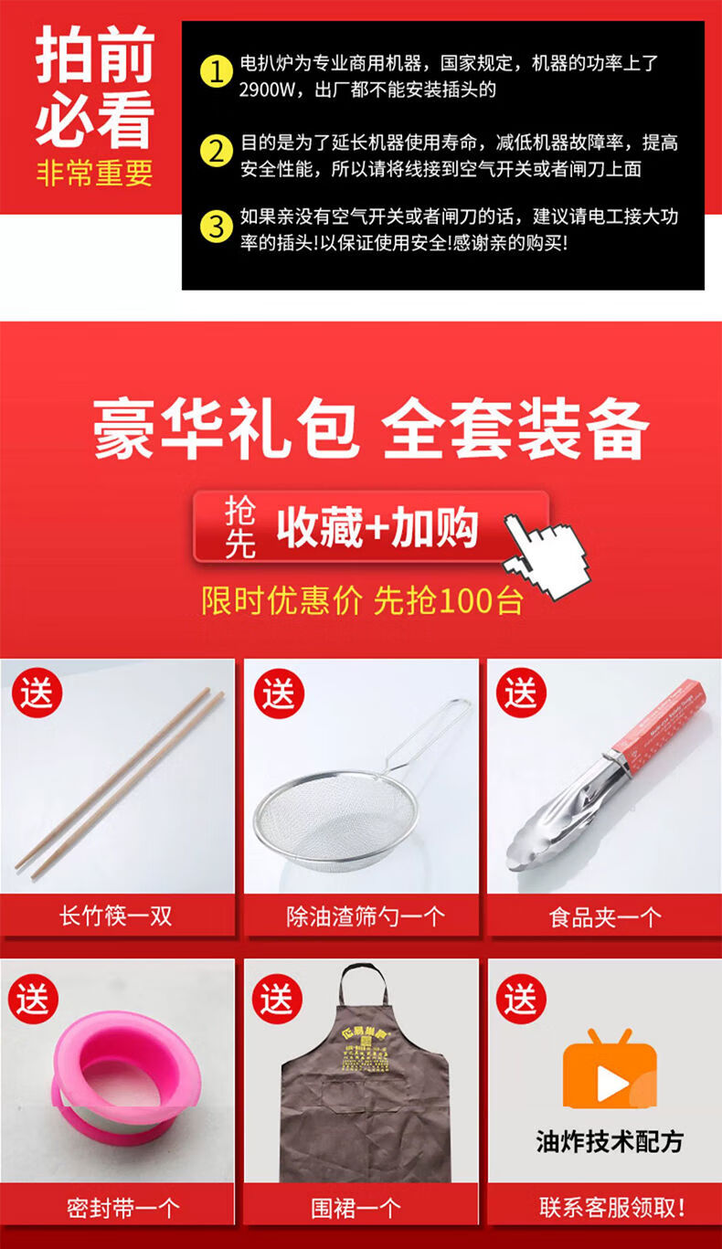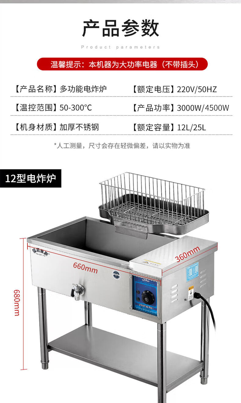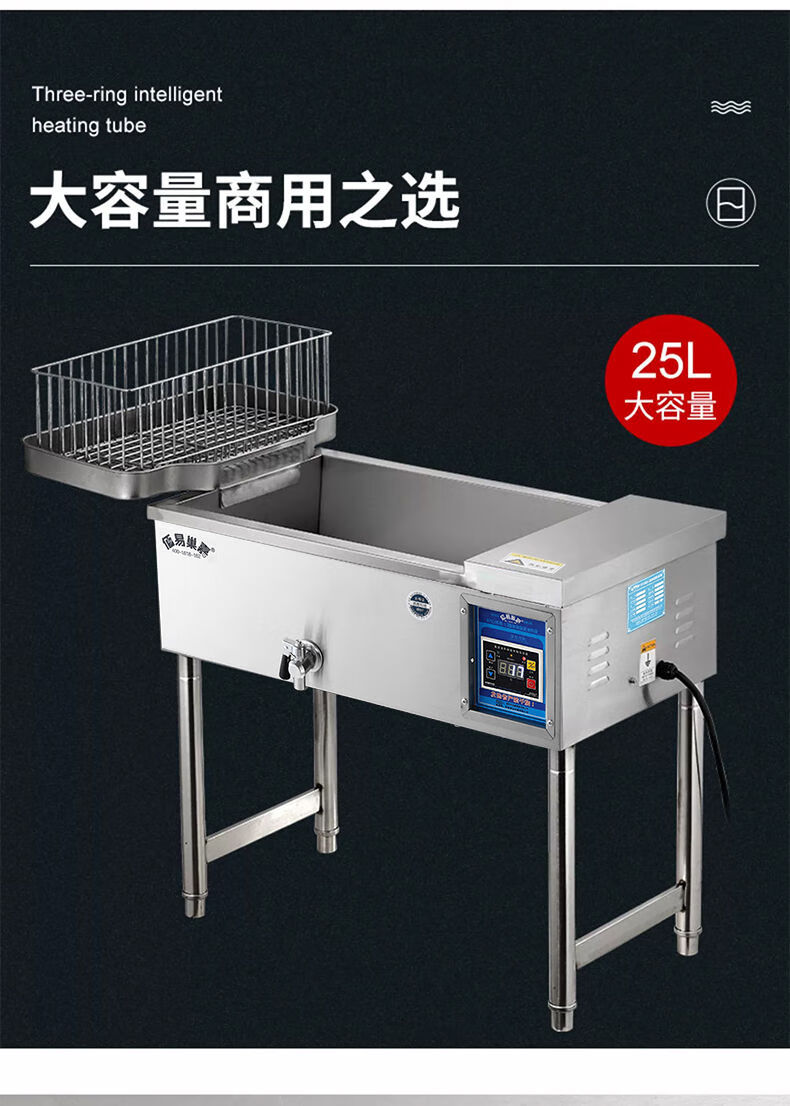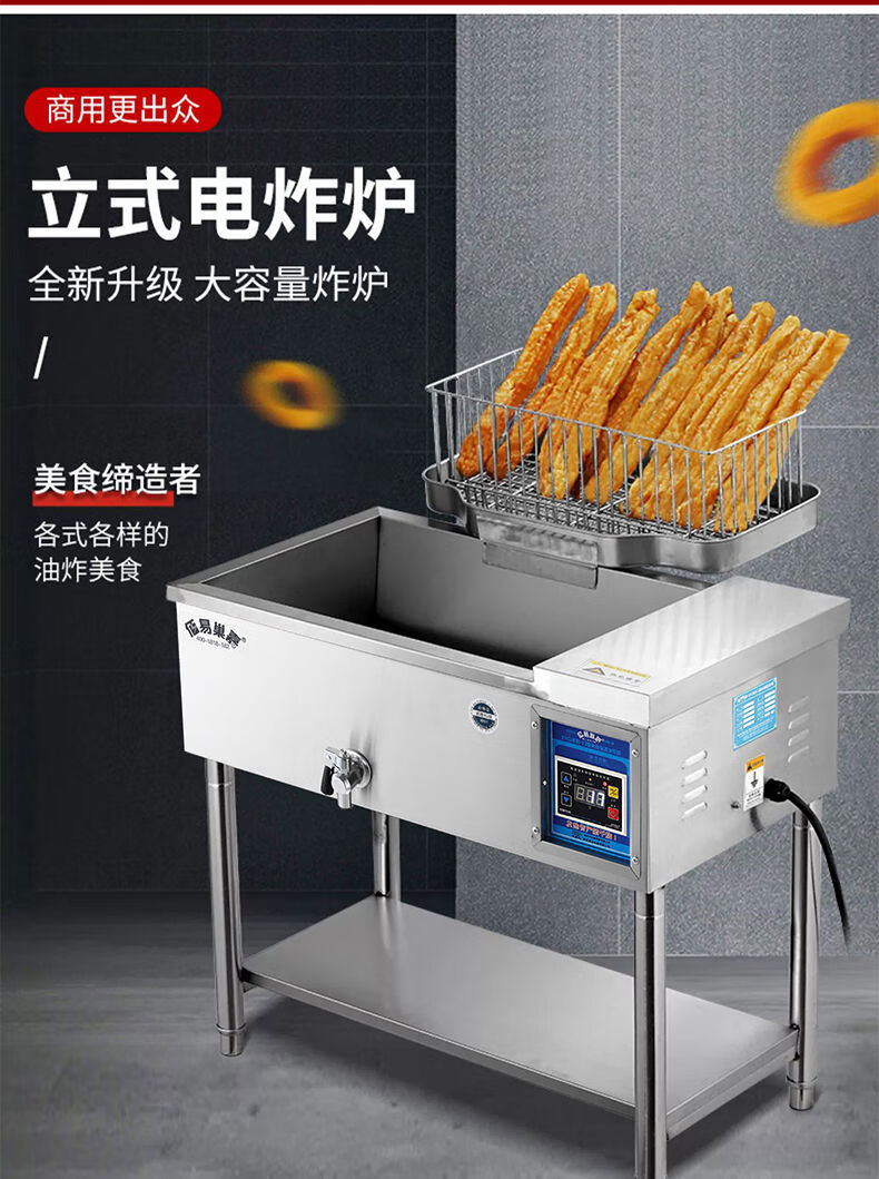 Baiyichaojia vertical large-capacity fryer commercial automatic constant temperature deep-fried fried dough sticks special pot fried stinky tofu French fries sesame ball fried skewers 1 inch 25 type mechanical temperature control meter + oil filter plate 4500 watts