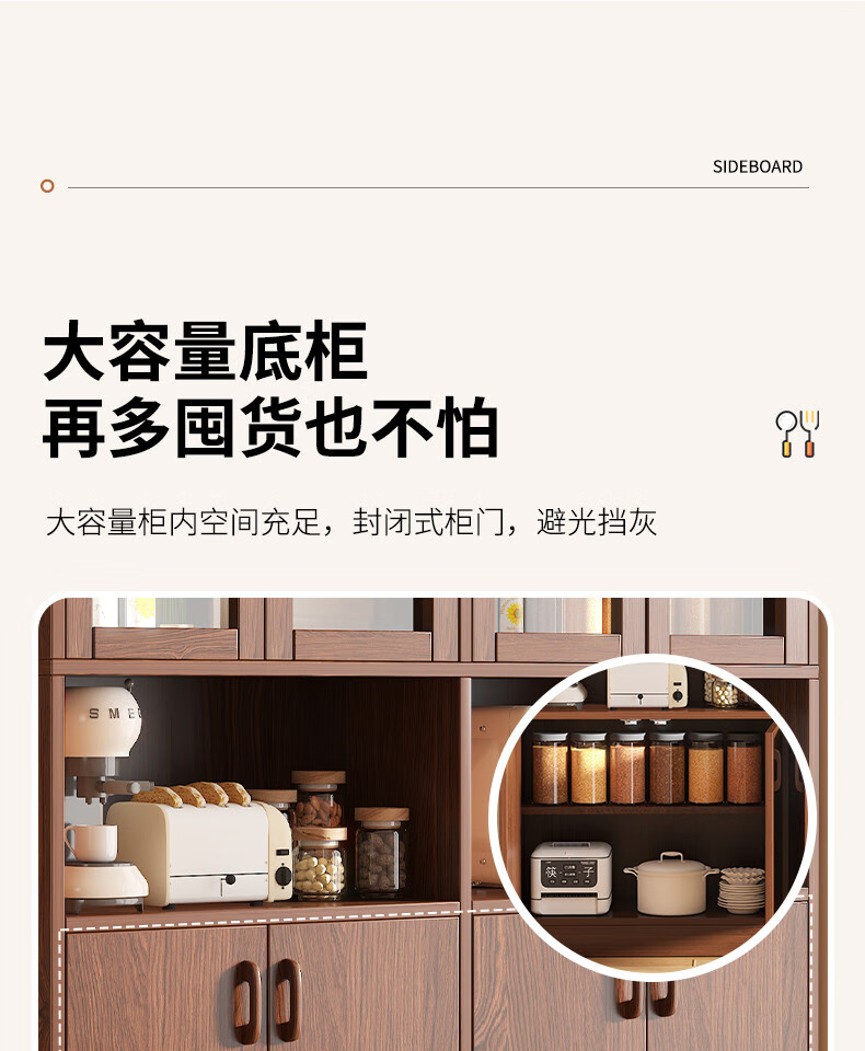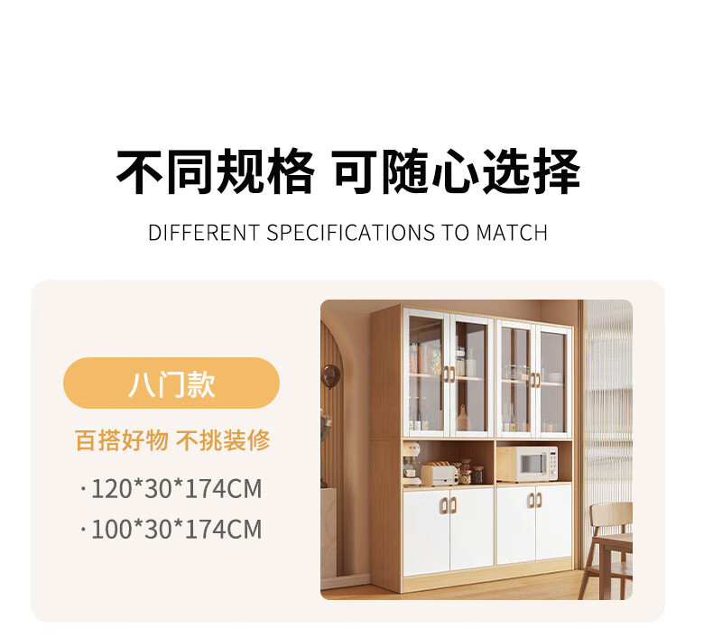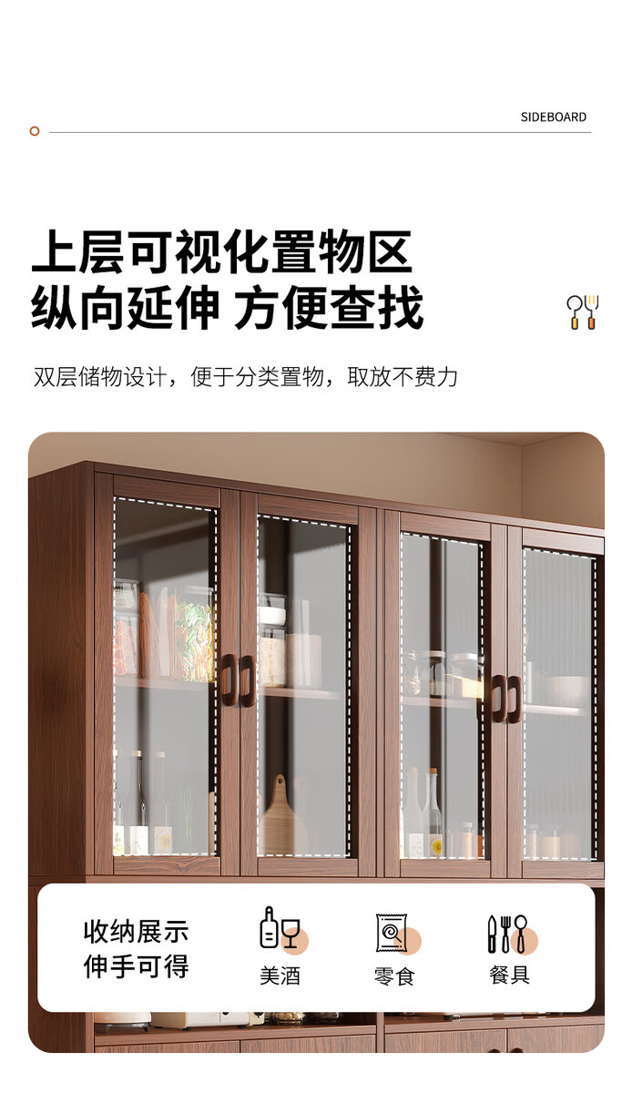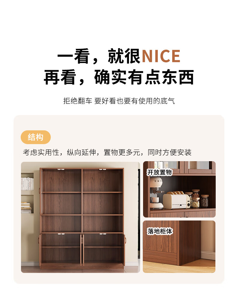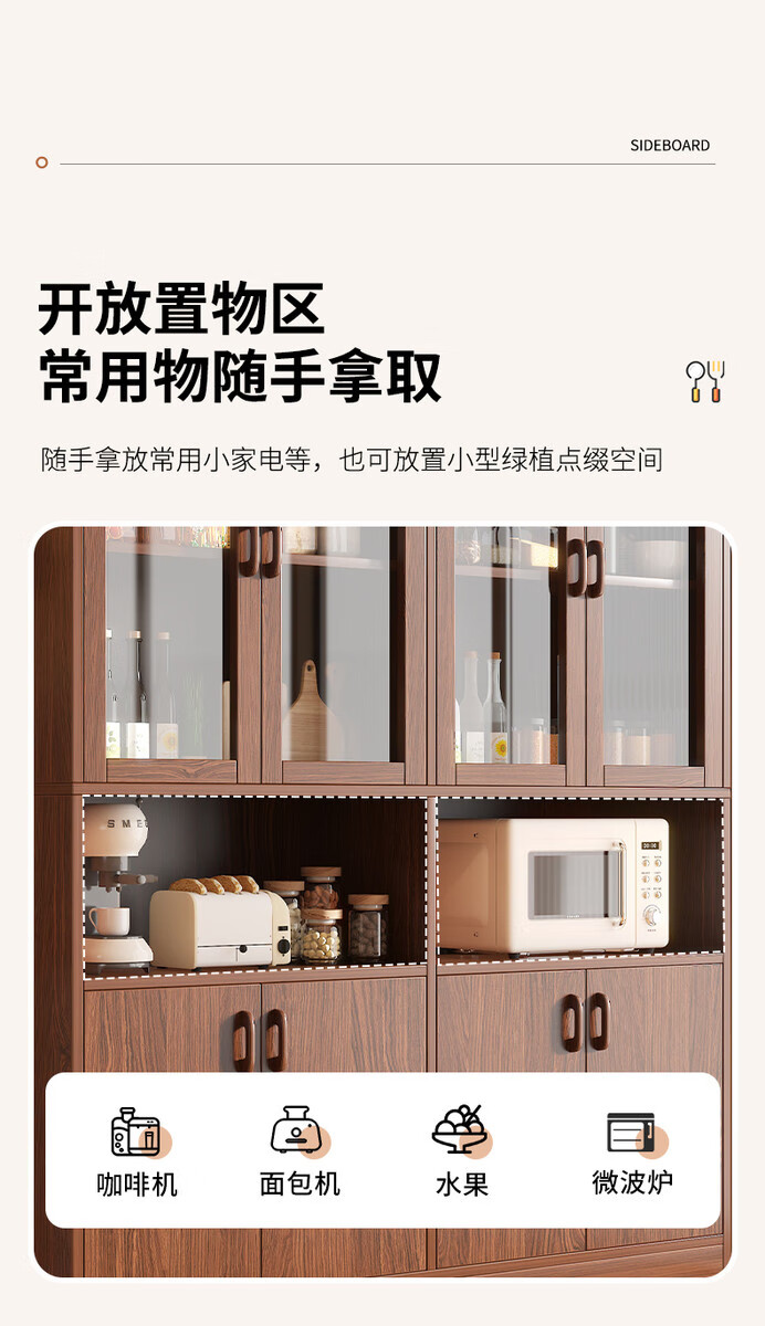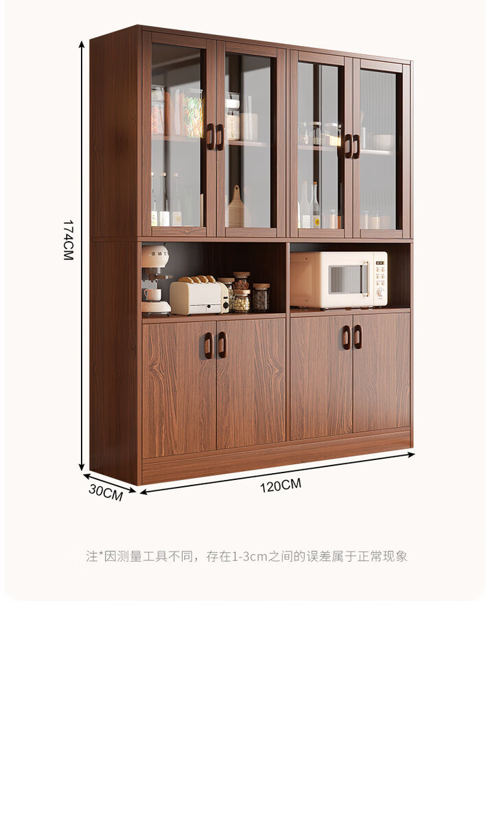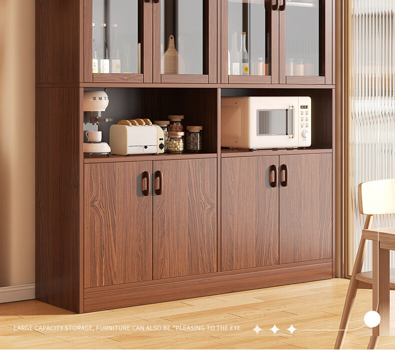 Zhong Zhangguo wine cabinet living room wall-mounted integrated cabinet home meal preparation cabinet solid wood color tea cabinet entrance display cabinet partition cabinet 8 doors 2 grids thickened and stable walnut color 120x30x174c