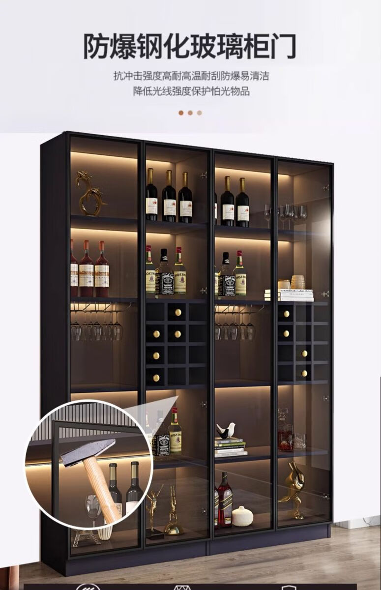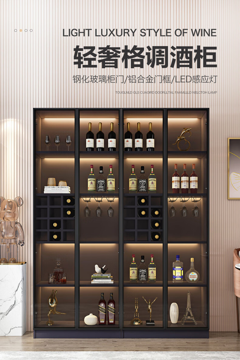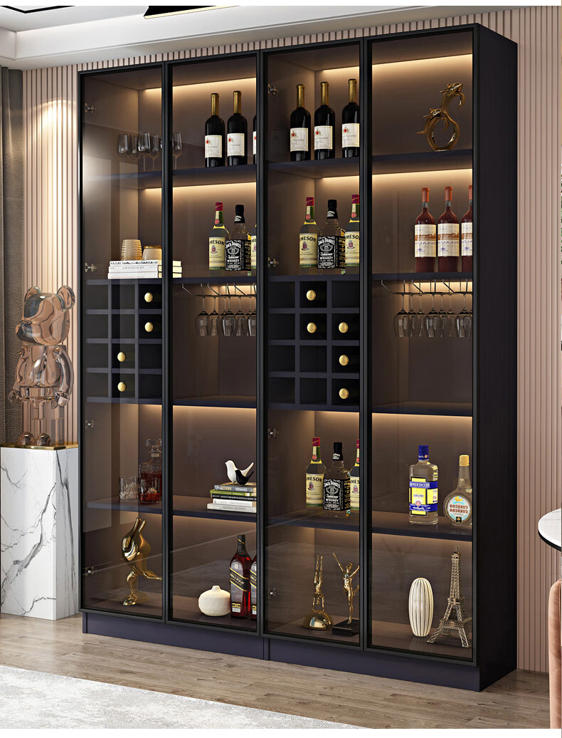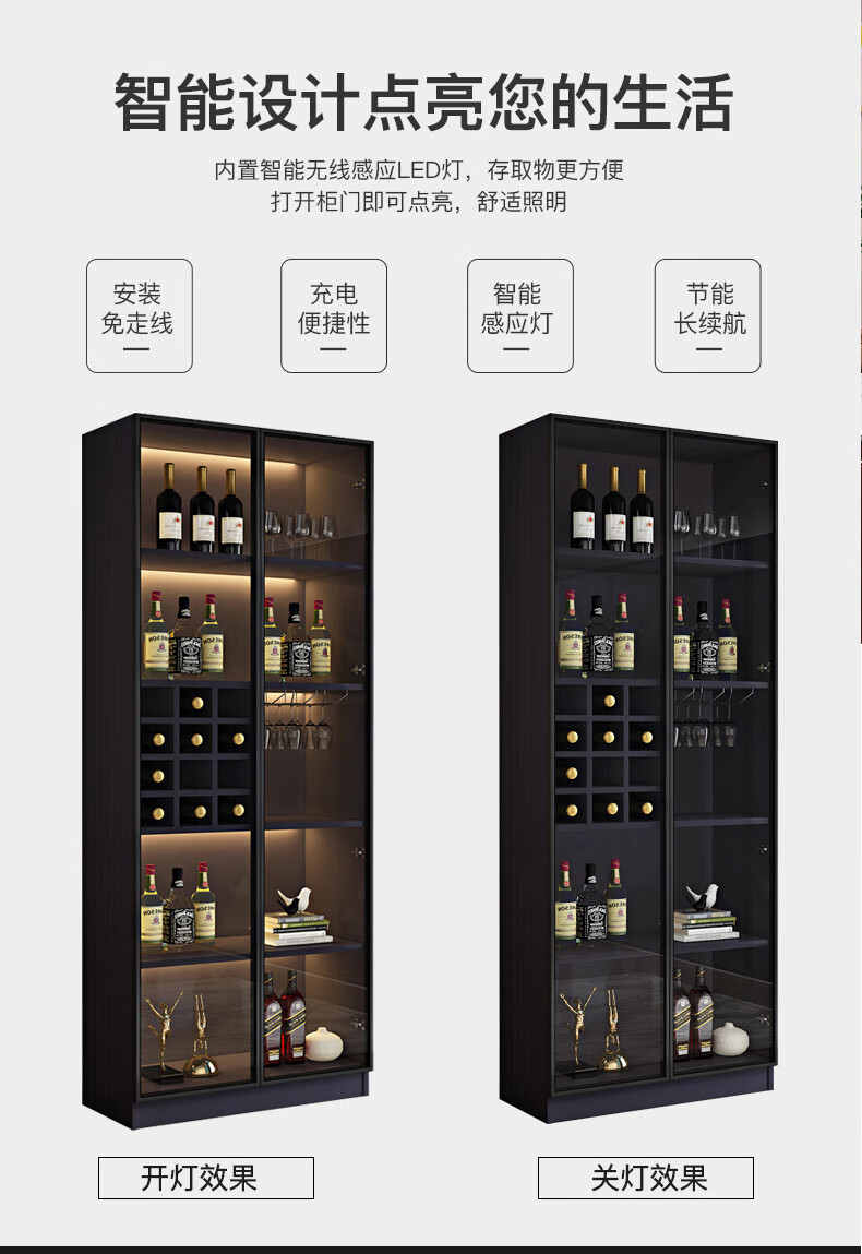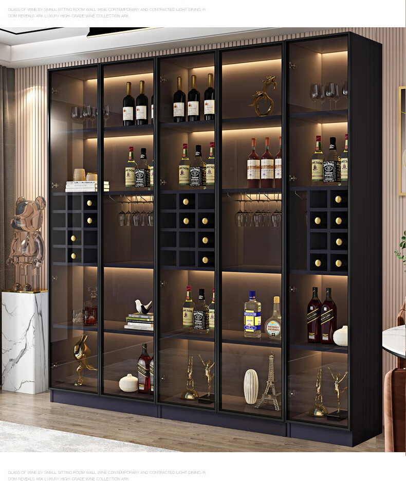 Zhong Zhang Gui Wine Cabinet Light Luxury Solid Wood Sideboard Glass Door Display Cabinet Home Integrated Wall Bookcase New Storage Customized Cabinet 60cm Healthy Particle Board Two-Door Black Comes with Sensor Light (Installation Included)