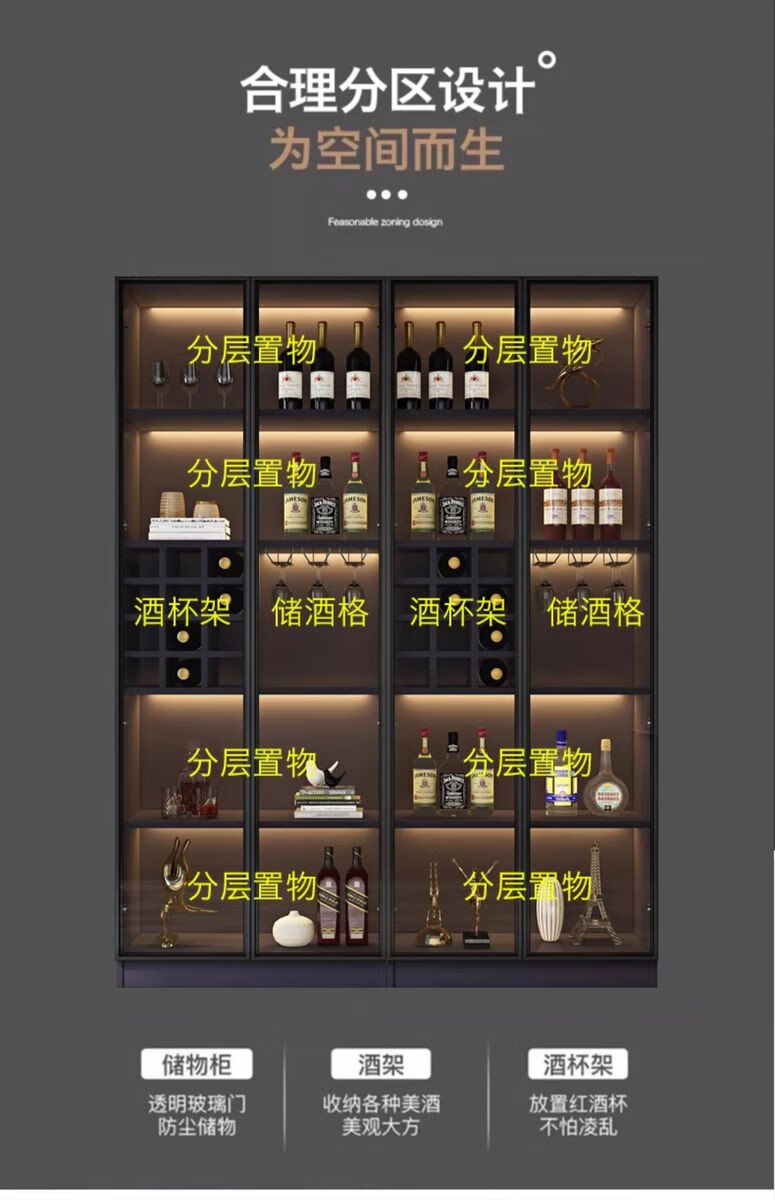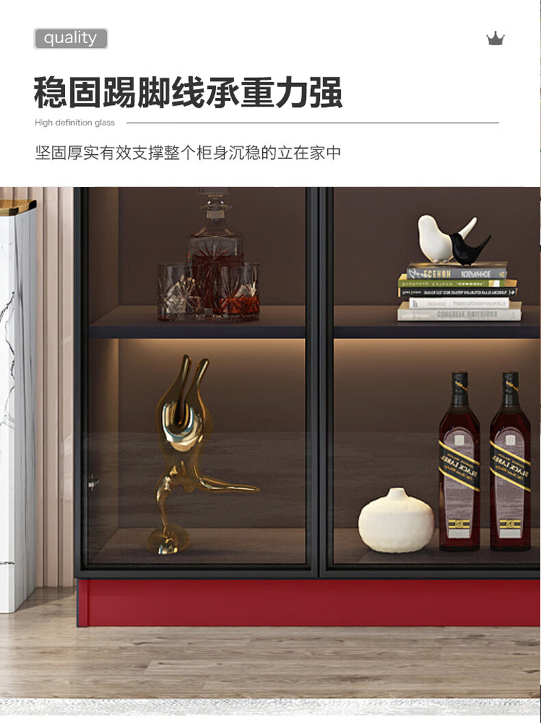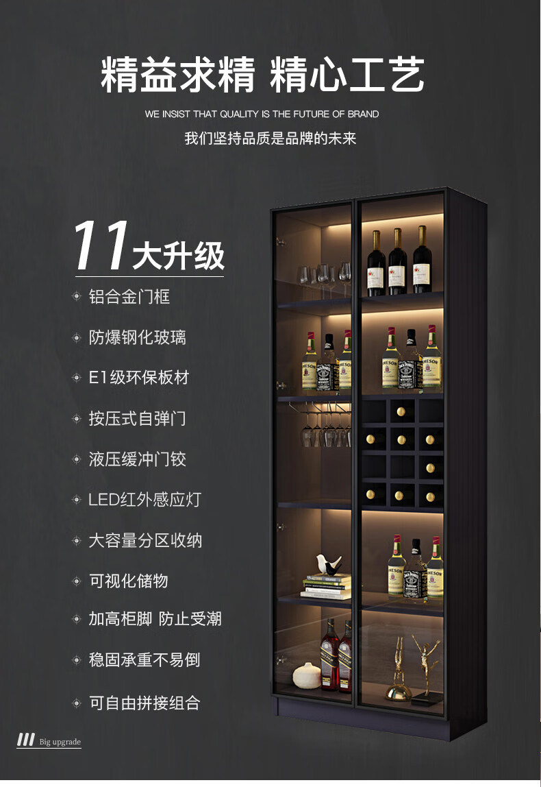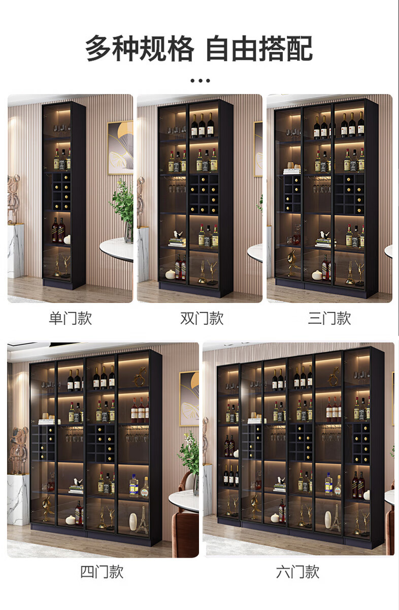 Zhong Zhang Gui Wine Cabinet Light Luxury Solid Wood Sideboard Glass Door Display Cabinet Home Integrated Wall Bookcase New Storage Customized Cabinet 60cm Healthy Particle Board Two-Door Black Comes with Sensor Light (Installation Included)