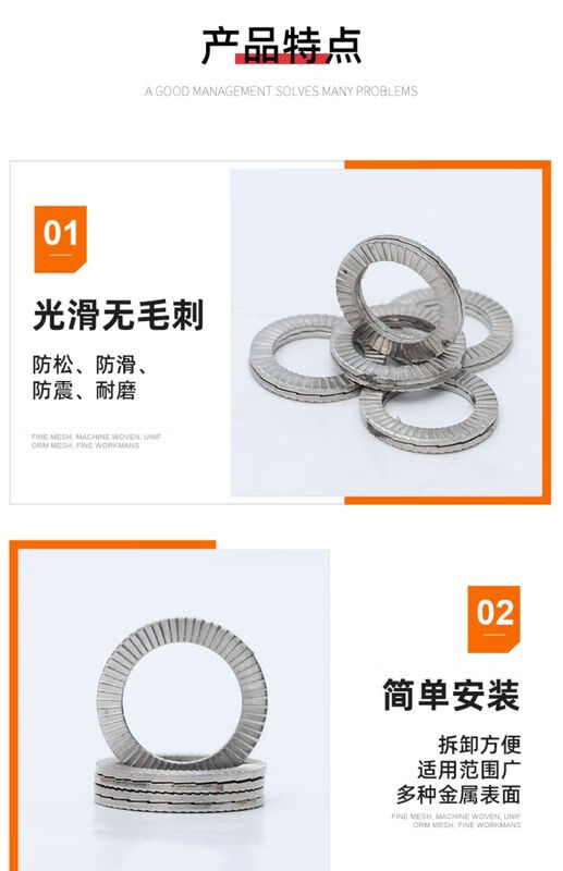 XMSJSUS304 stainless steel DIN25201 wedge-type double stack self-locking washer anti-vibration anti-slip gasket M3M68 M14NL14SS50 pair