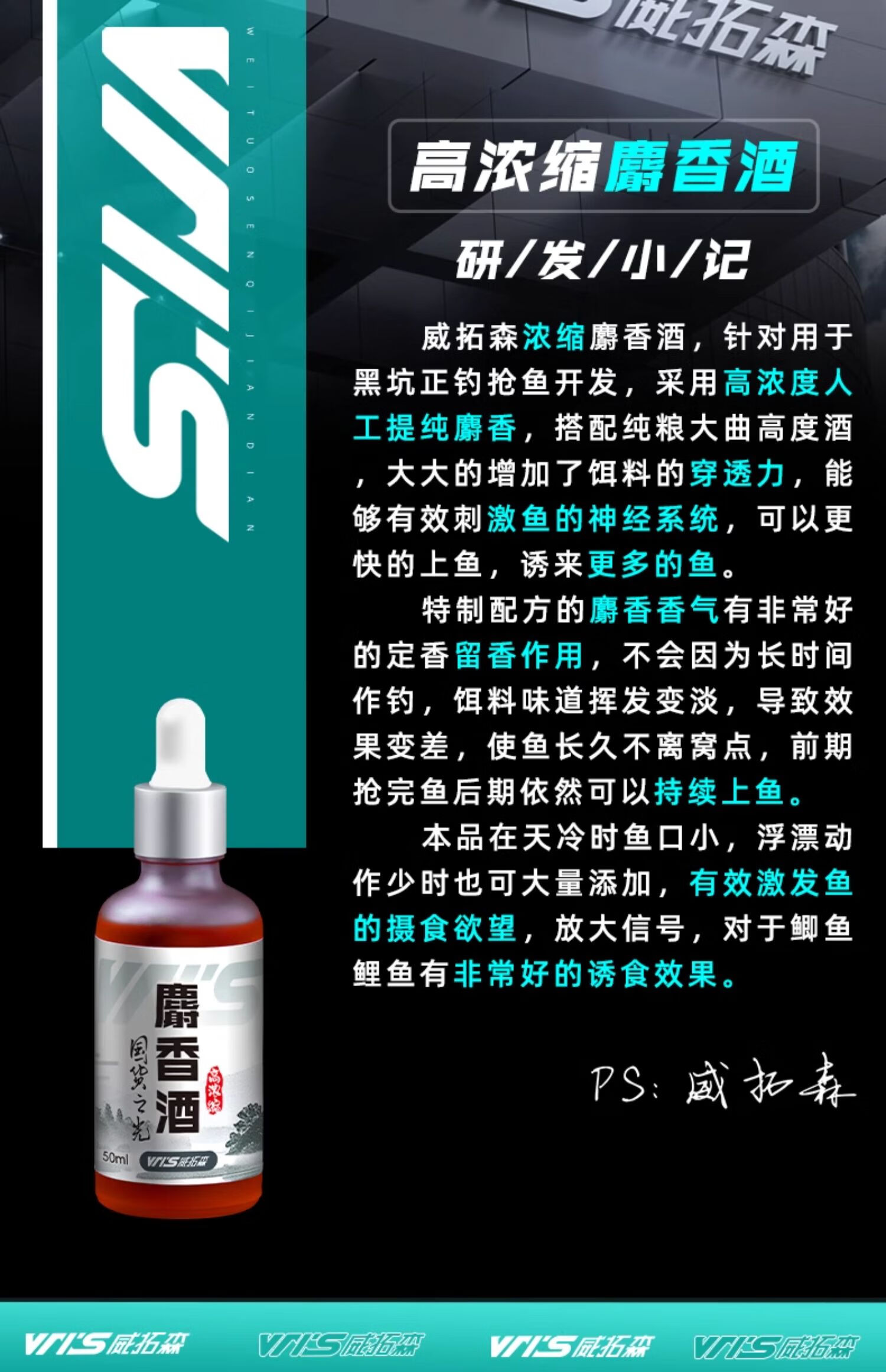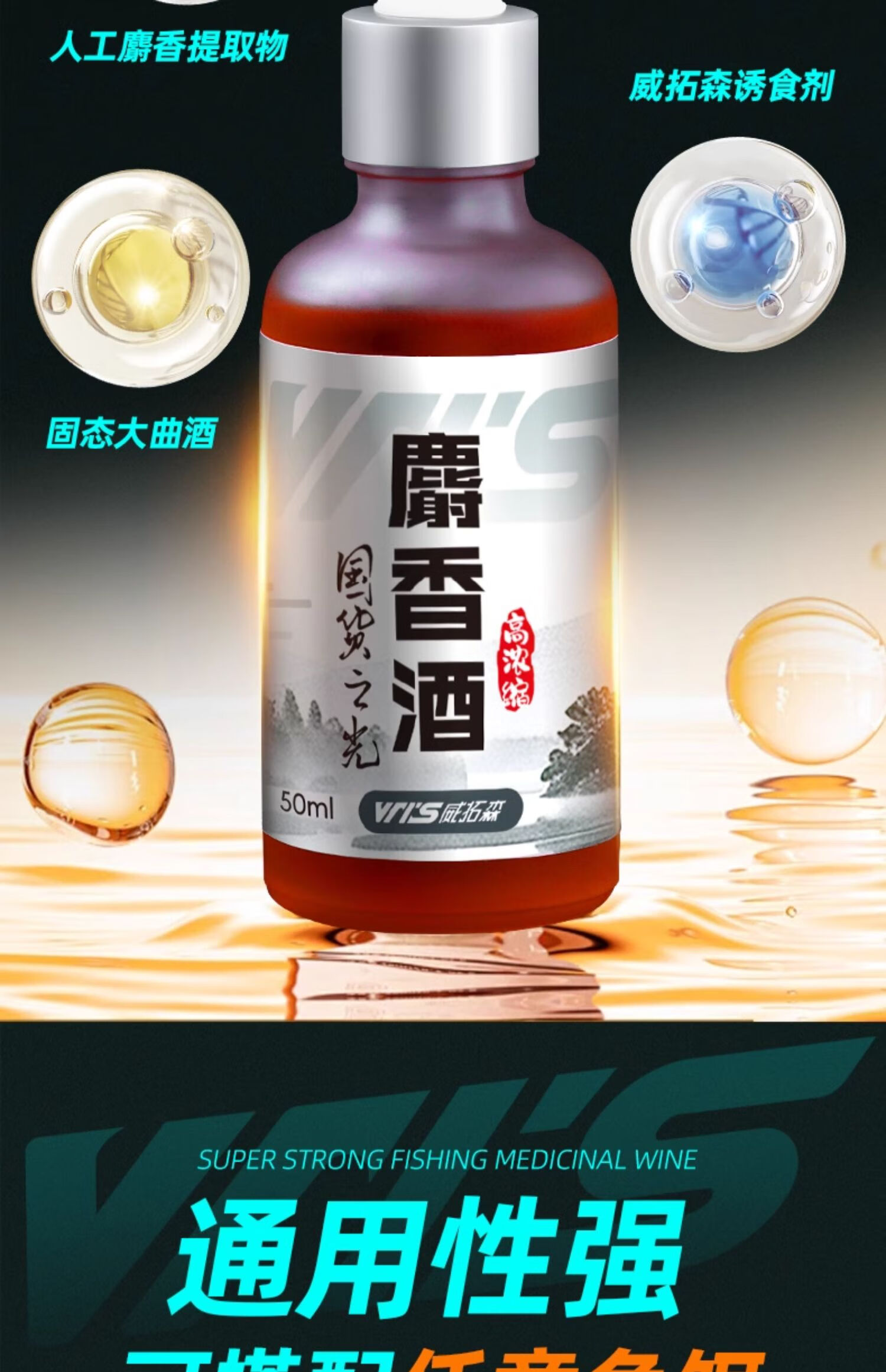 Weituosen plays good musk Chinese medicinal wine winter opening agent with long-lasting flavor, special light-mouthed crucian carp and carp nesting bait, highly concentrated musk wine 50ml, super penetration, promotes feeding and opening