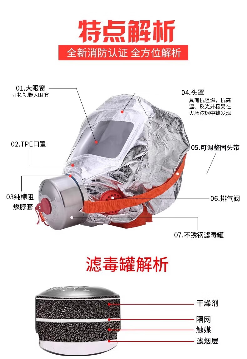 Jingxi Selection Fire Mask Anti-Smoke Anti-Poison Fire Mask Hotel 3C Certified Household Fire Escape Mask Respirator TZL30 3C Fire Mask 20 pieces