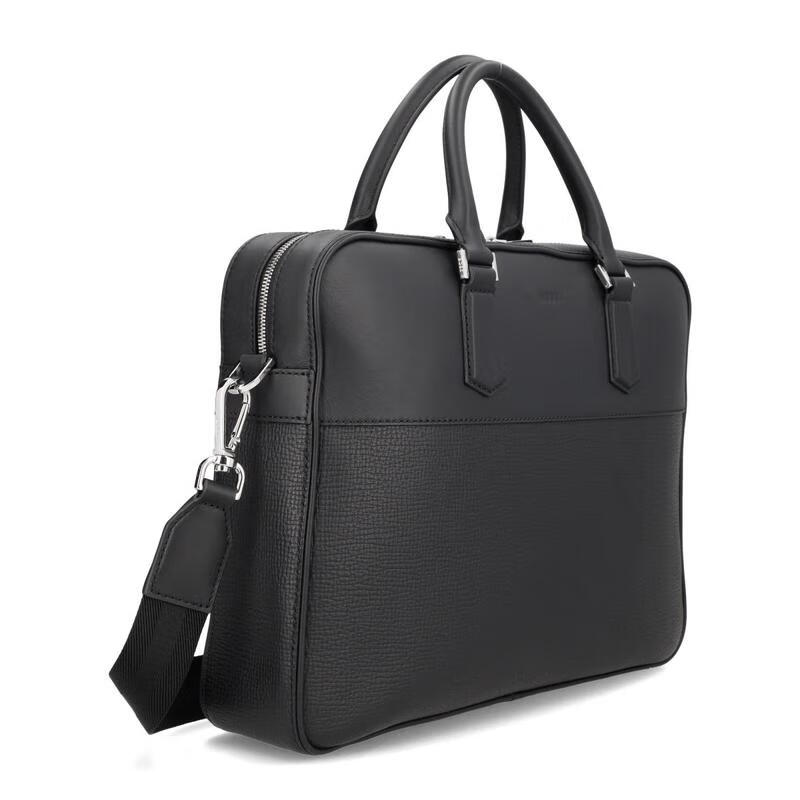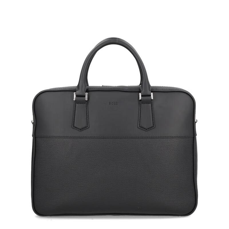 BOSS men's briefcase, large capacity, portable, lightweight, scratch-resistant, wear-resistant, black leather material, textured surface, black TU
