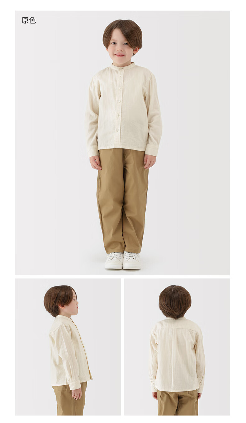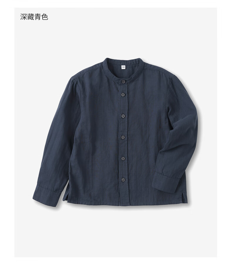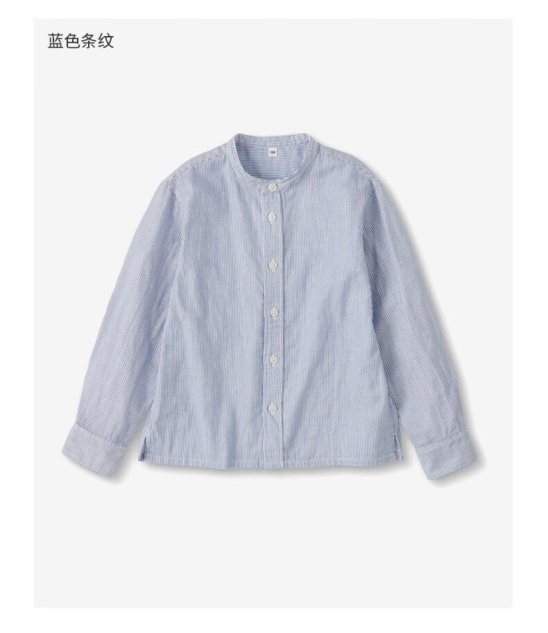 MUJI big children's double-layer gauze stand-up collar long-sleeved shirt children's shirt boys and girls children's clothing spring 26 blue stripes 150 /76A