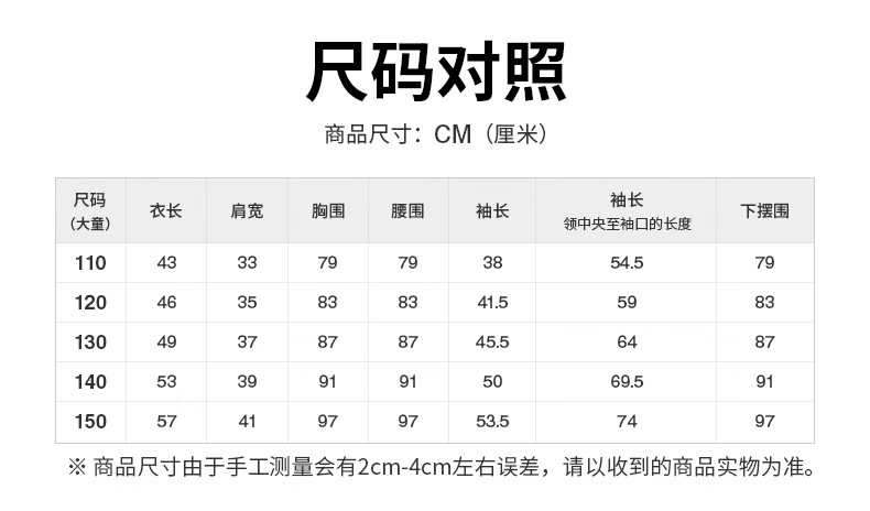 China (cm) 160-165/84-86 165-170 / 88-90 167-172 / 92-96 168-173 / 98-102 170-176 / 106-110