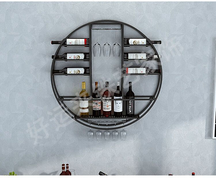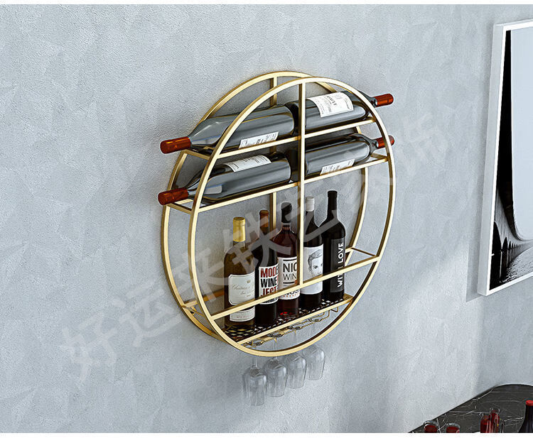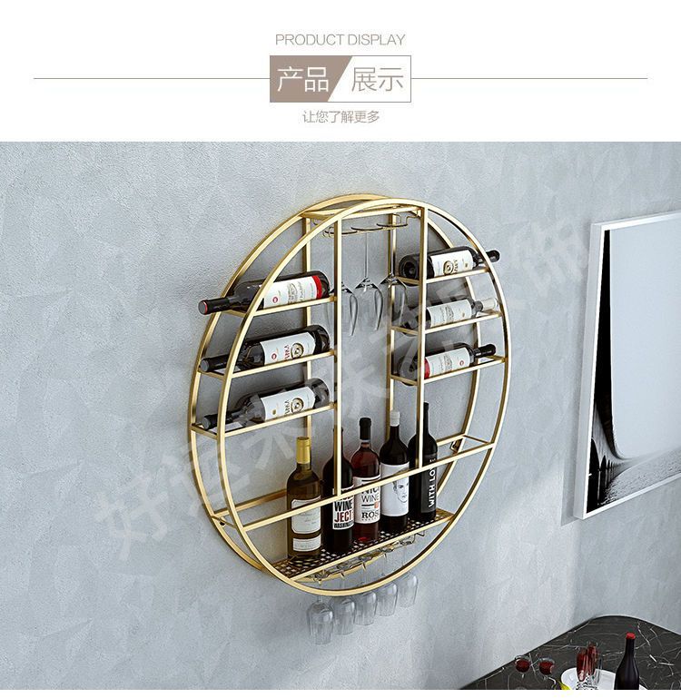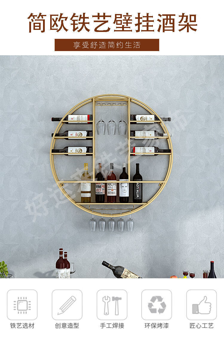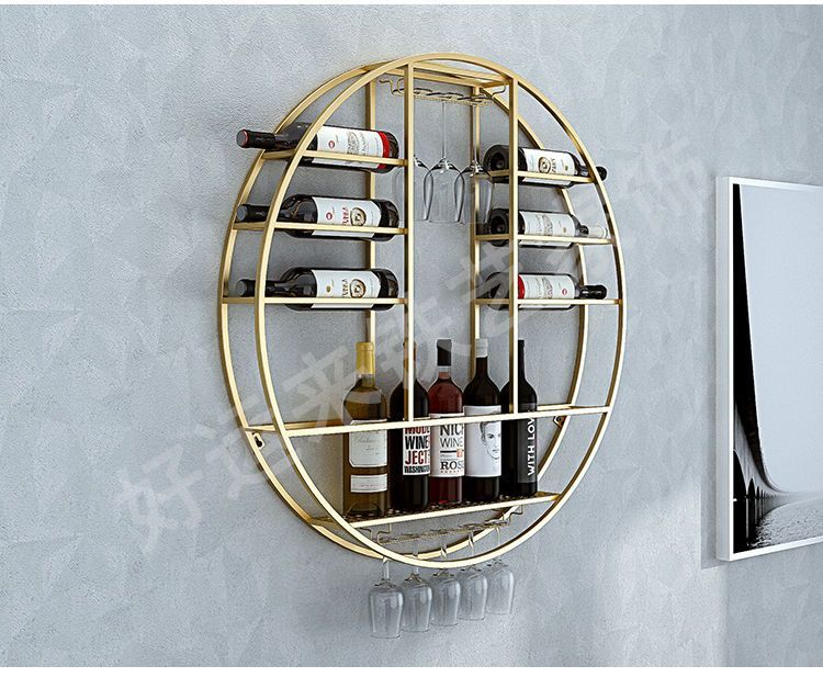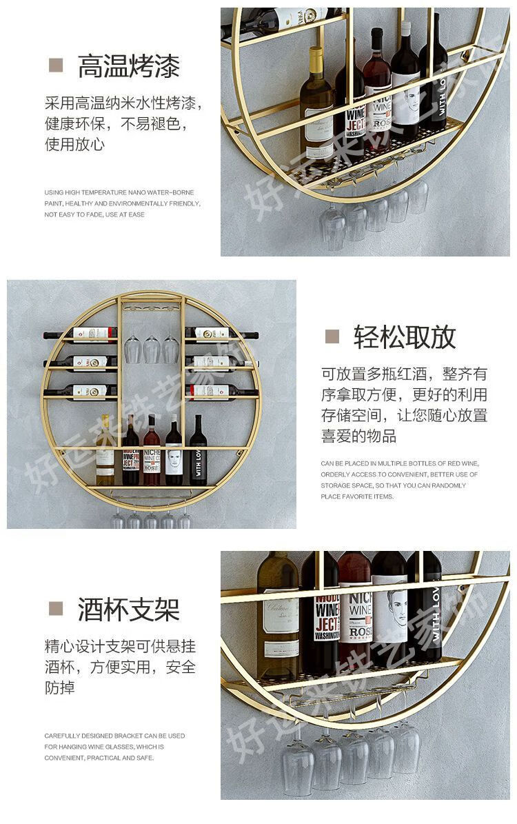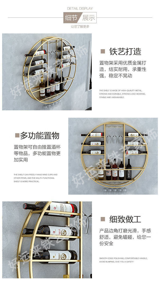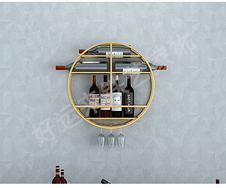 Middle shopkeeper European bar wine cabinet wall-mounted red wine household wine glass rack small apartment grape iron wine rack 90-90-11 gold