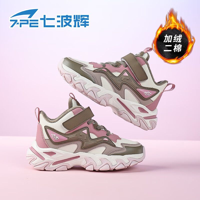 Qibohui (7-PE) Girls' Velvet Warm Second Cotton Shoes 2026 Winter New Girls Khaki Pink Medium and Large Children's Children's Sports Shoes Second Cotton Black/Light Pink 33
