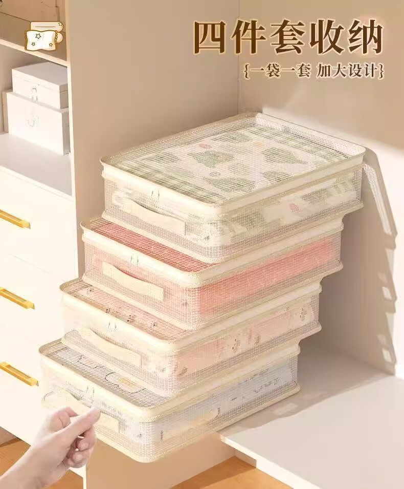 Juyi mesh four-piece storage bag storage bag large capacity moisture-proof clothing quilt bed sheet quilt cover storage artifact 6 pieces can hold four-piece sets/air-conditioning quilts/baby quilts/blankets