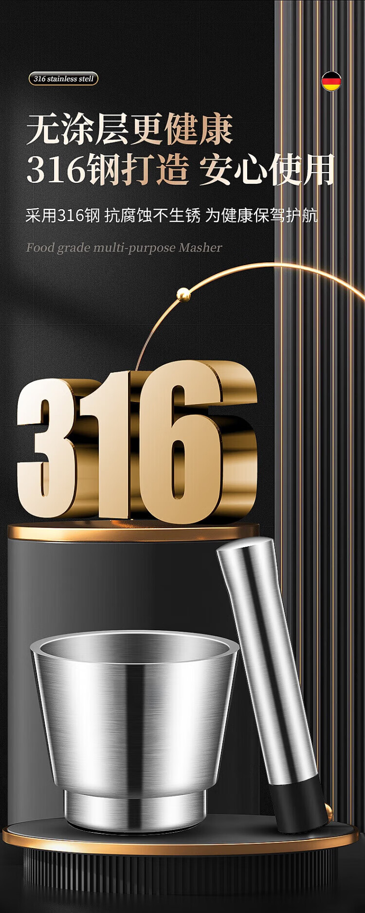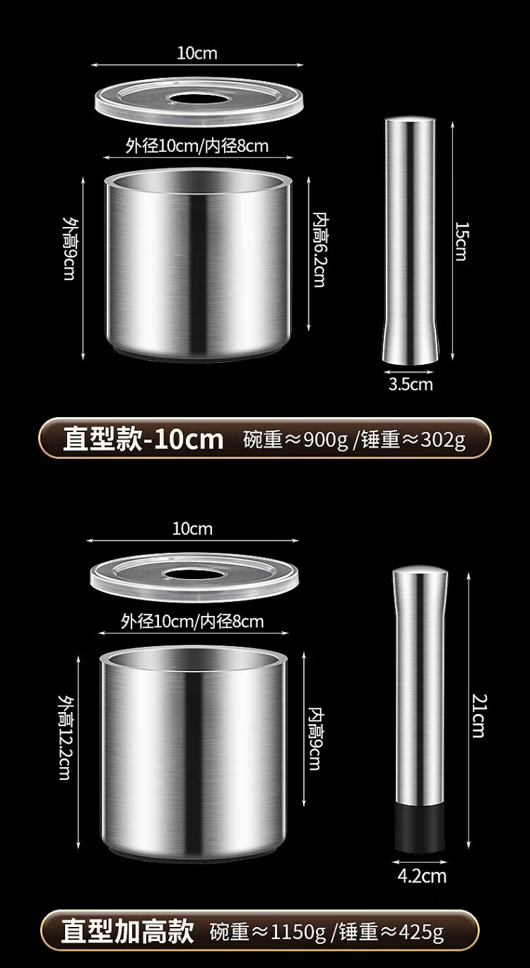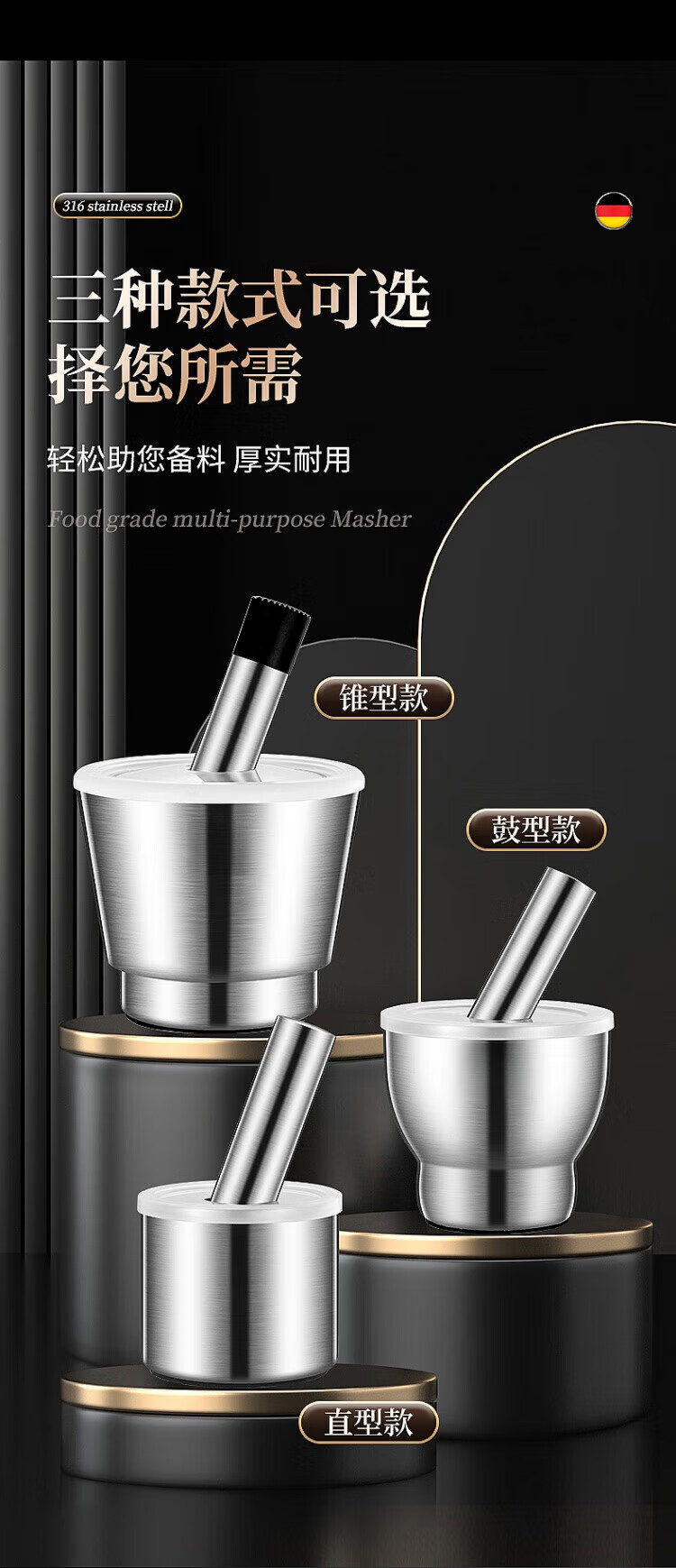 Qiao Bo Lai 316 stainless steel garlic pounder medicine grinder stone mortar mashing jar mortar garlic mortar 316 stainless steel straight 10CM garlic pounder