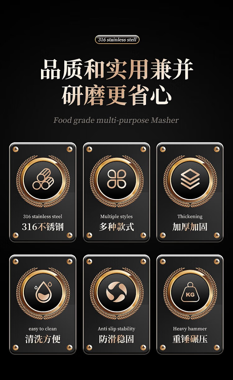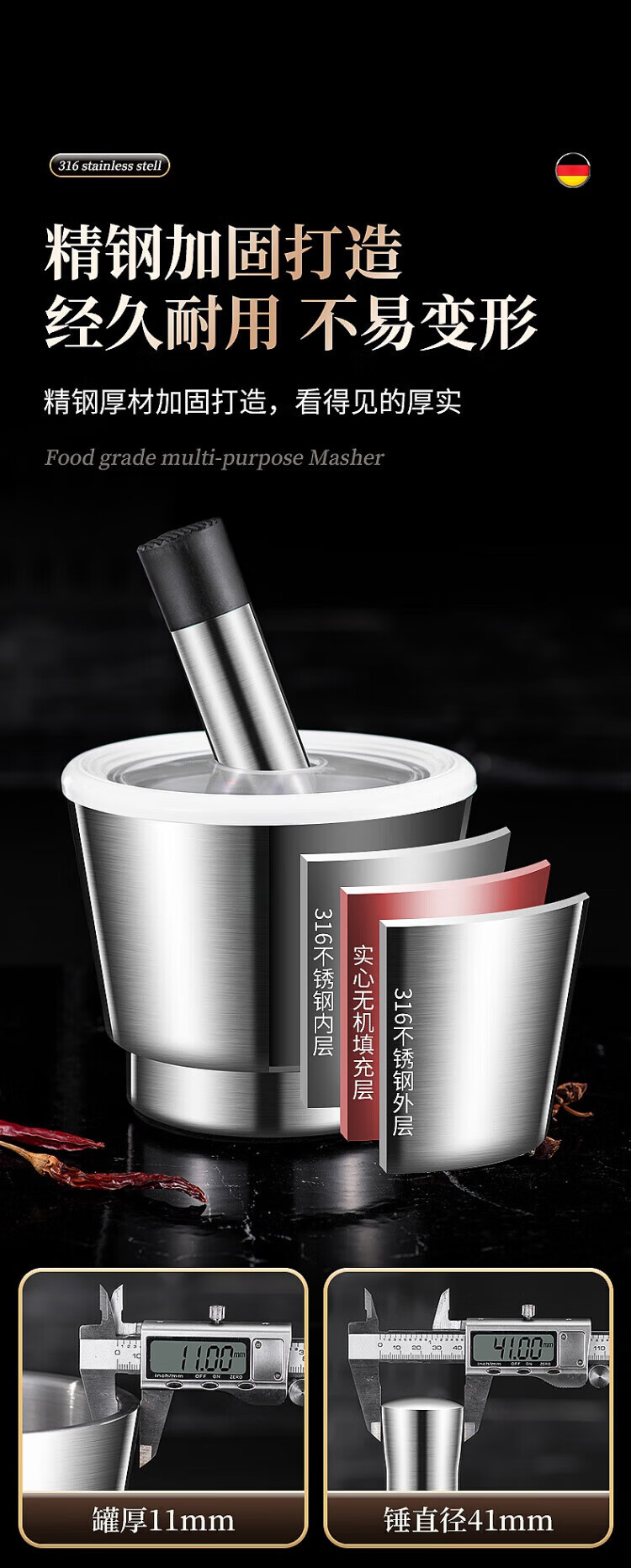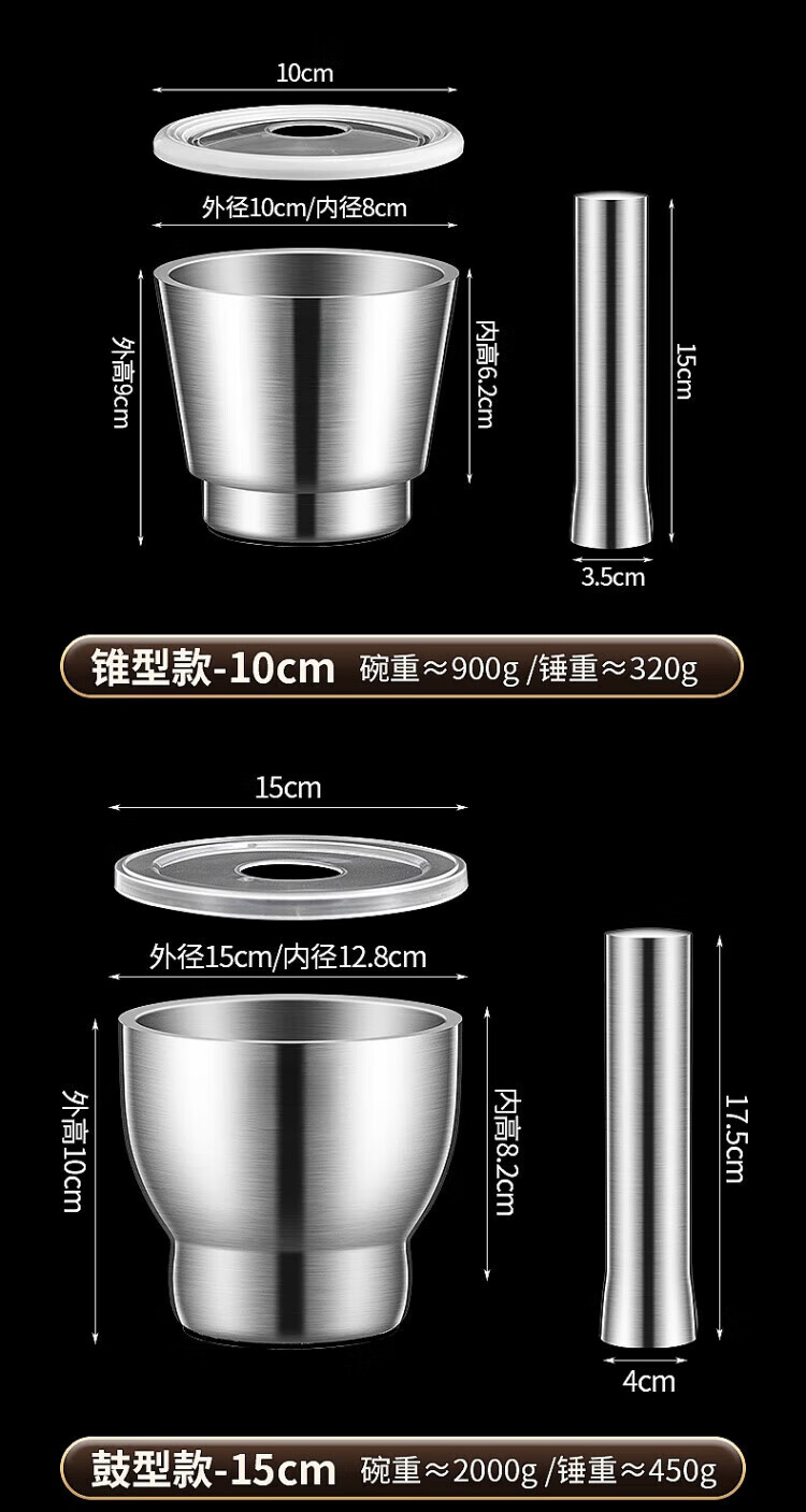 Qiao Bo Lai 316 stainless steel garlic pounder medicine grinder stone mortar mashing jar mortar garlic mortar 316 stainless steel straight 10CM garlic pounder