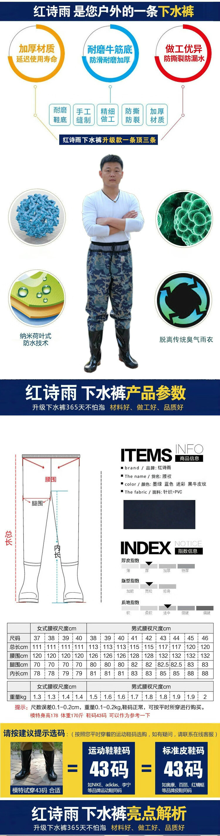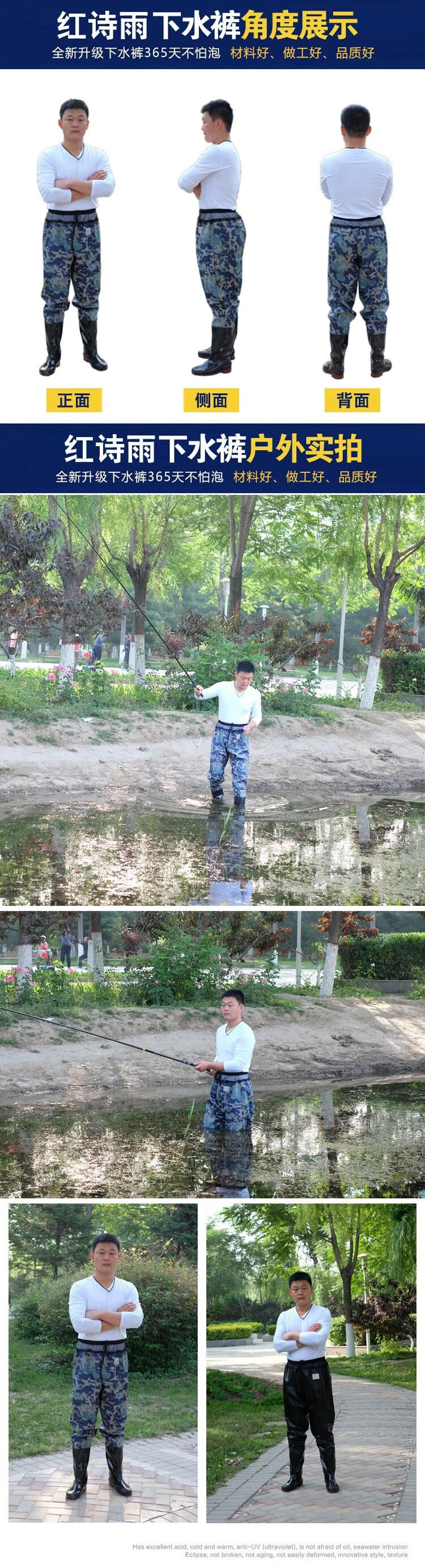 Zailu PVC waders, half-length fish wading pants, thickened camouflage fishing pants, camouflage waist pants 47 47