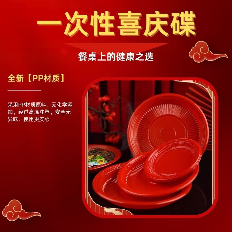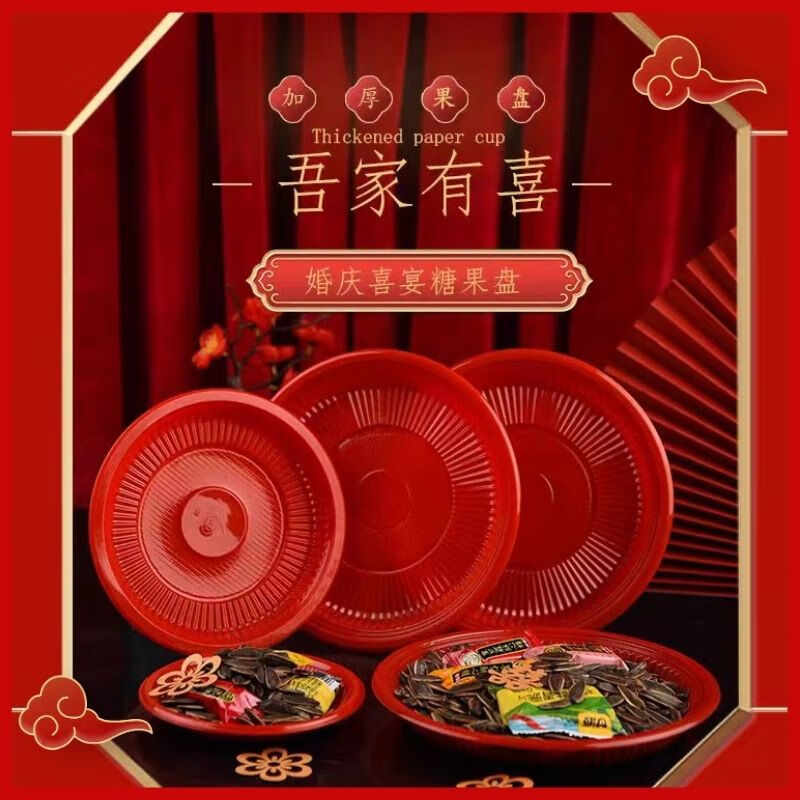 Disposable dish red festive dish thickened plastic dish red wedding food grade dish fruit dish 9 inch festive dish 20 pcs