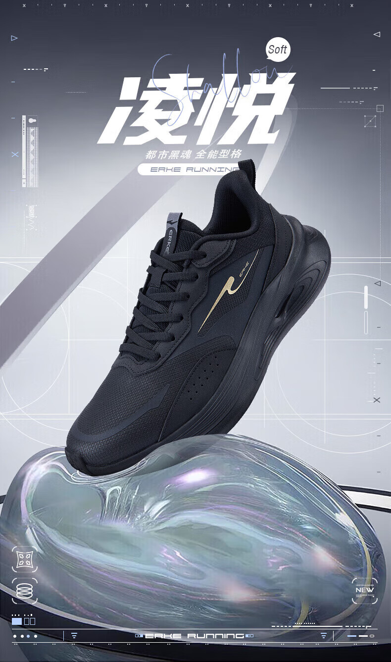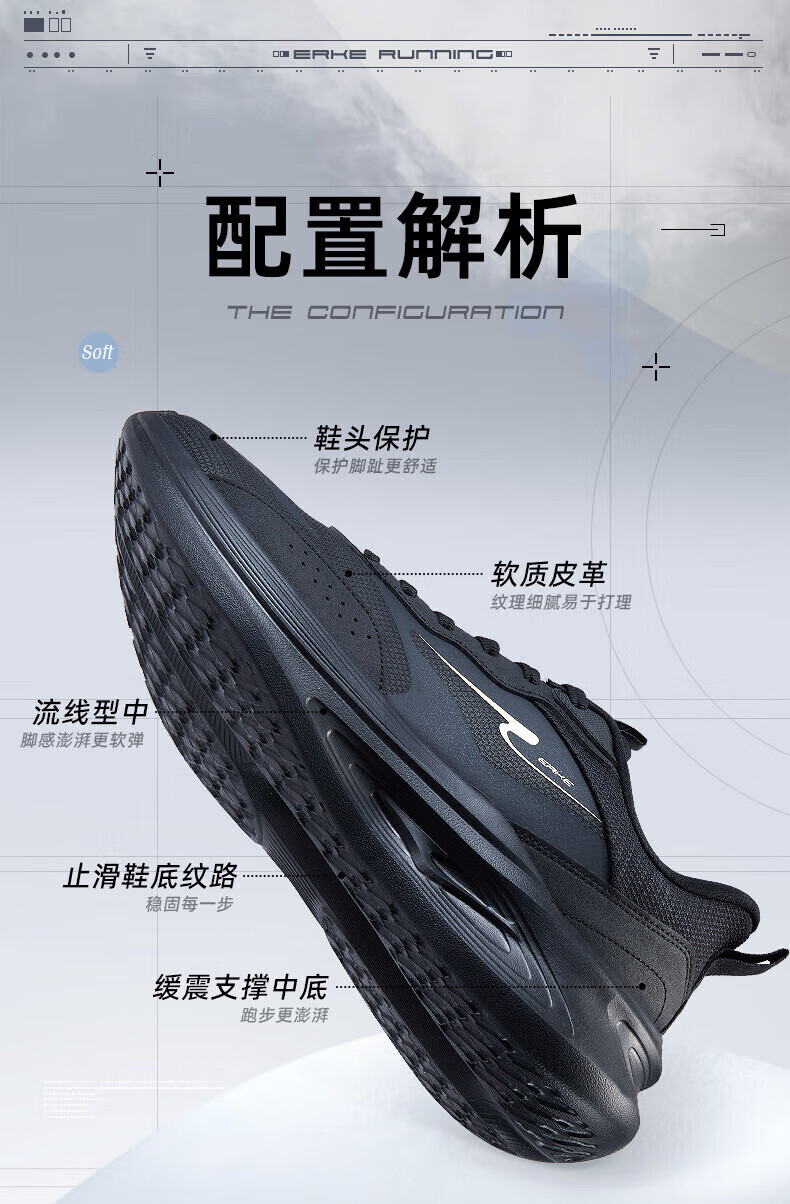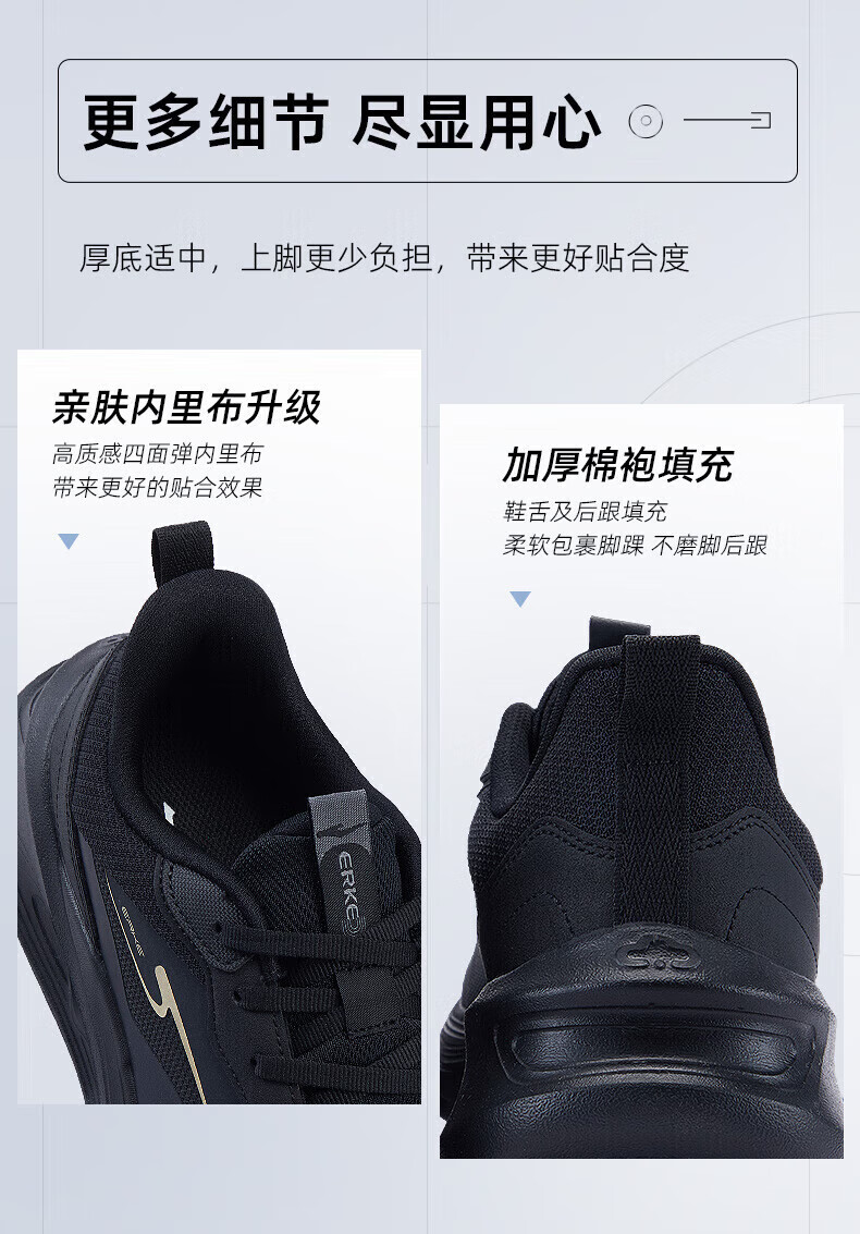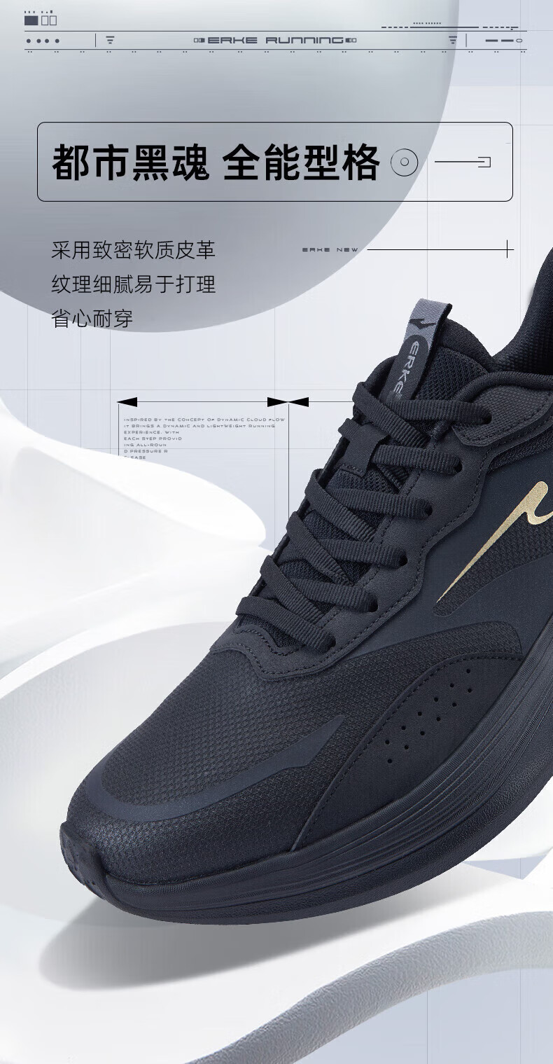 Hongxing Erke (ERKE) Men's Shoes 2025 Winter Warm Running Shoes Men's Waterproof Leather Fashion Casual Shoes Soft Sole Shock Absorption Black 42 High