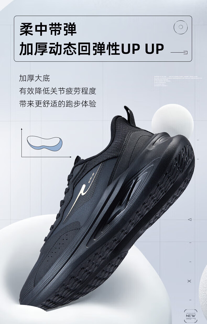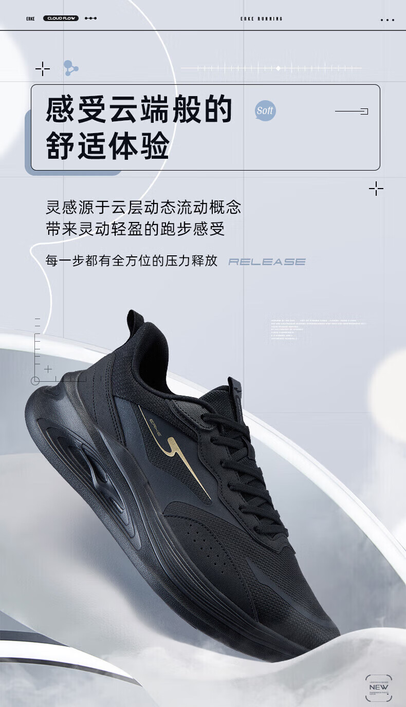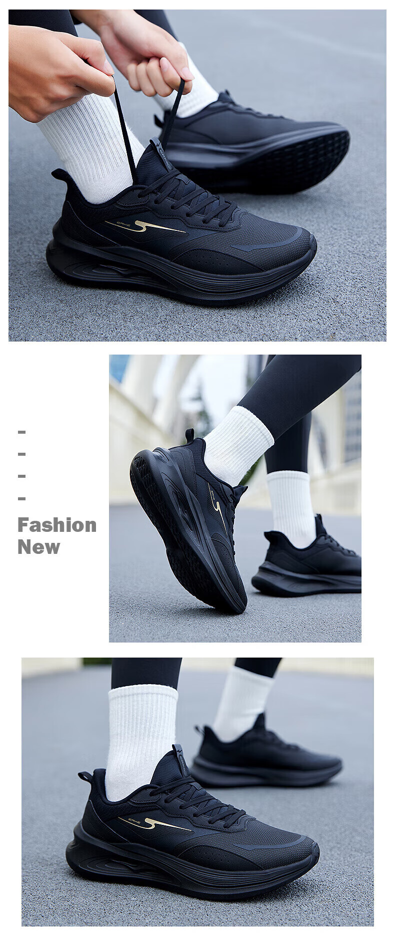 Hongxing Erke (ERKE) Men's Shoes 2025 Winter Warm Running Shoes Men's Waterproof Leather Fashion Casual Shoes Soft Sole Shock Absorption Black 42 High