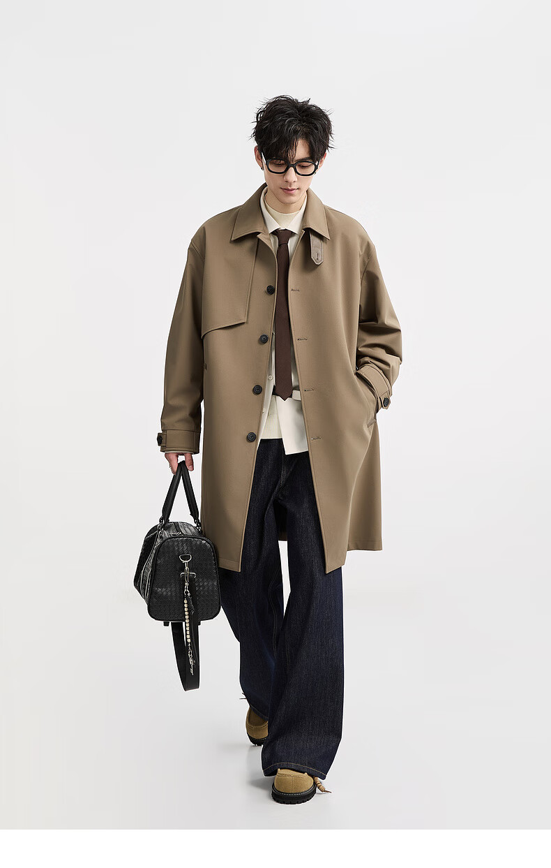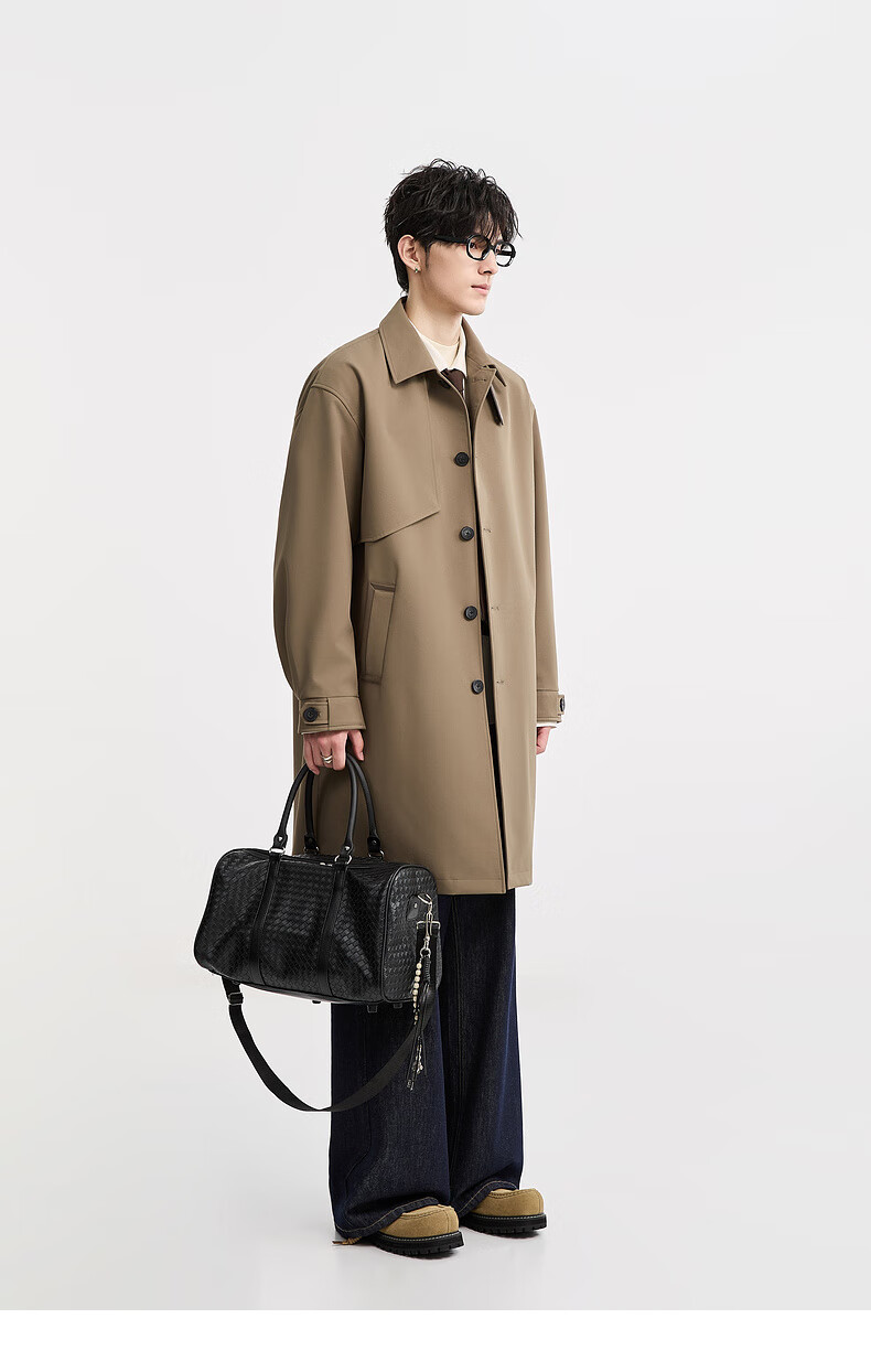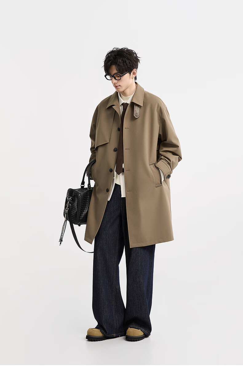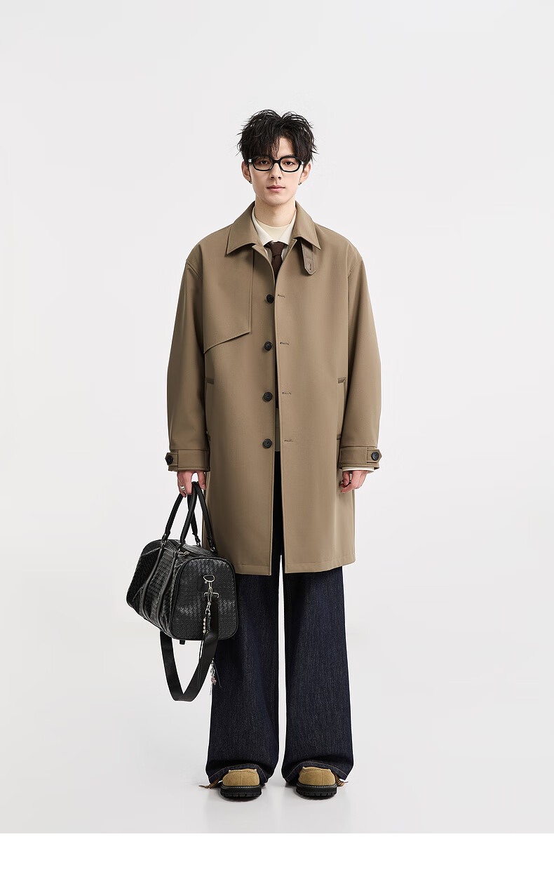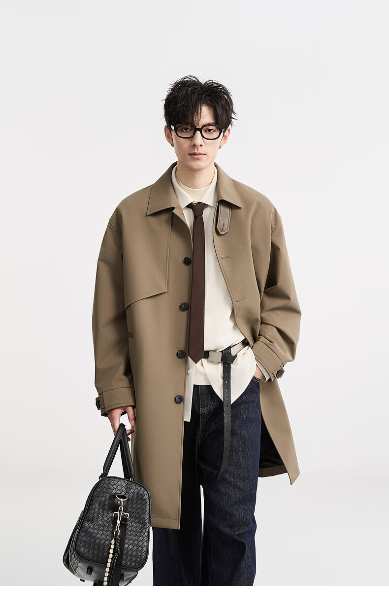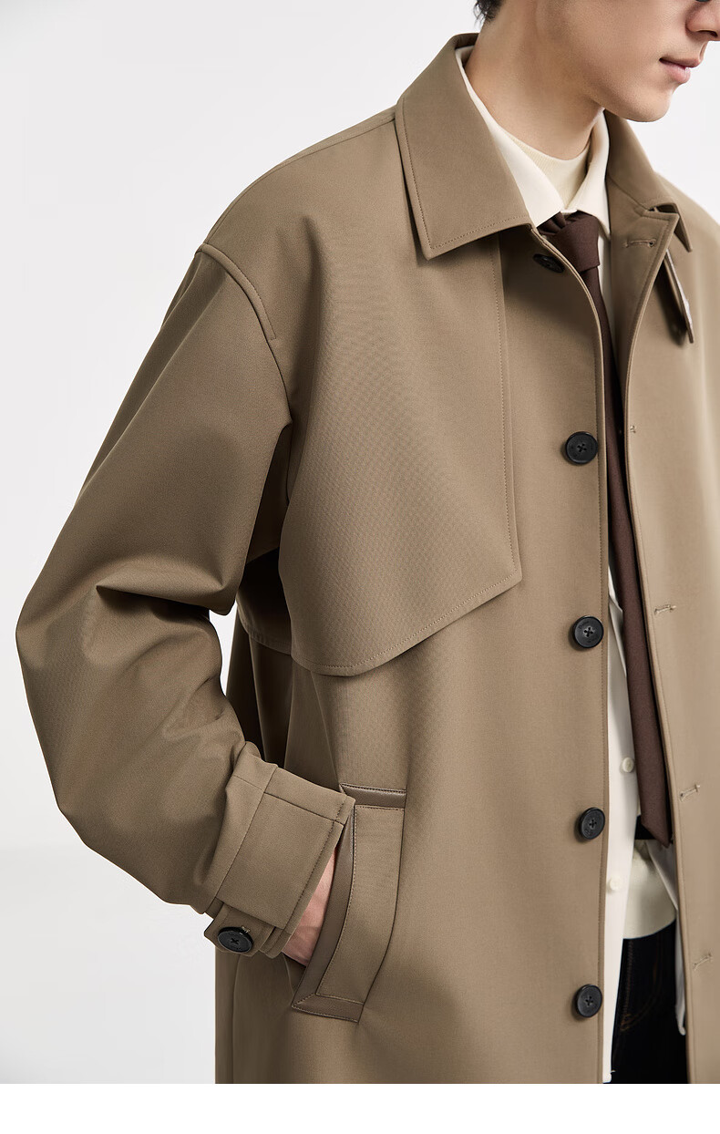 Piaget Zall goose down lining Marken lapel mid-length windbreaker men's 2025 autumn and winter new British commuter coat for men brown graphene / goose down lining removable L (175)