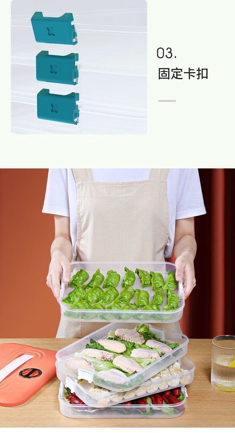 Jidaocook dumpling box large-capacity partitioned refrigerator special storage and organization kitchen cold quick-frozen wonton sealed storage crisper single layer with lid - holds about 40 dumplings apple green non-stick bottom anti-freeze cracking