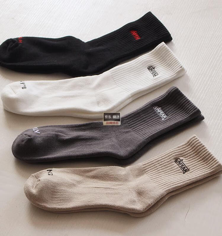 DY Japanese imported brand socks men's mid-calf autumn and winter thickened terry towel socks cotton trendy embroidered black basketball socks black 4 pairs one size fits all sweat-absorbent stockings 38-46 yards