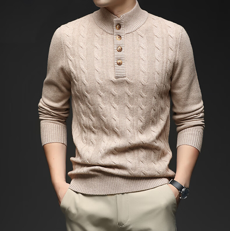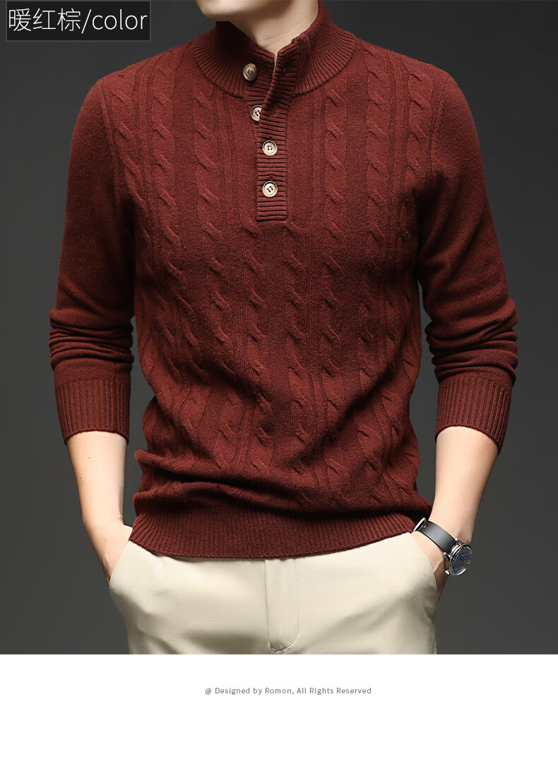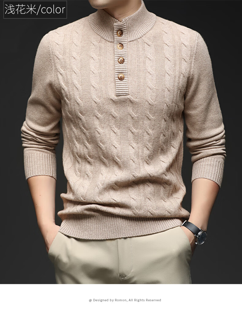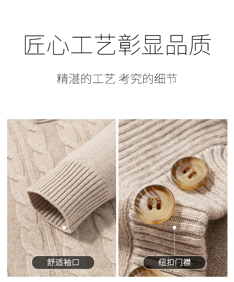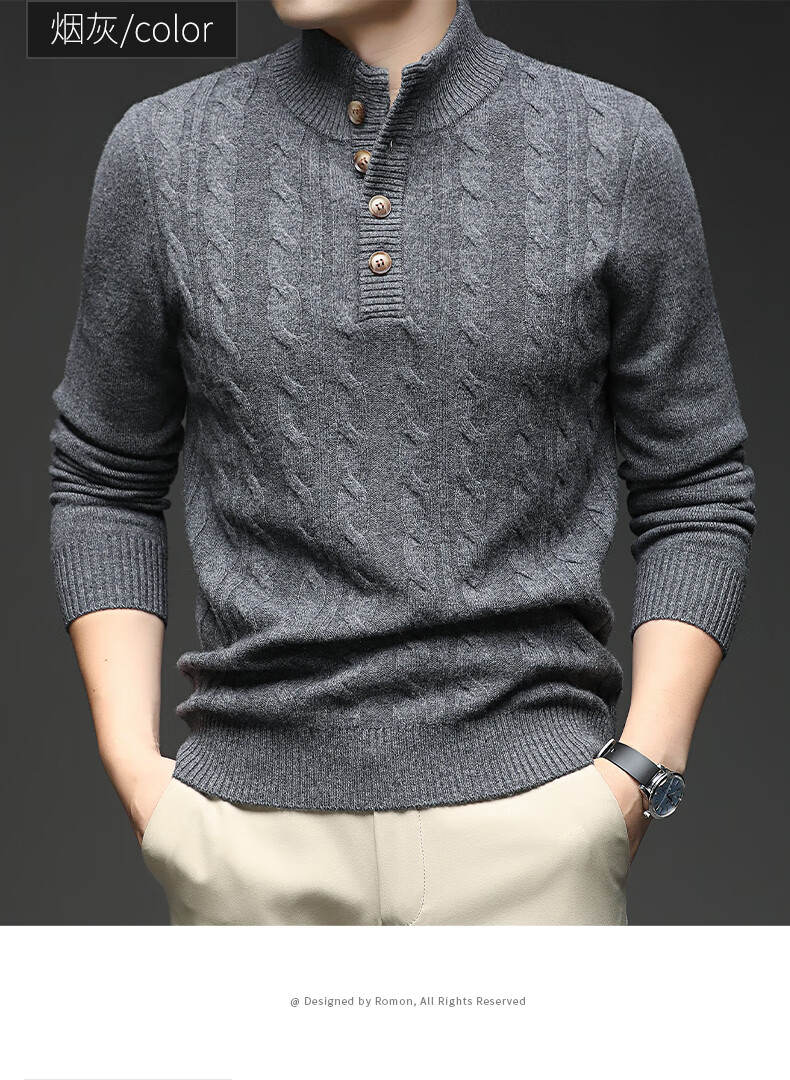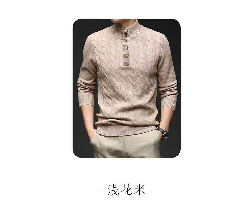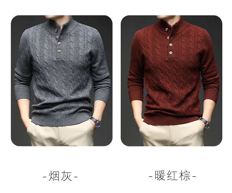 Pierre Cardin high-end cashmere, stand-up collar and cardigan men's autumn and winter thickened warm knitted sweater base layer smoke gray L Recommended weight 120-140Jin Jin equals 0.5 kg