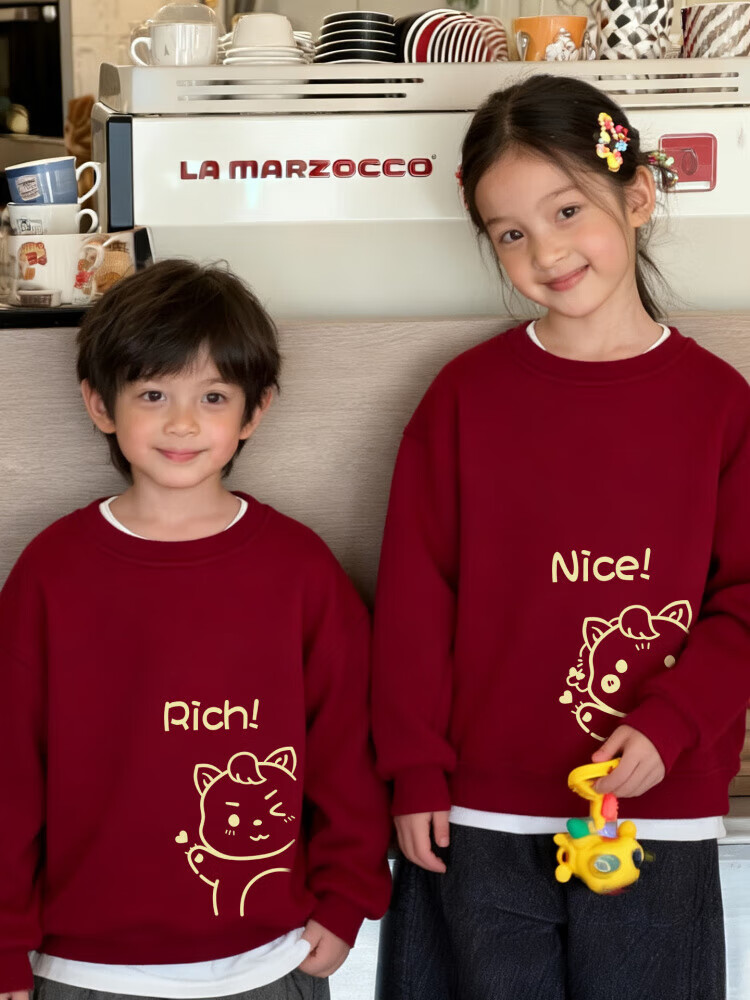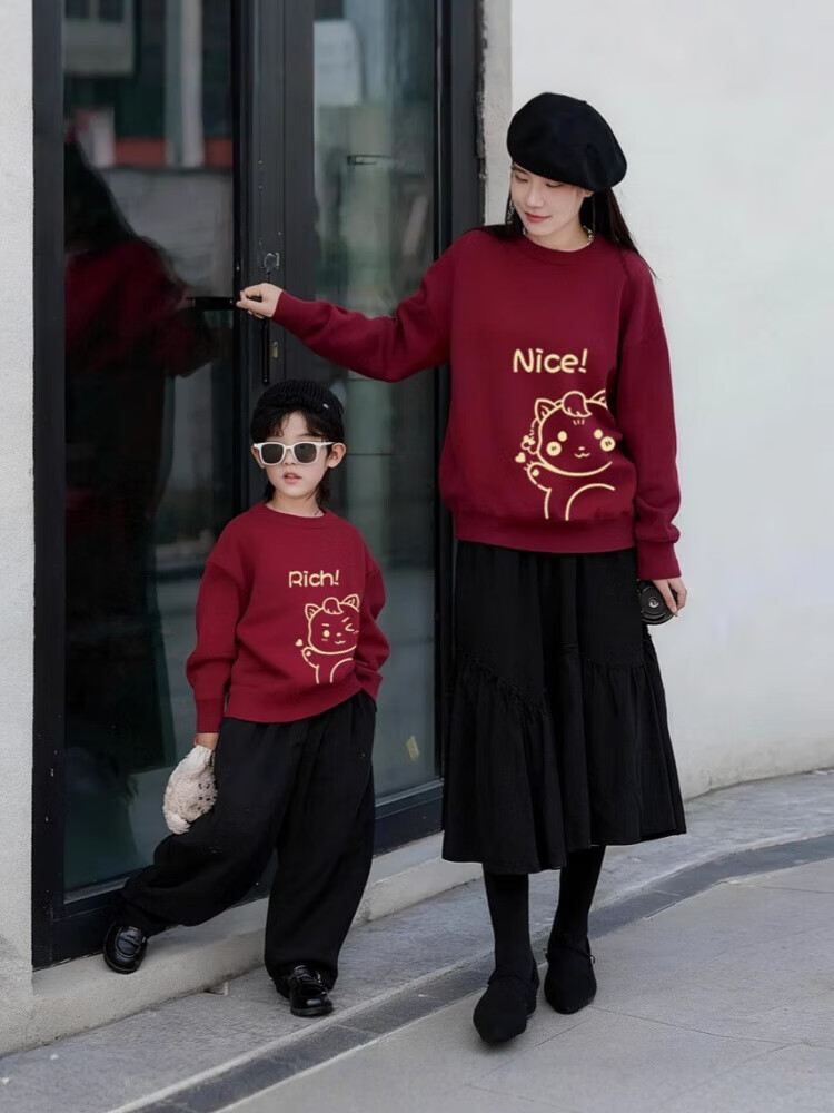 Modal parent-child clothing for a family of three or four red mother-daughter clothing New Year's greetings clothing children's Year of the Horse sweatshirt animal year family clothing round neck thin red 130 baby boy 45-55Jin Jin is equal to 0.5 kg