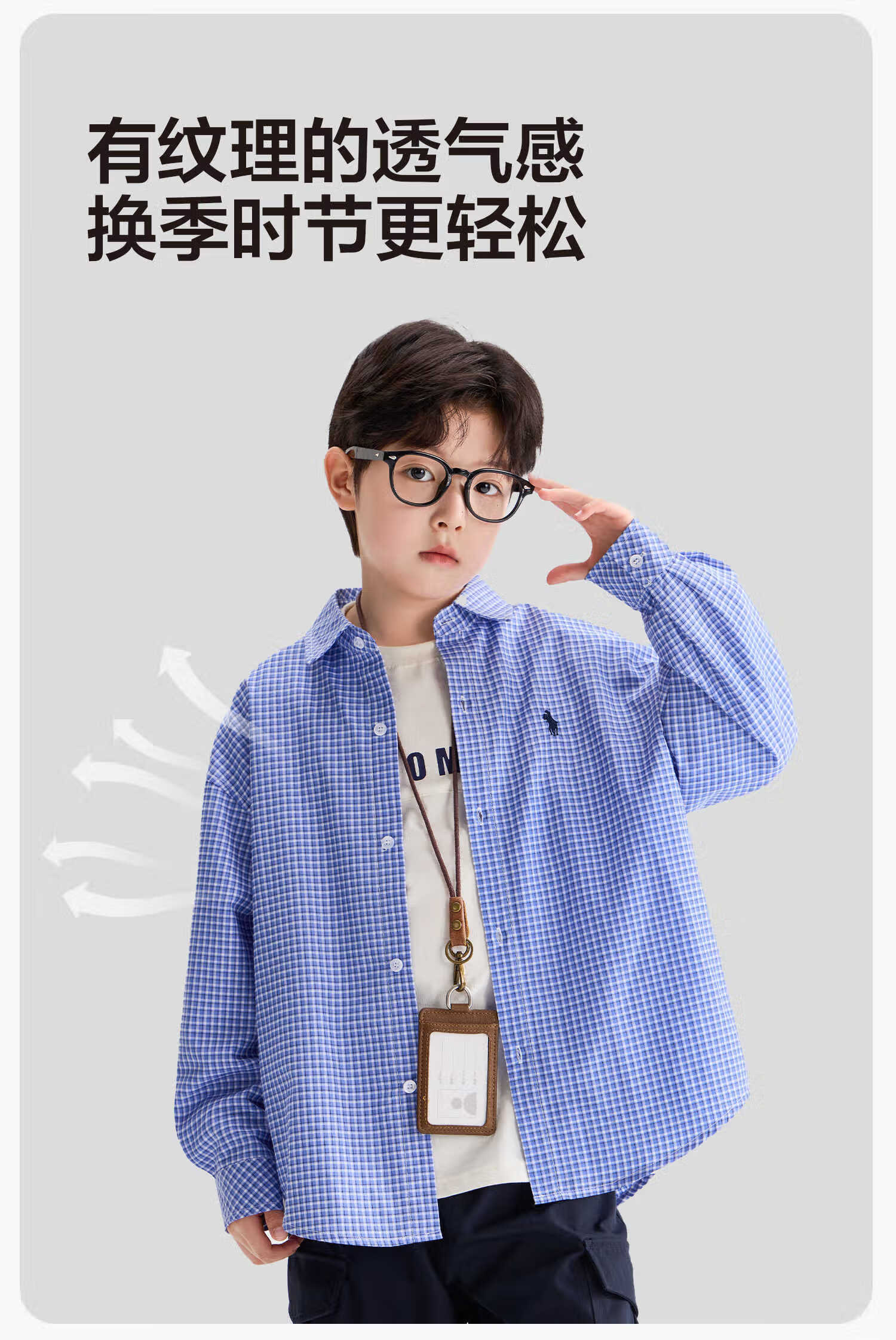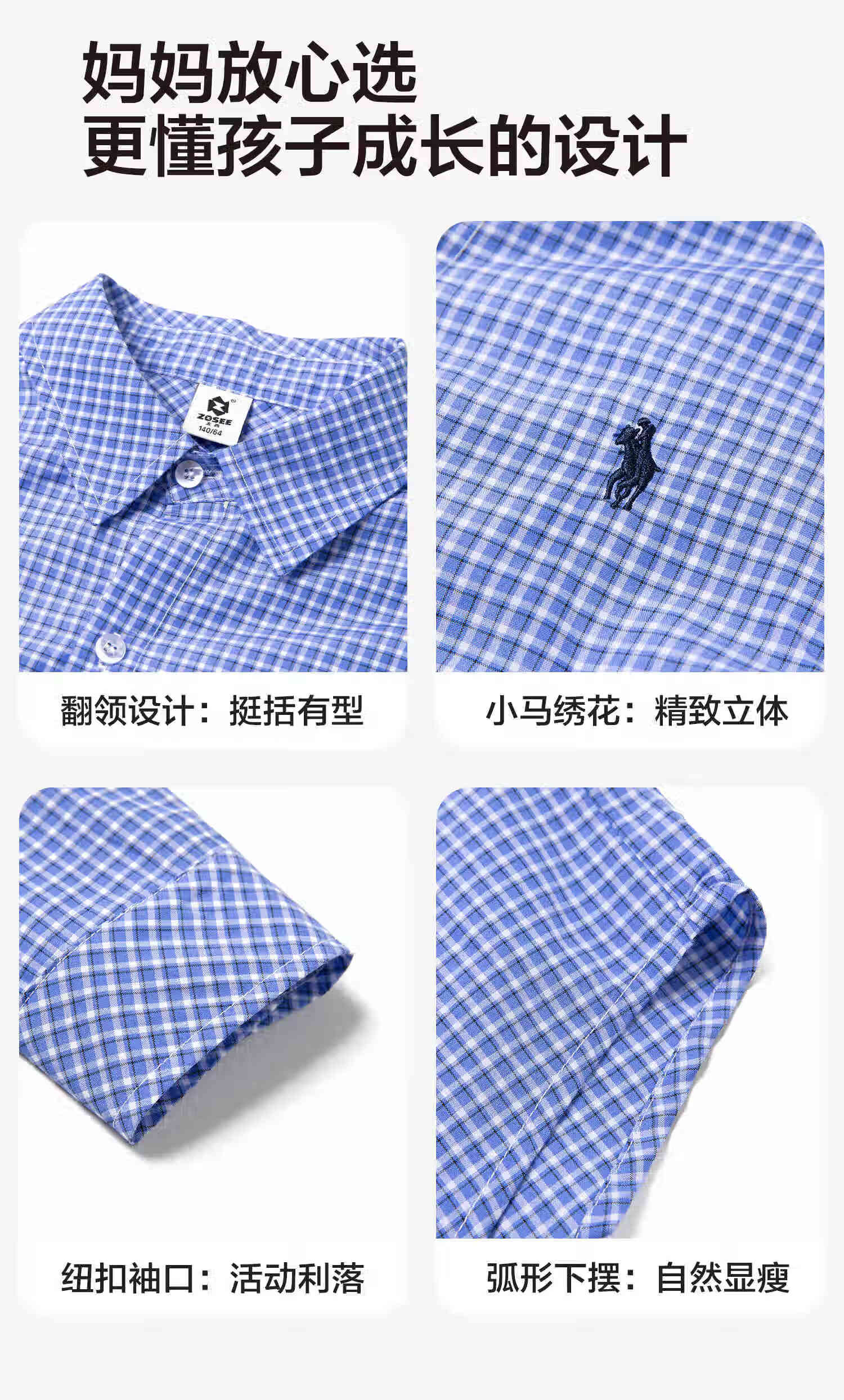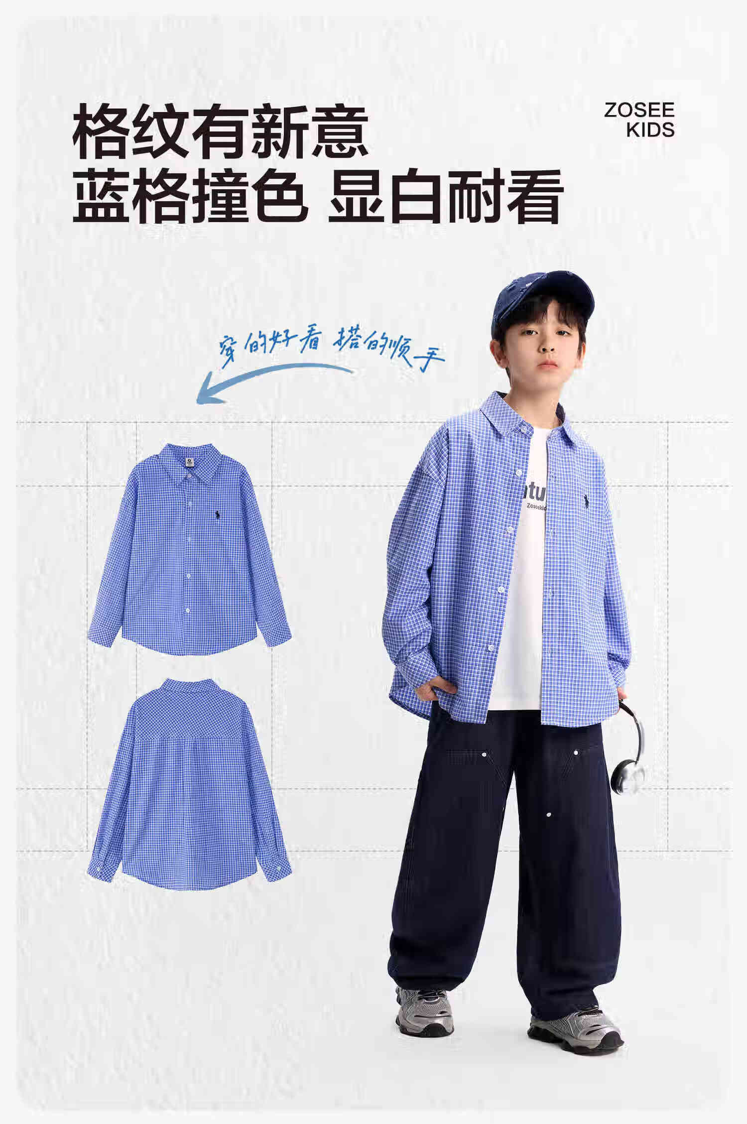 Zuoxi children's clothing boys plaid shirt spring and autumn 2026 new style pony embroidered long-sleeved shirt western style children's inner wear blue 130 cm