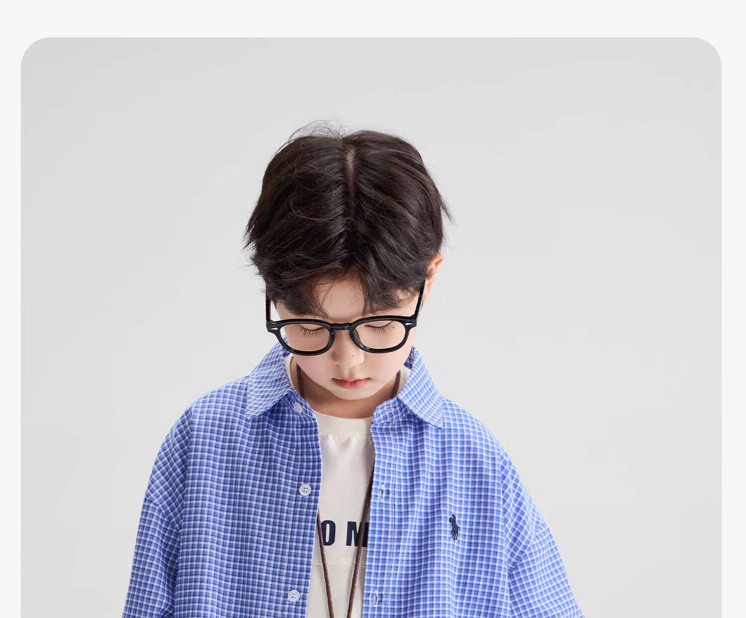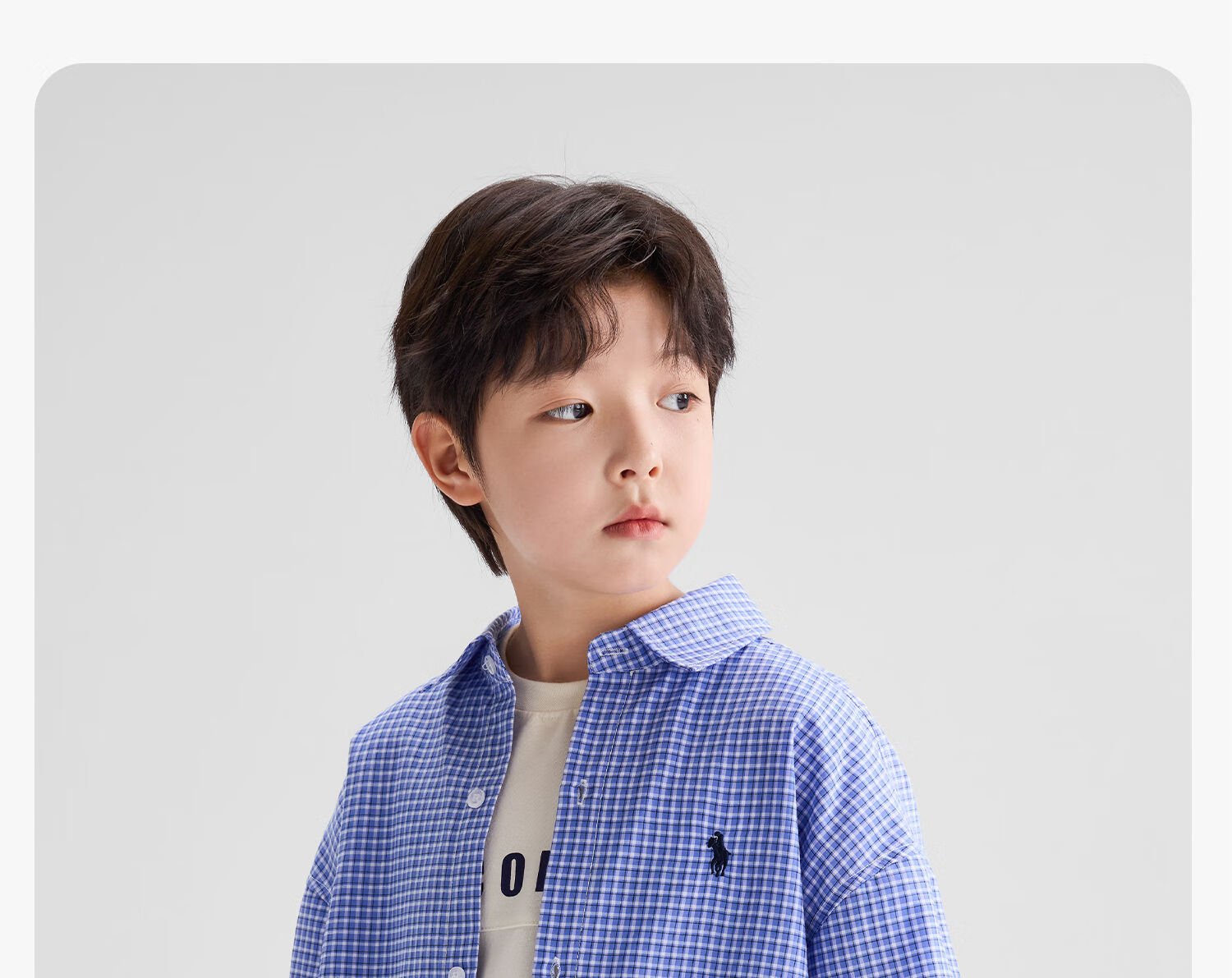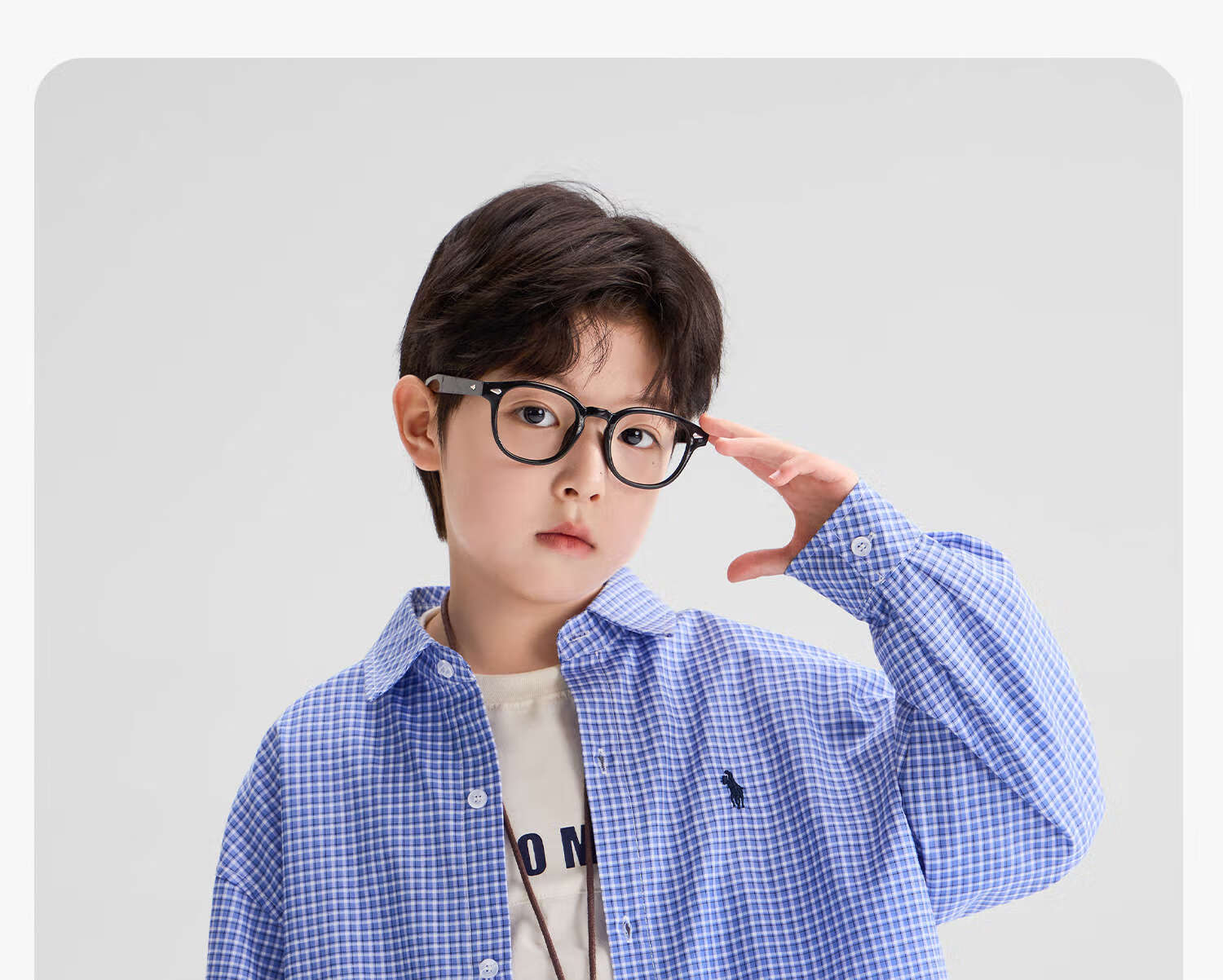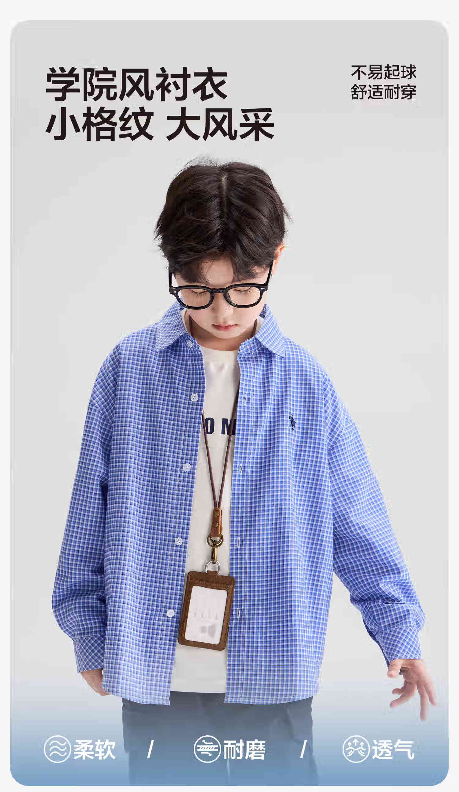Zuoxi children's clothing boys plaid shirt spring and autumn 2026 new style pony embroidered long-sleeved shirt western style children's inner wear blue 130 cm