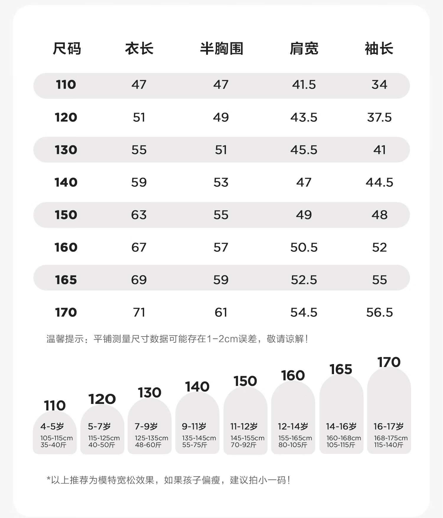 China (cm) 160-165/84-86 165-170 / 88-90 167-172 / 92-96 168-173 / 98-102 170-176 / 106-110