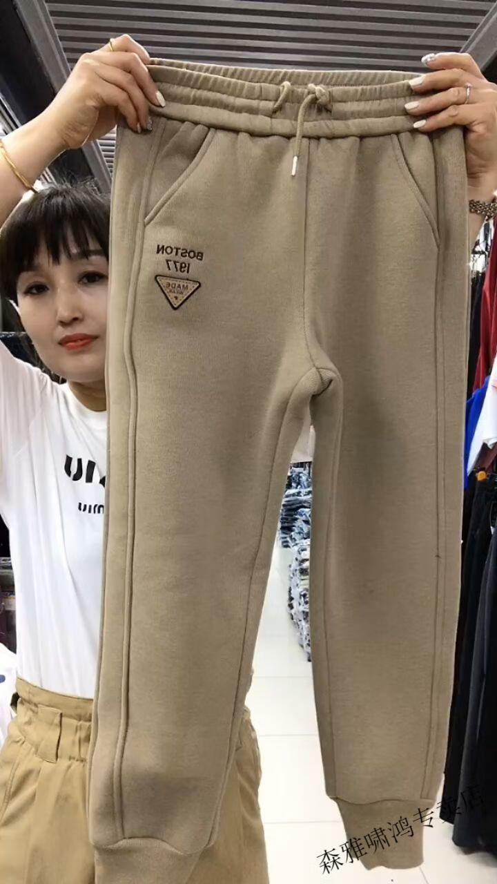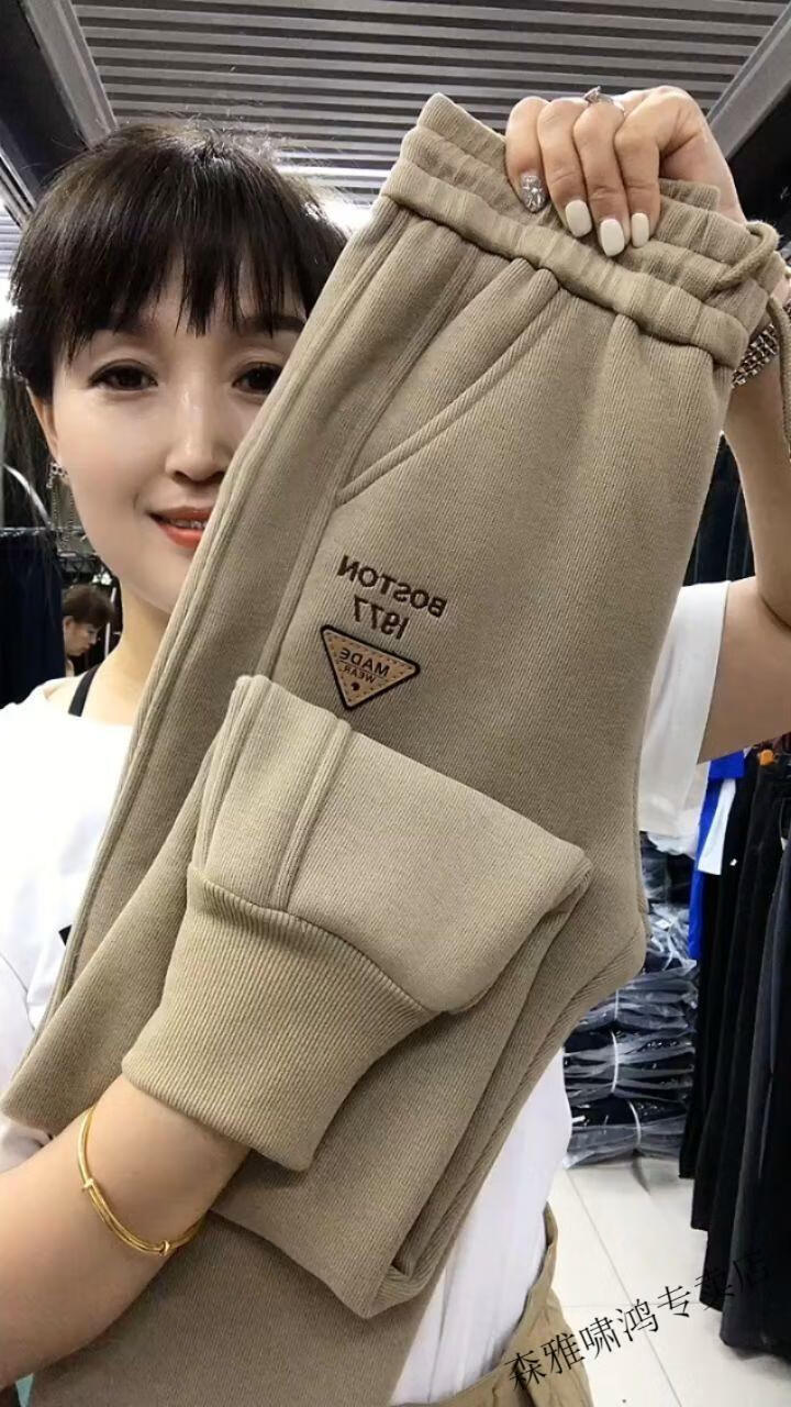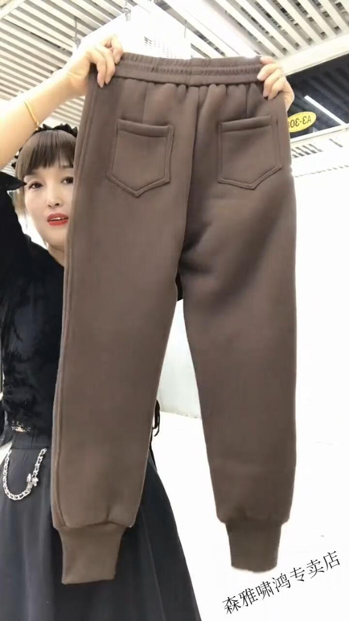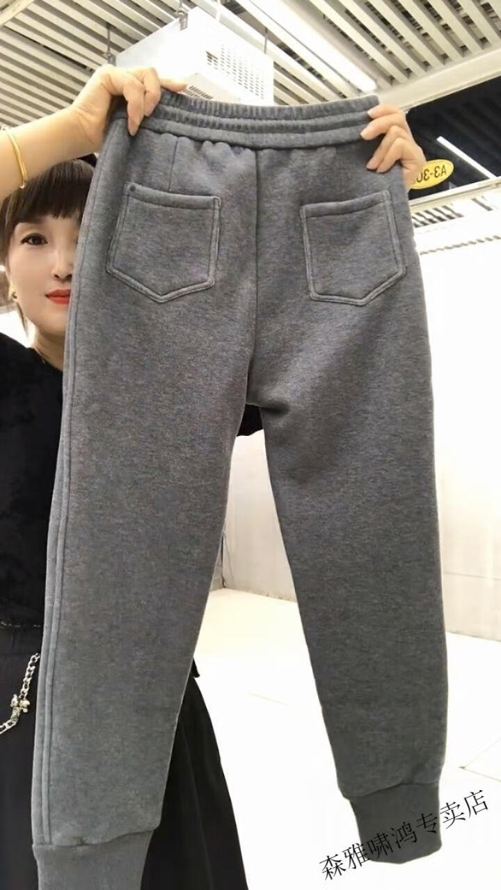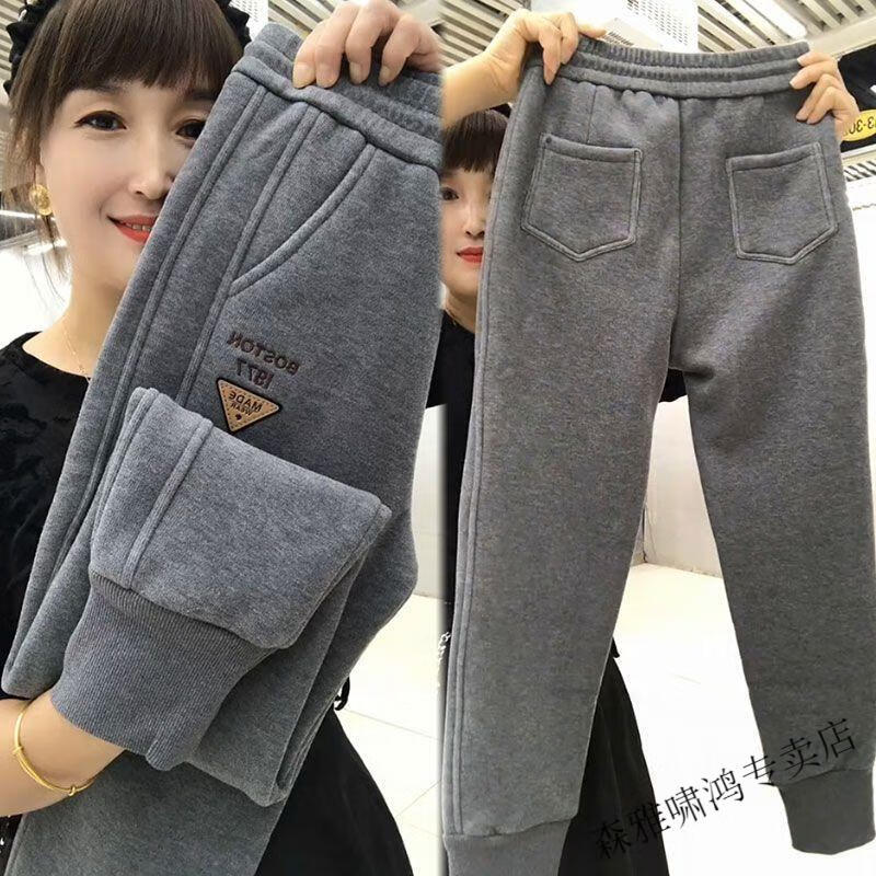 Hengyuanxiang lamb velvet sweatpants new winter style plus velvet and thickened leg casual pants for women with letter embroidery high waist versatile harem pants black 2XL (127-137Jin Jin equals 0.5 kg)