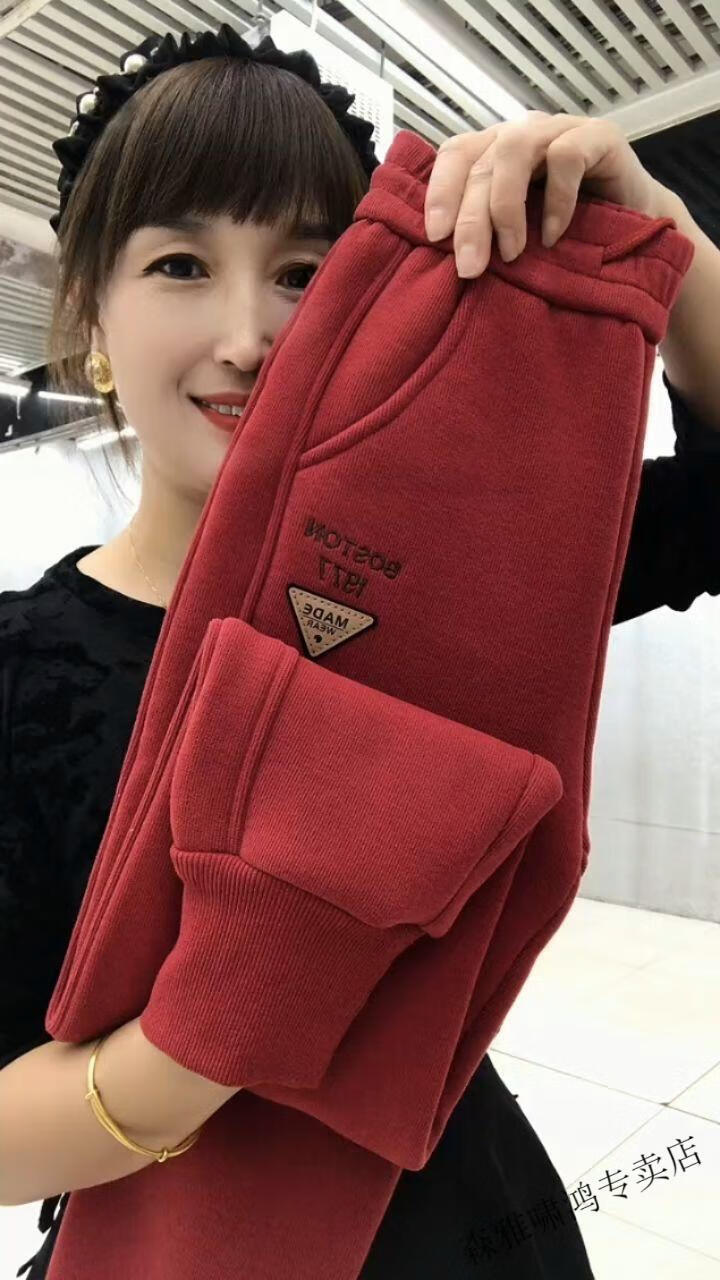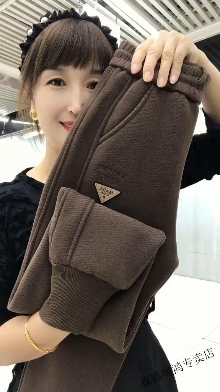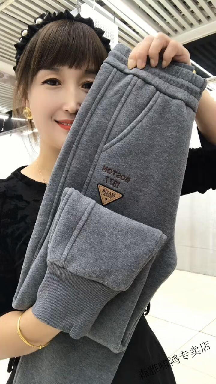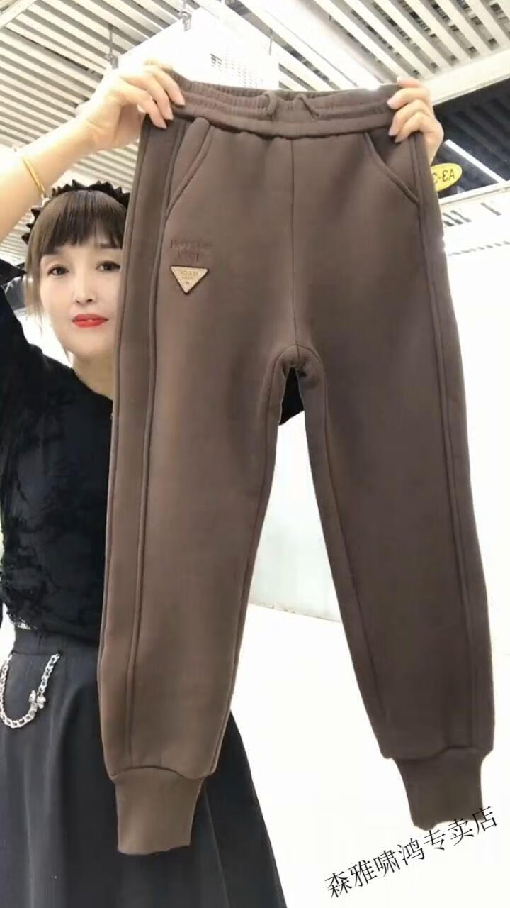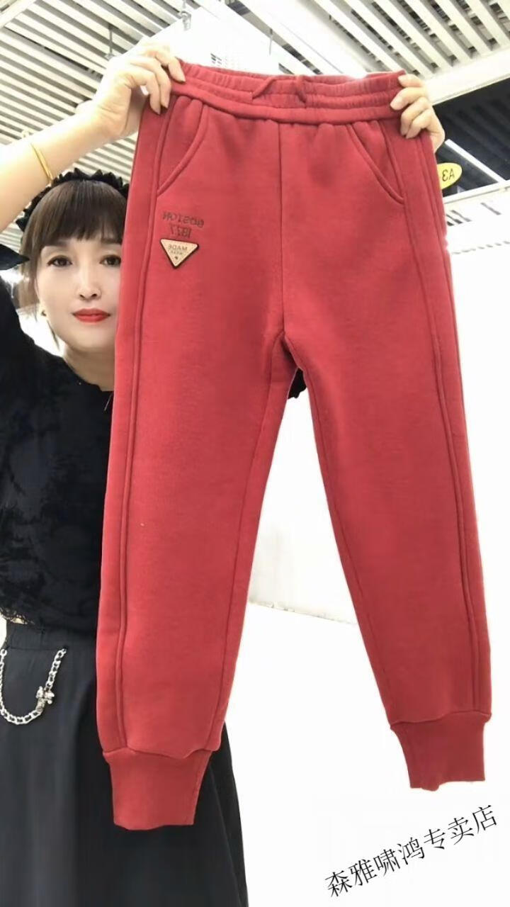 Hengyuanxiang lamb velvet sweatpants new winter style plus velvet and thickened leg casual pants for women with letter embroidery high waist versatile harem pants black 2XL (127-137Jin Jin equals 0.5 kg)