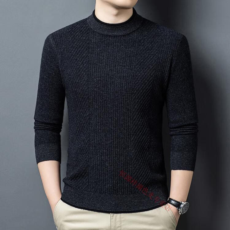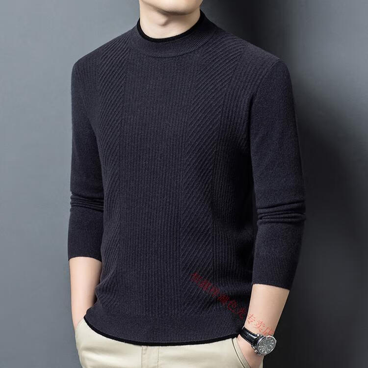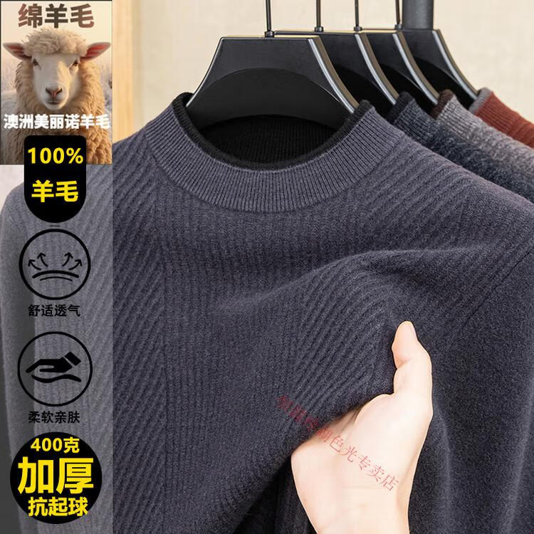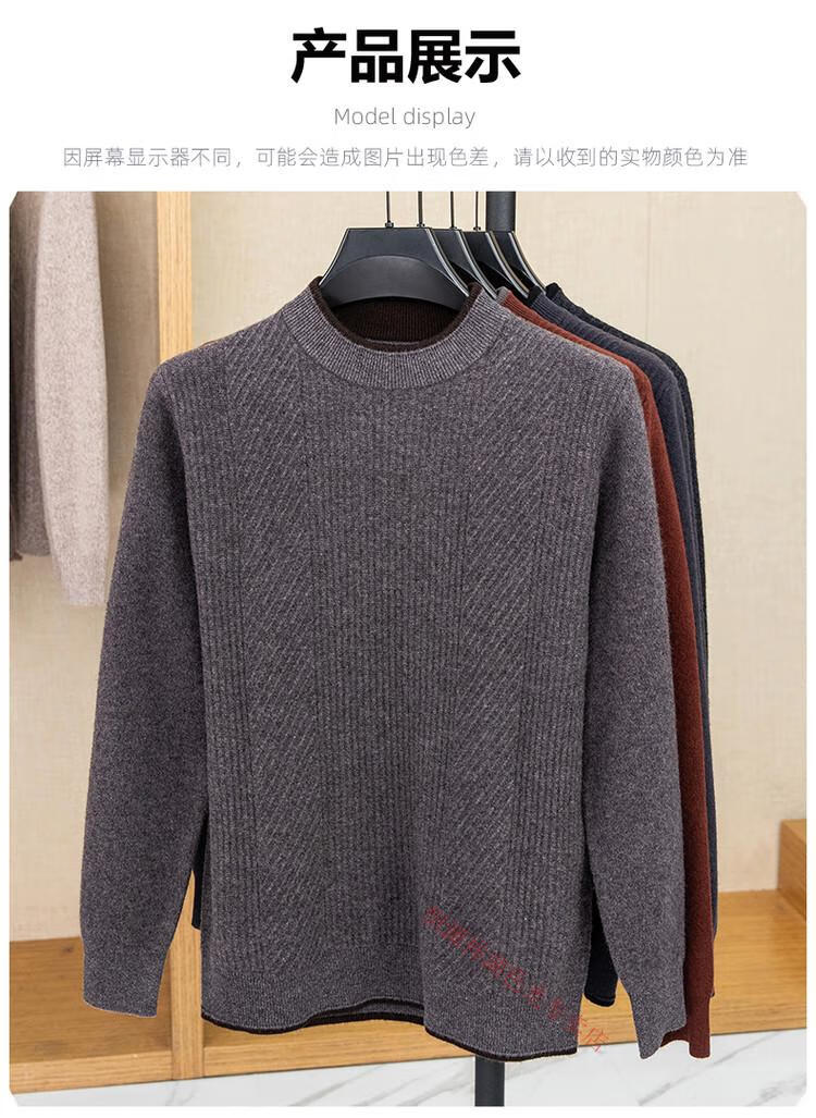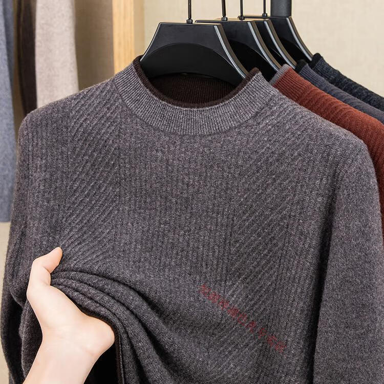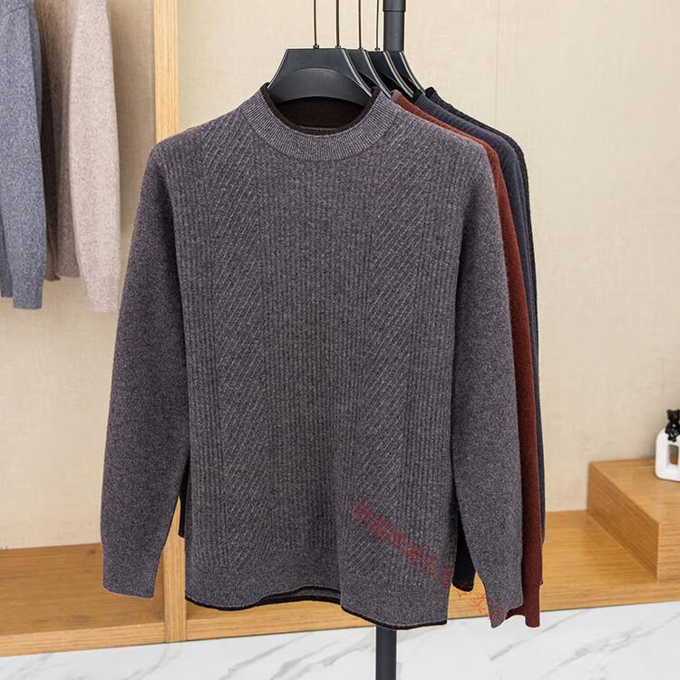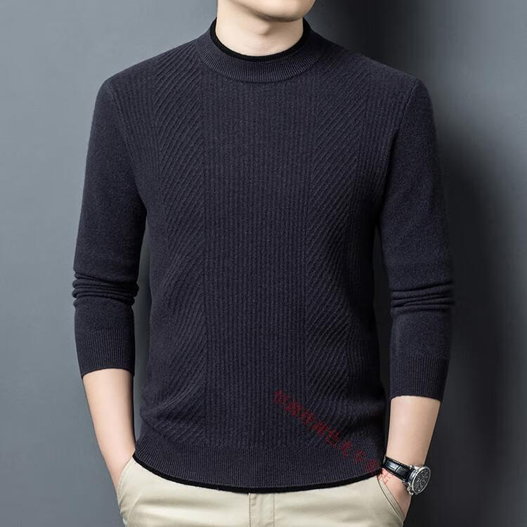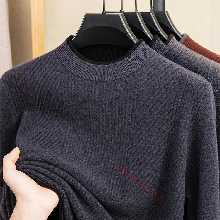 Hengyuanxiang 100% pure wool sweater men's knitted sweater 2025 winter new wool casual versatile knitted sweater for men 101563 handrest blue gray S 165