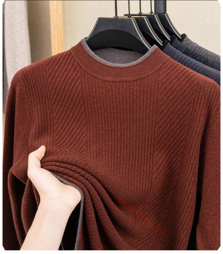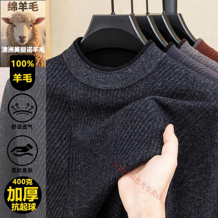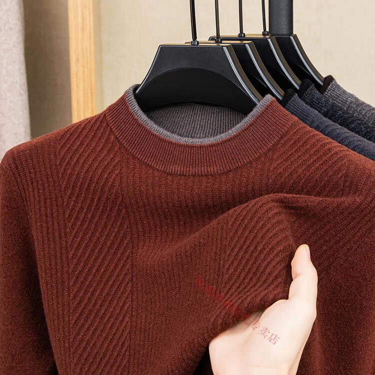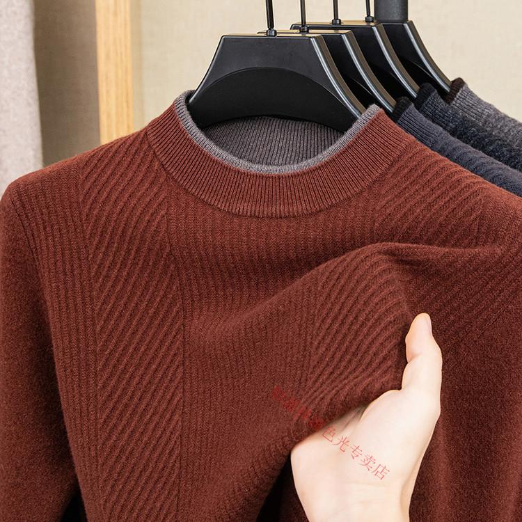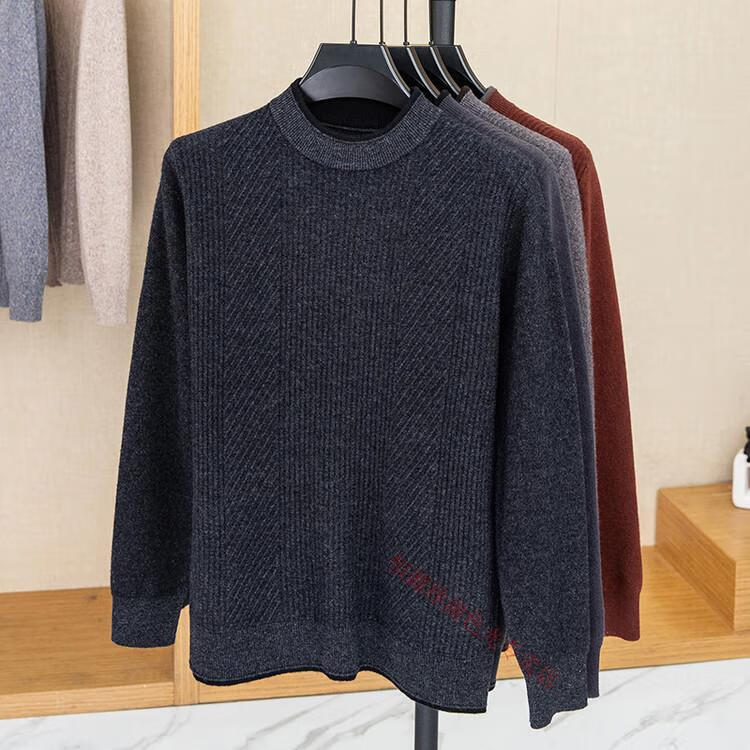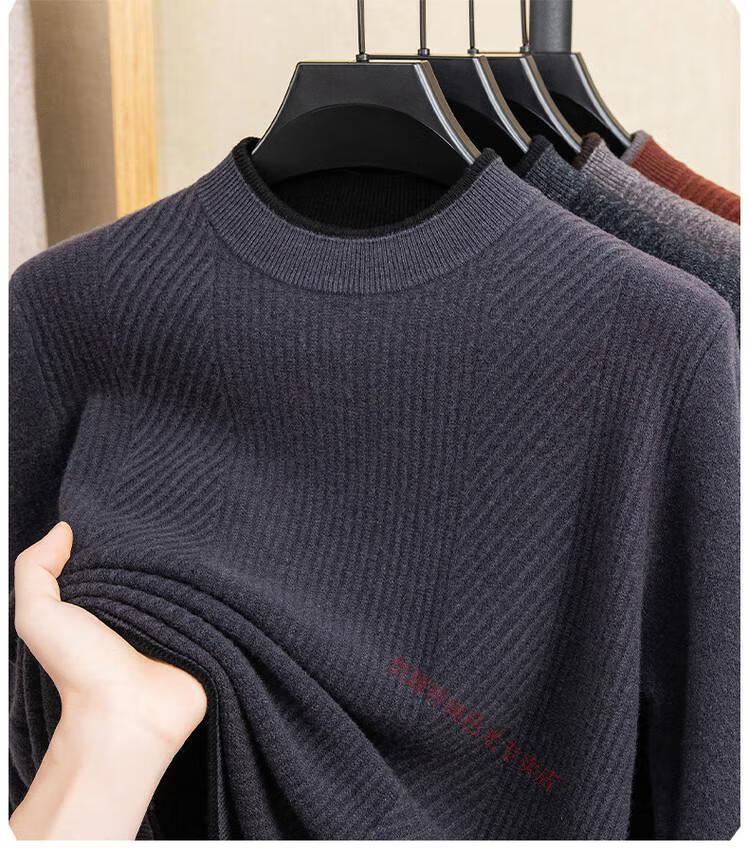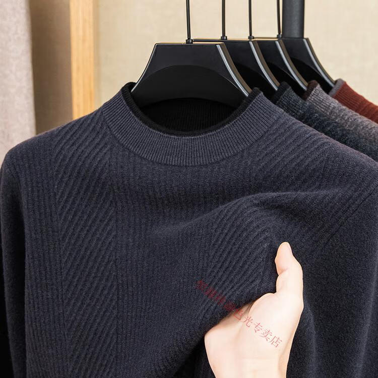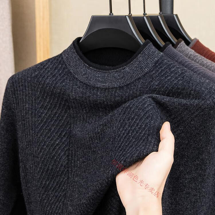 Hengyuanxiang 100% pure wool sweater men's knitted sweater 2025 winter new wool casual versatile knitted sweater for men 101563 handrest blue gray S 165