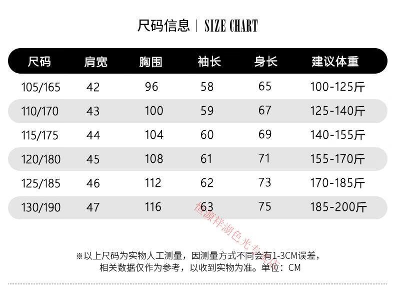 China (cm) 165 / 88-90 170 / 96-98 175 / 108-110 180 / 118-122 185 / 126-130