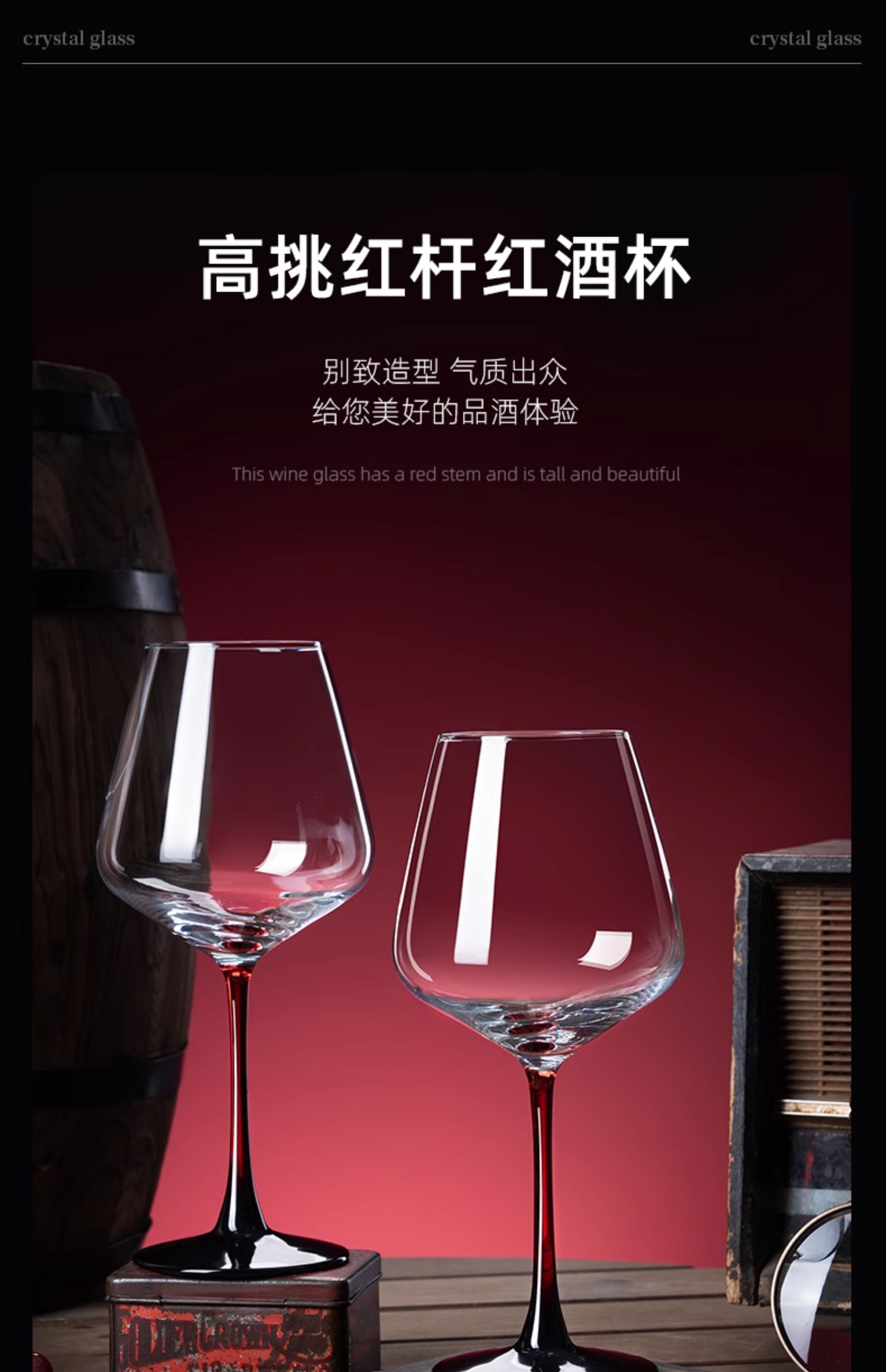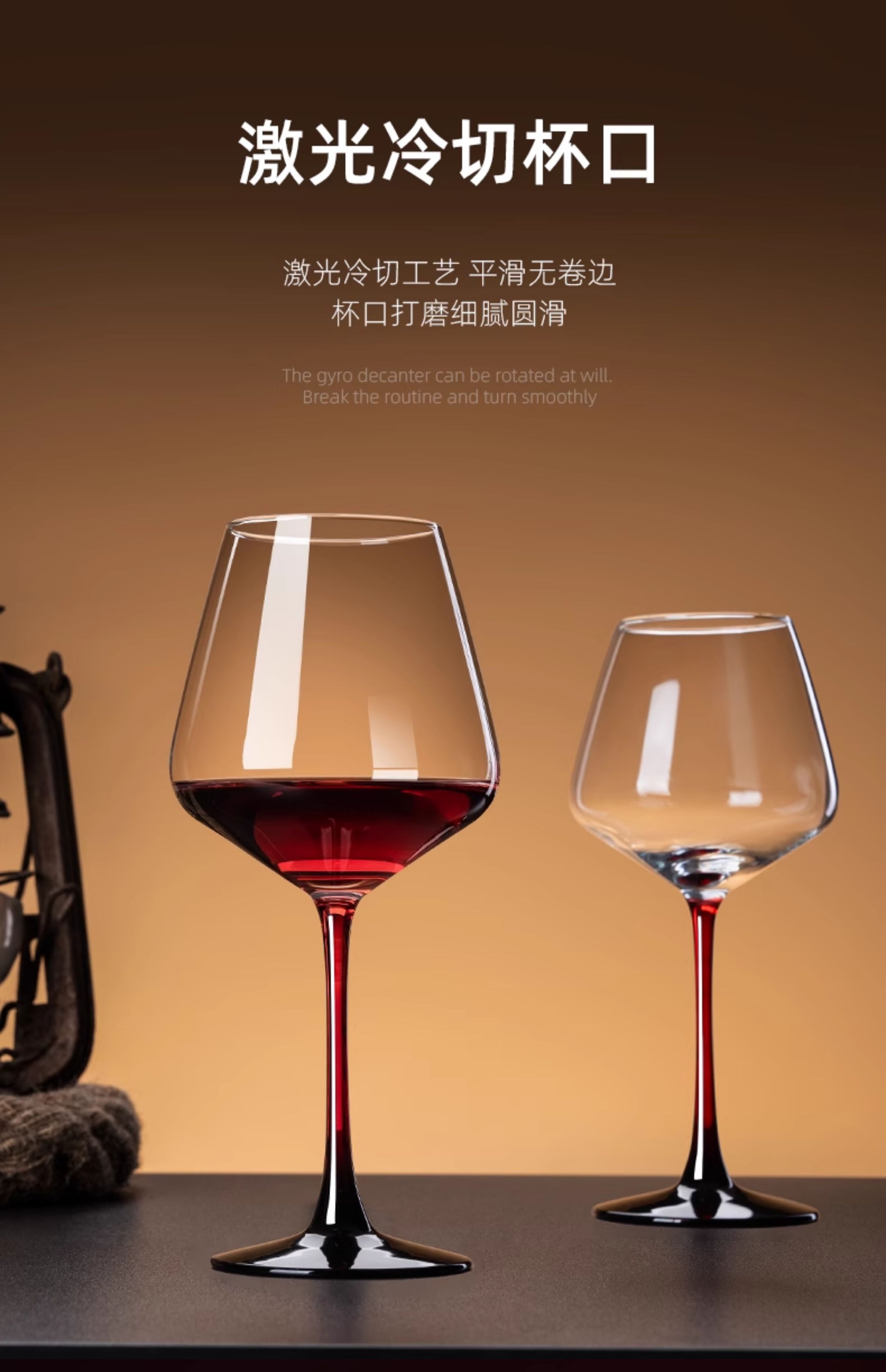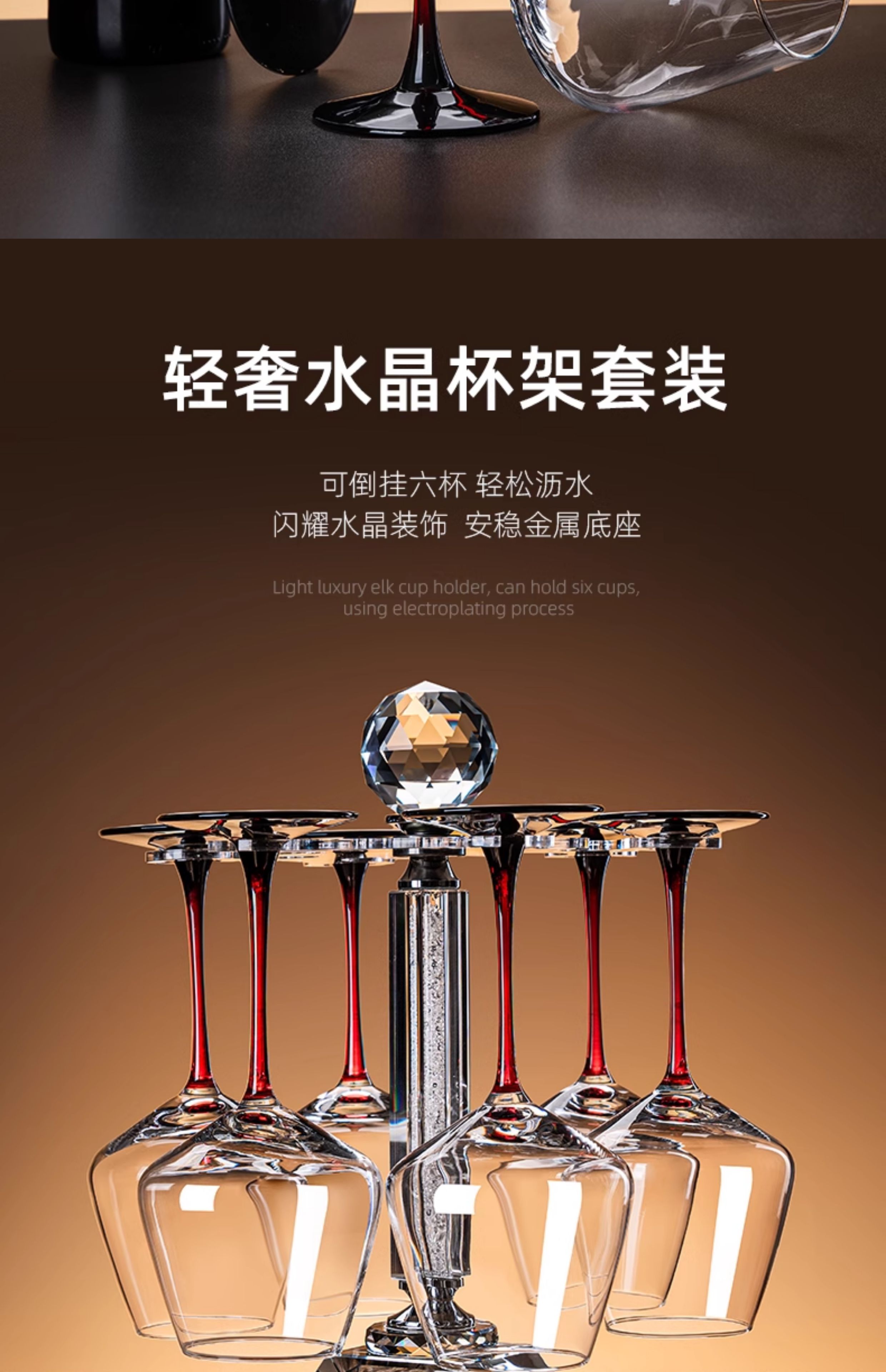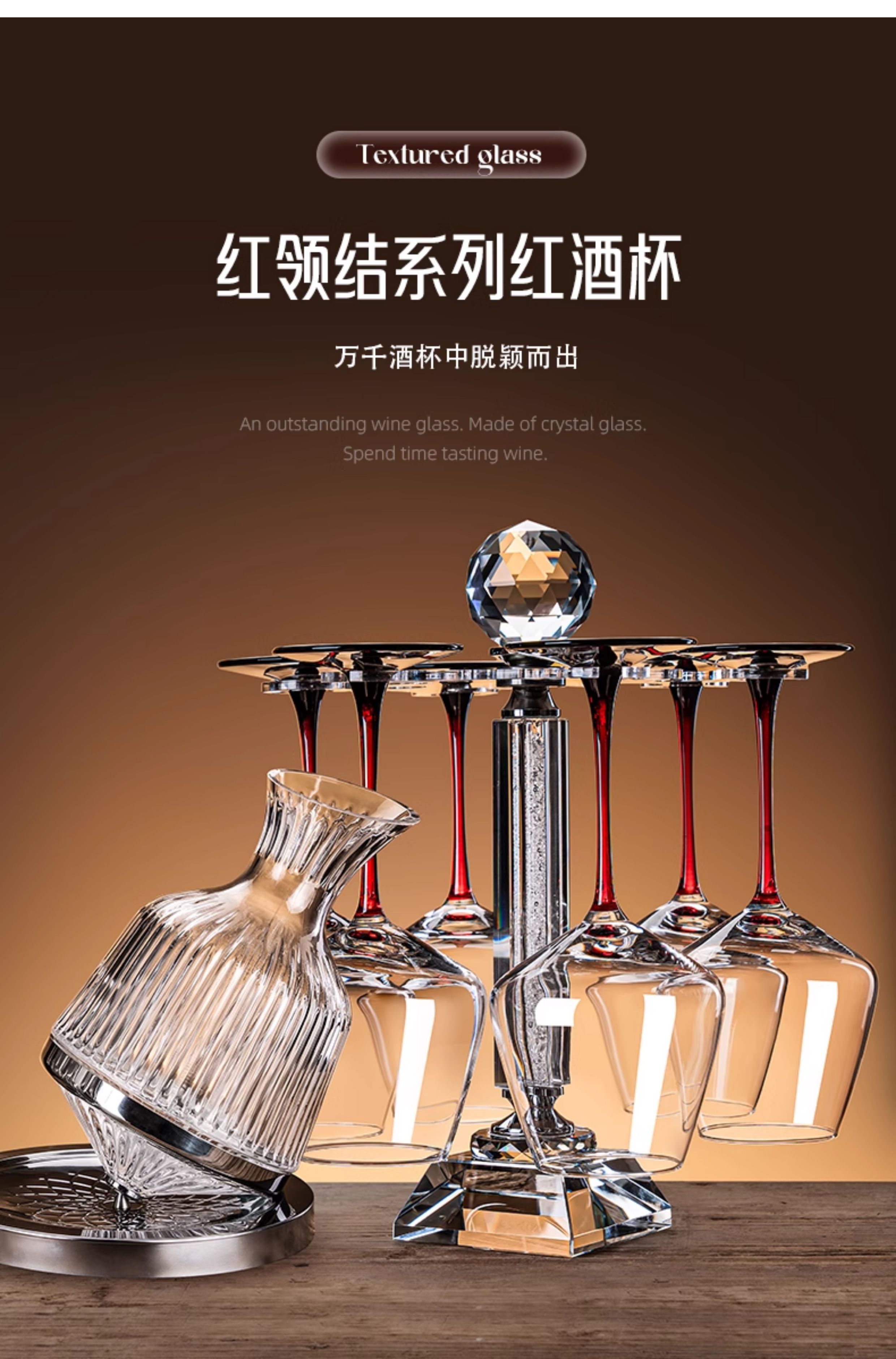 Crystal red wine glass decanter home set light luxury high-end European-style burgundy tall wine glass high-value red stem 450ml red wine glass 6 pieces + white diamond rotating stand +