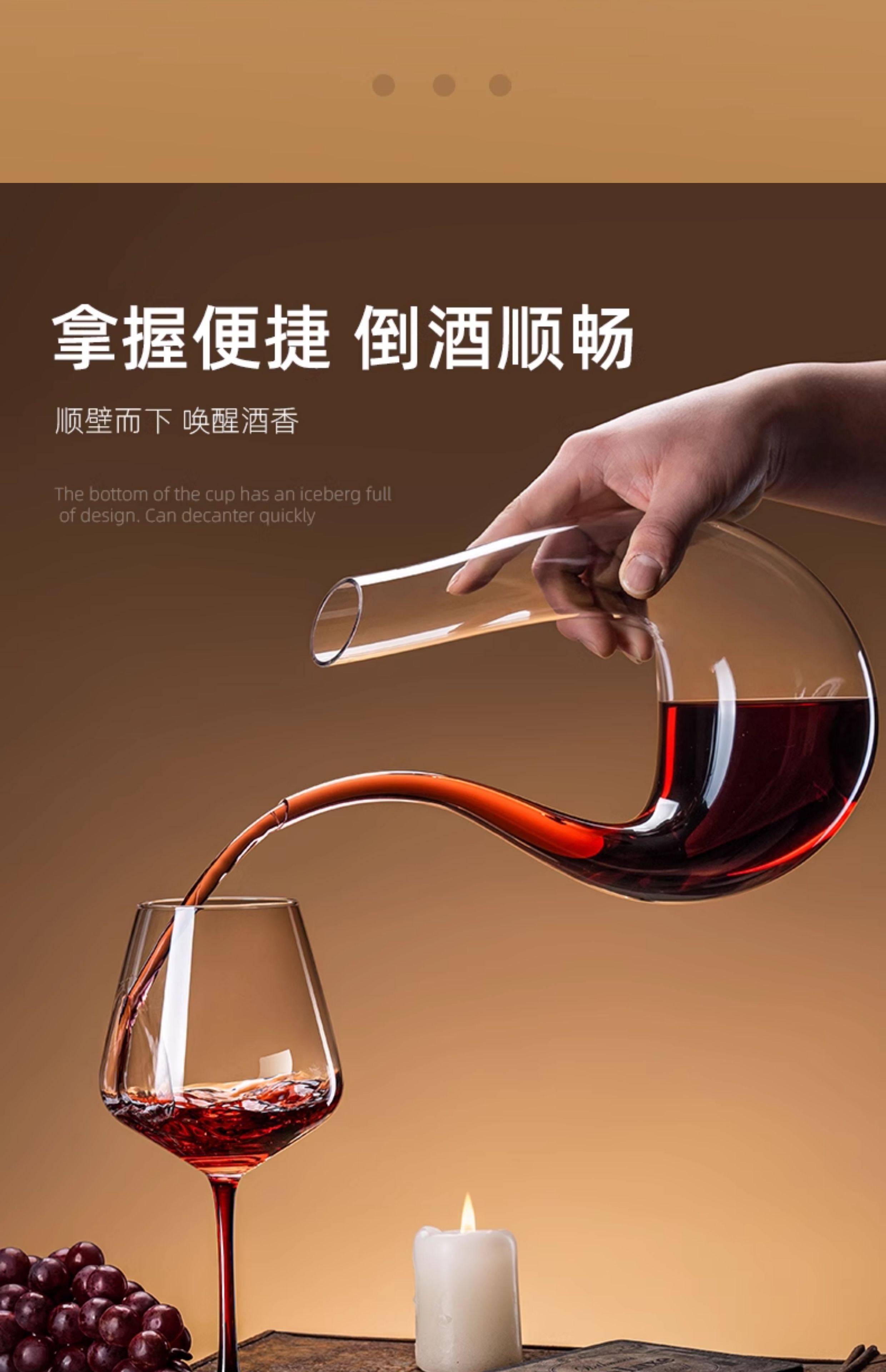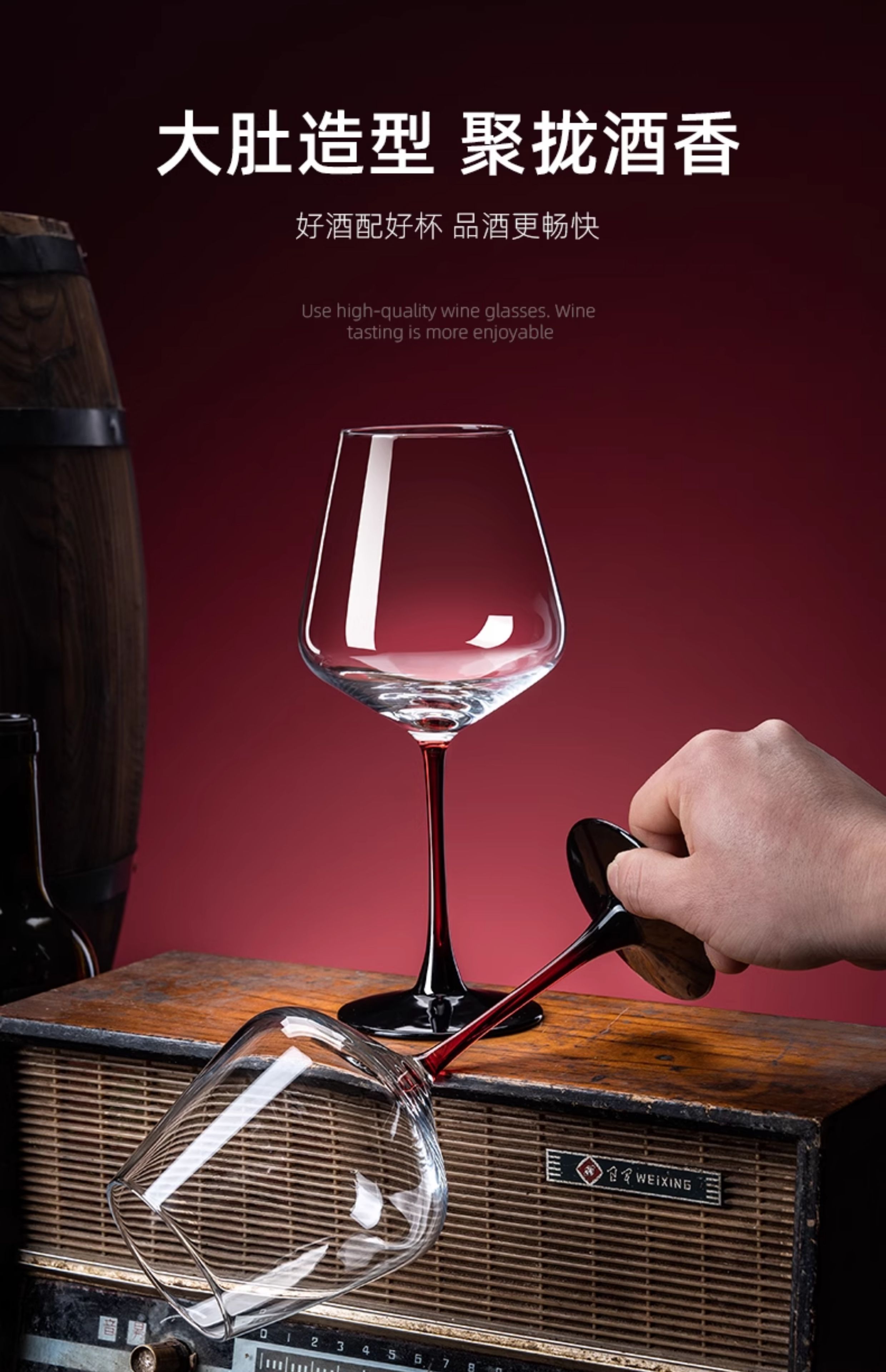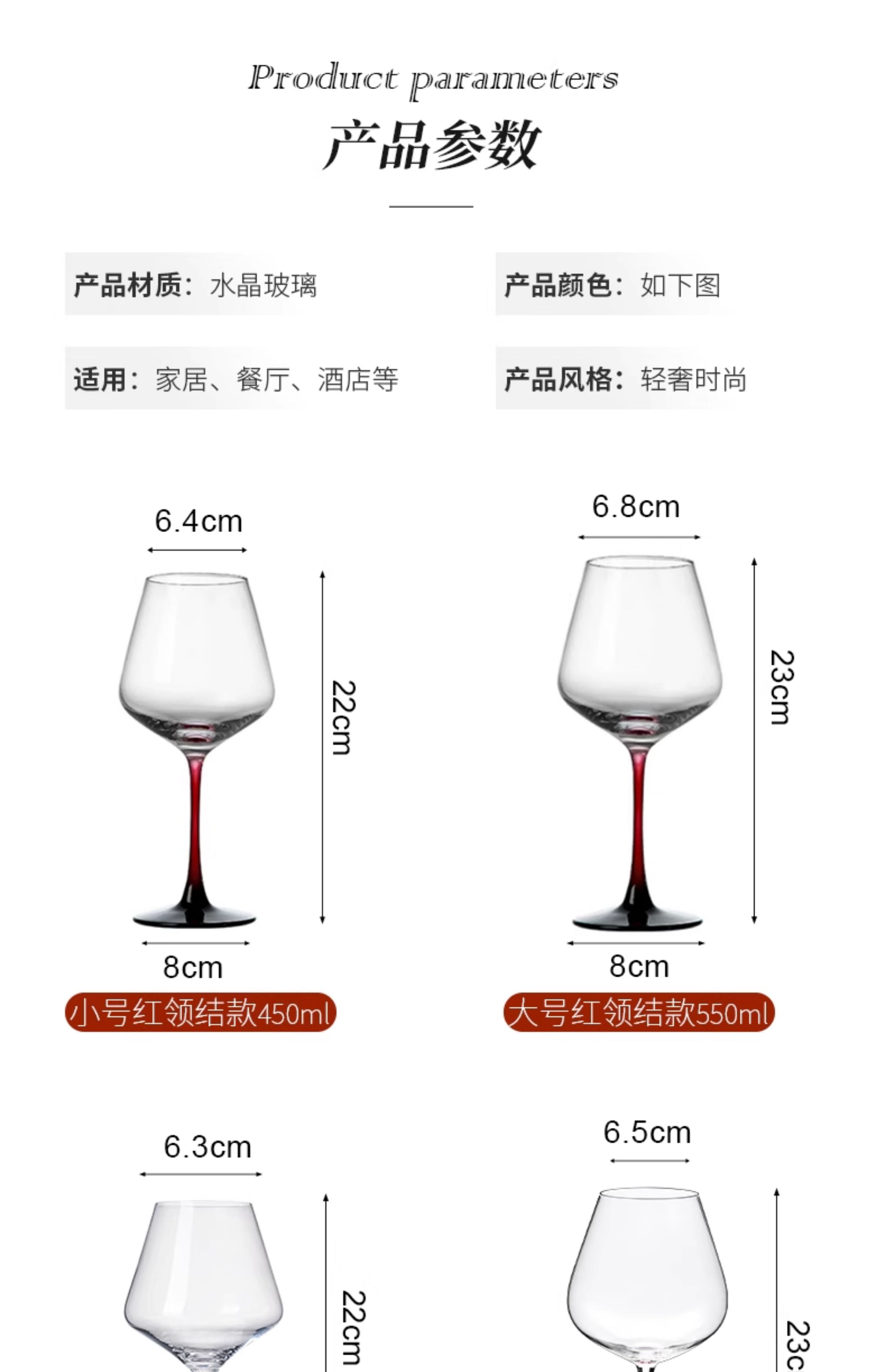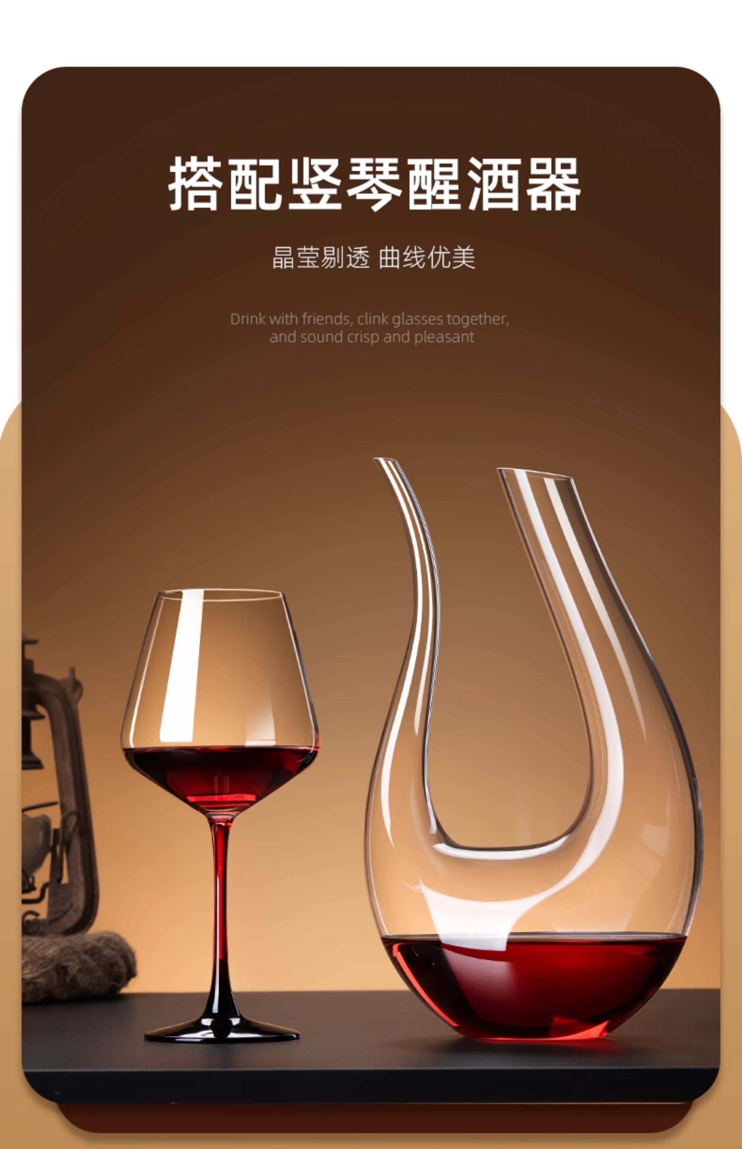 Crystal red wine glass decanter home set light luxury high-end European-style burgundy tall wine glass high-value red stem 450ml red wine glass 6 pieces + white diamond rotating stand +